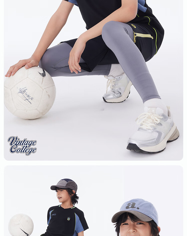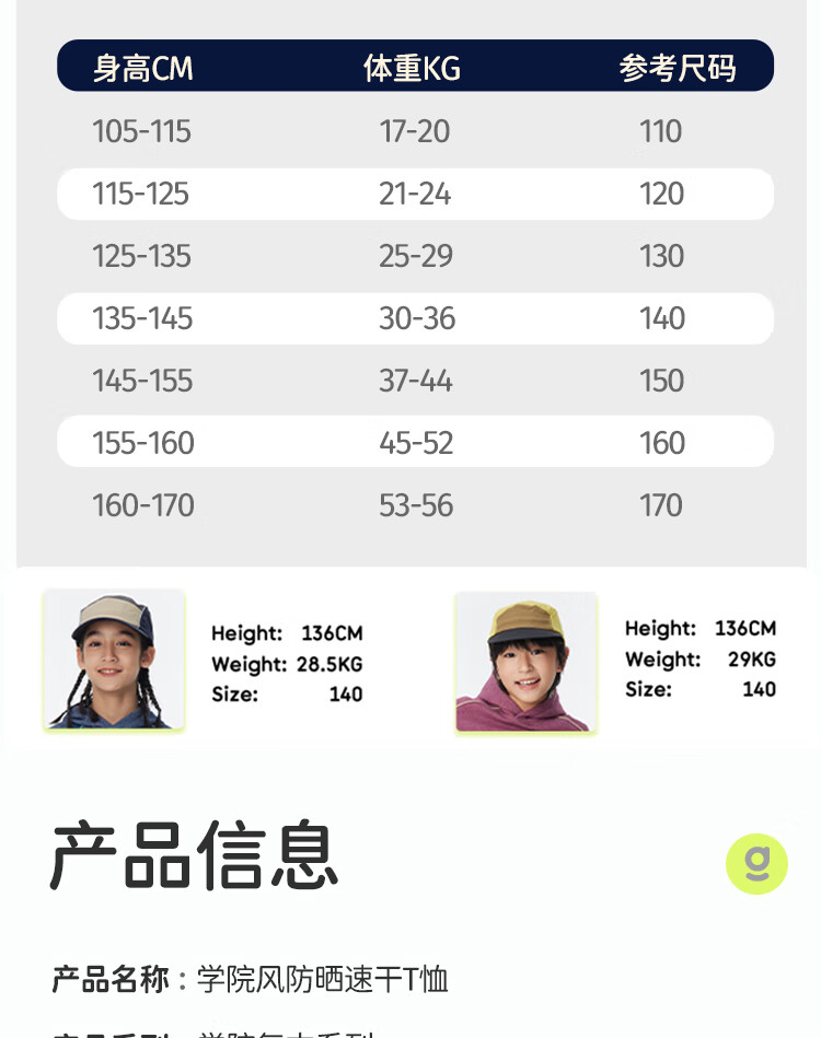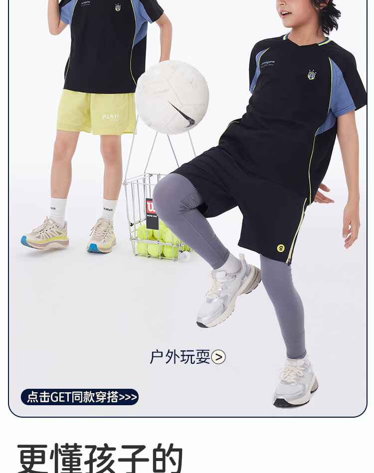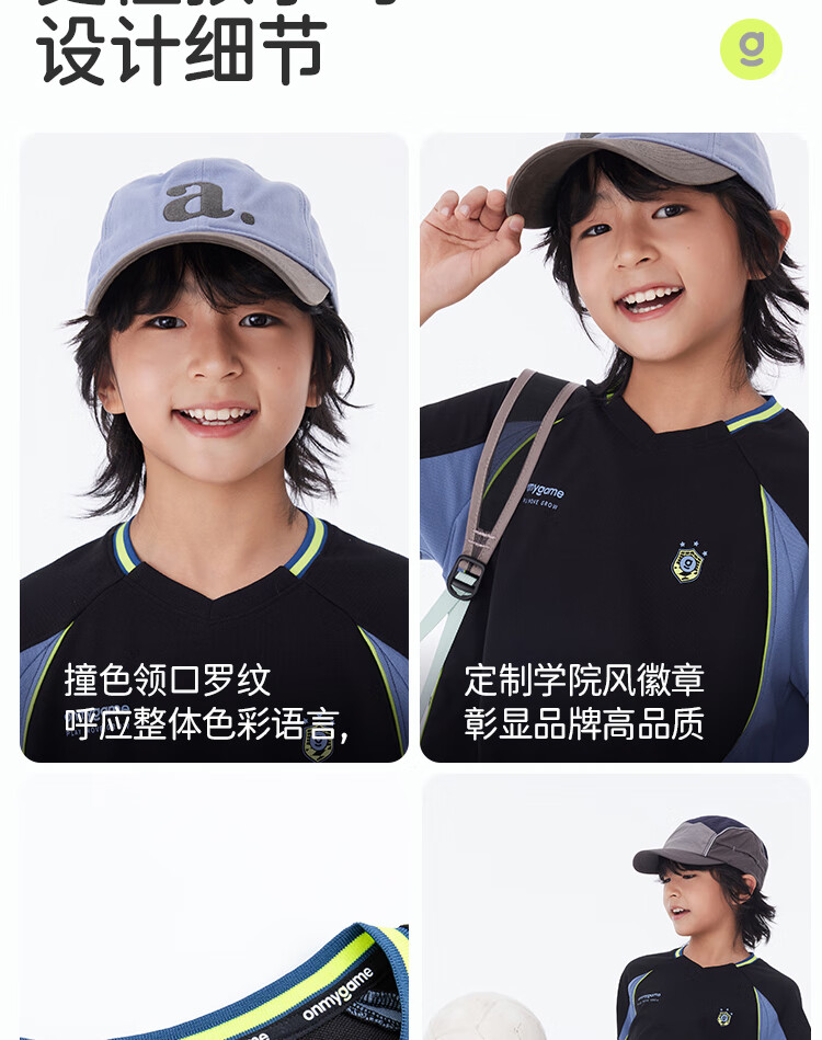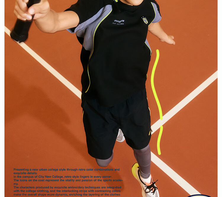 Onmygame college style children's quick-drying sunscreen T-shirt cool summer new style dark night black top + claw yellow pants 150 cm