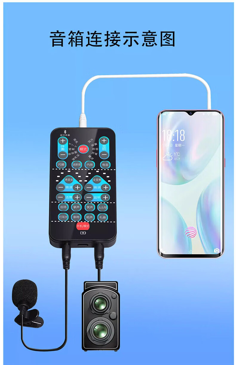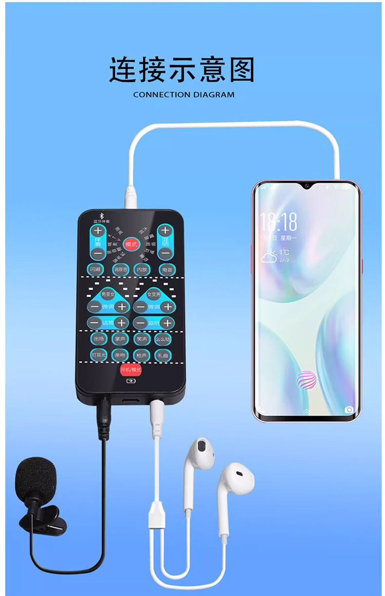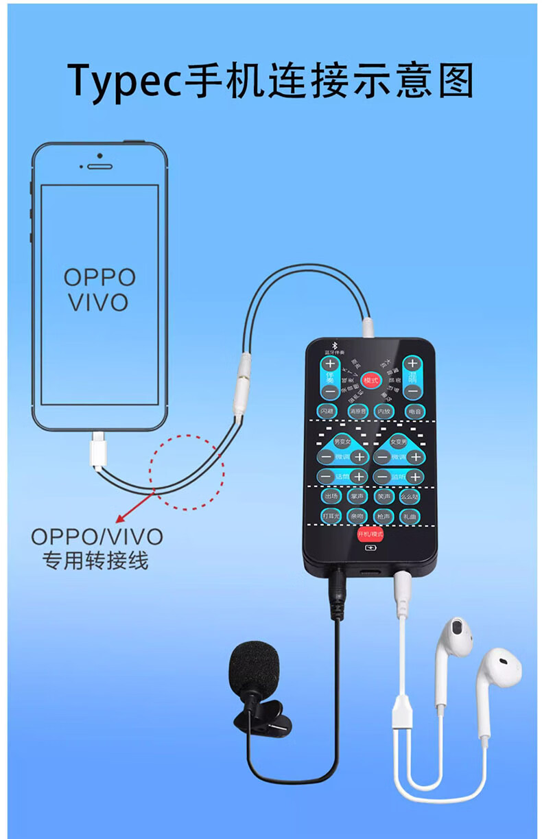 Beijing pro-selected voice changer for mobile phones, male to female voice changer 1 device for calls, games, voice chat, computer live streaming, portable sound card, real-time 3.5mm to type-c microphone + earphones, portable, long battery life