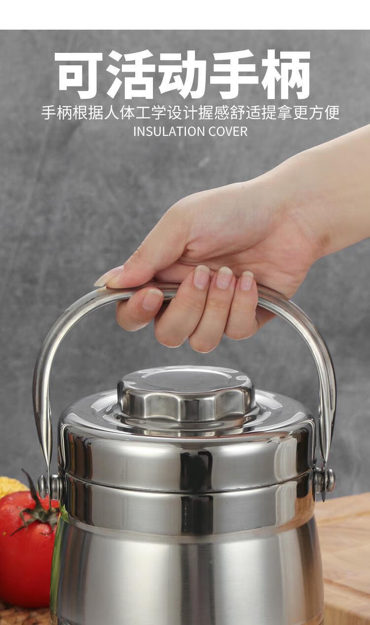 Efficient thermal insulation, thickened stainless steel double-layer thermal insulation pot, lunch box for office workers, students, large capacity rice bucket, stainless steel small bowl