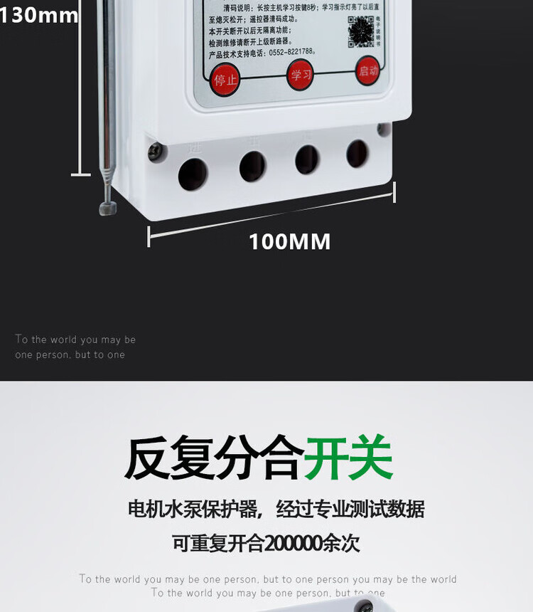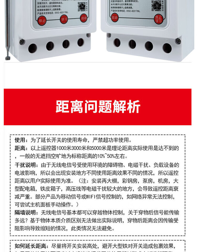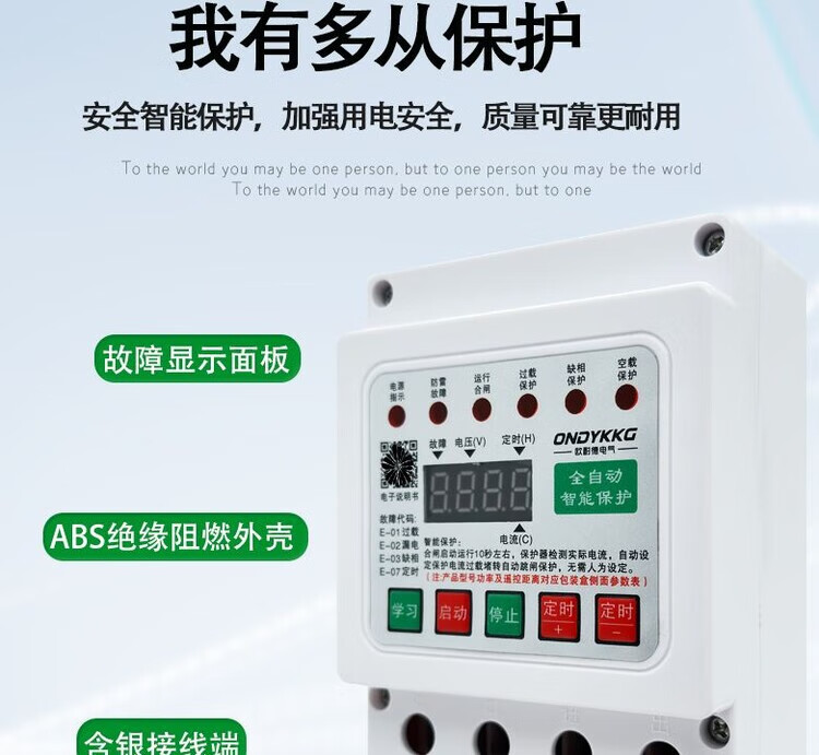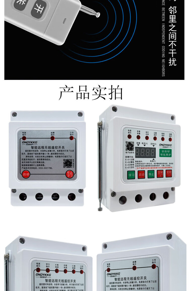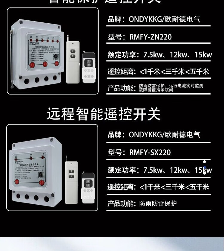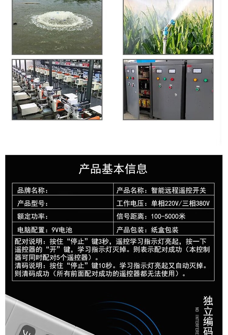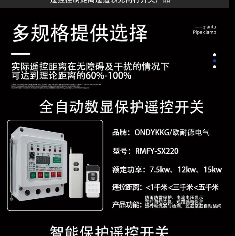 Water pump controller intelligent fully automatic well water remote control switch wireless high power remote control switch 220v household motor power supply 3000 meters digital display protection 360 chip 220V single phase 7.5KW dual remote control