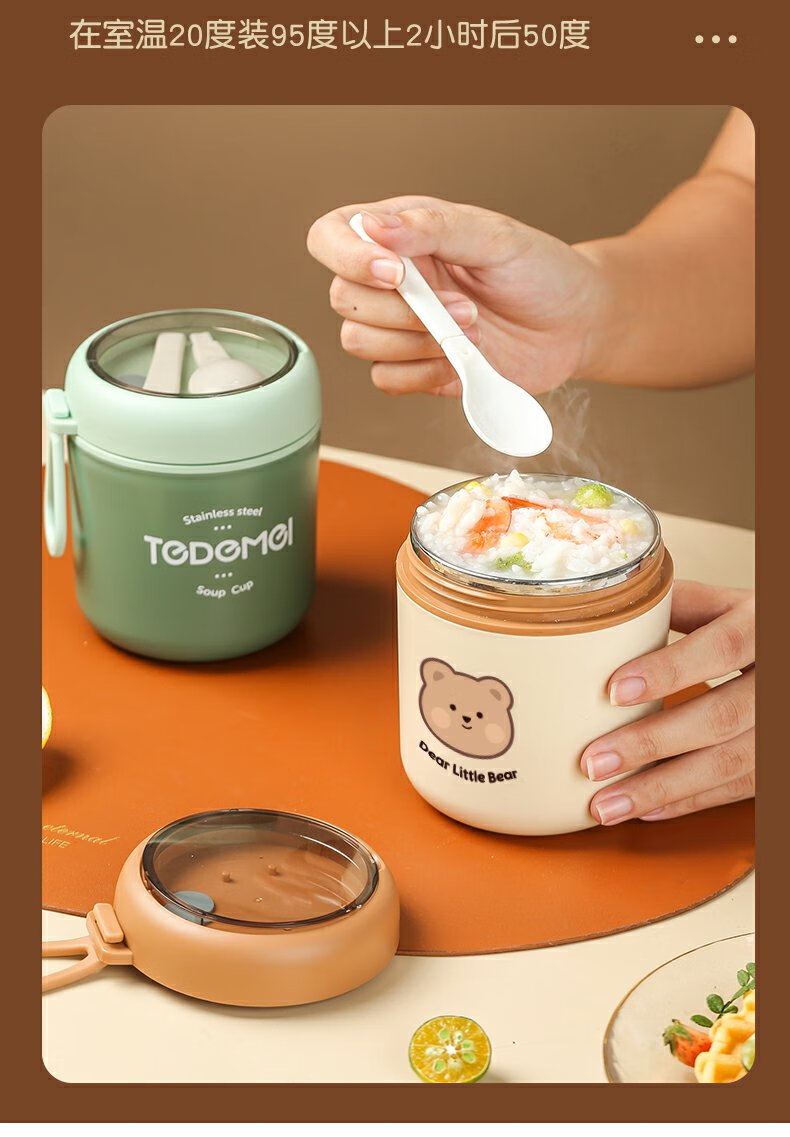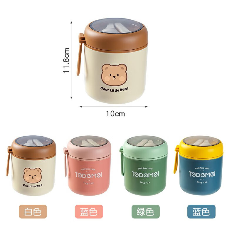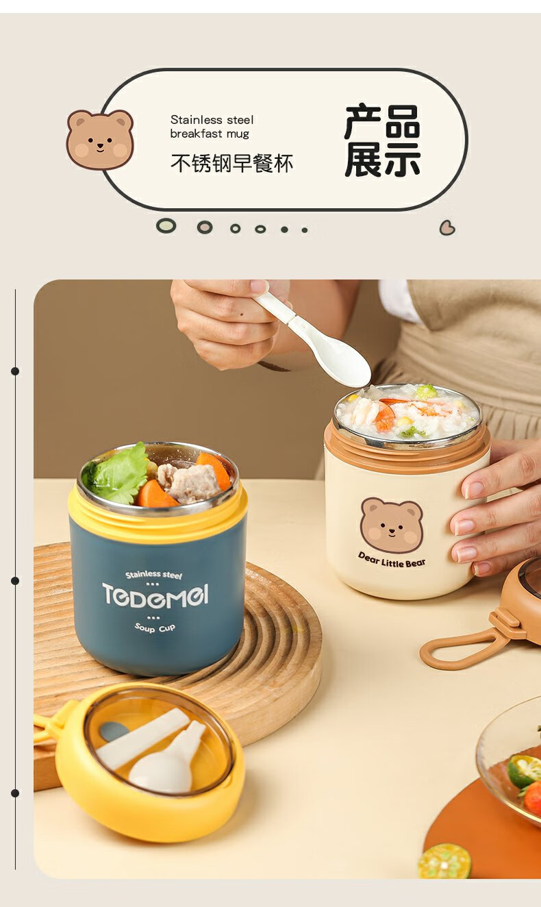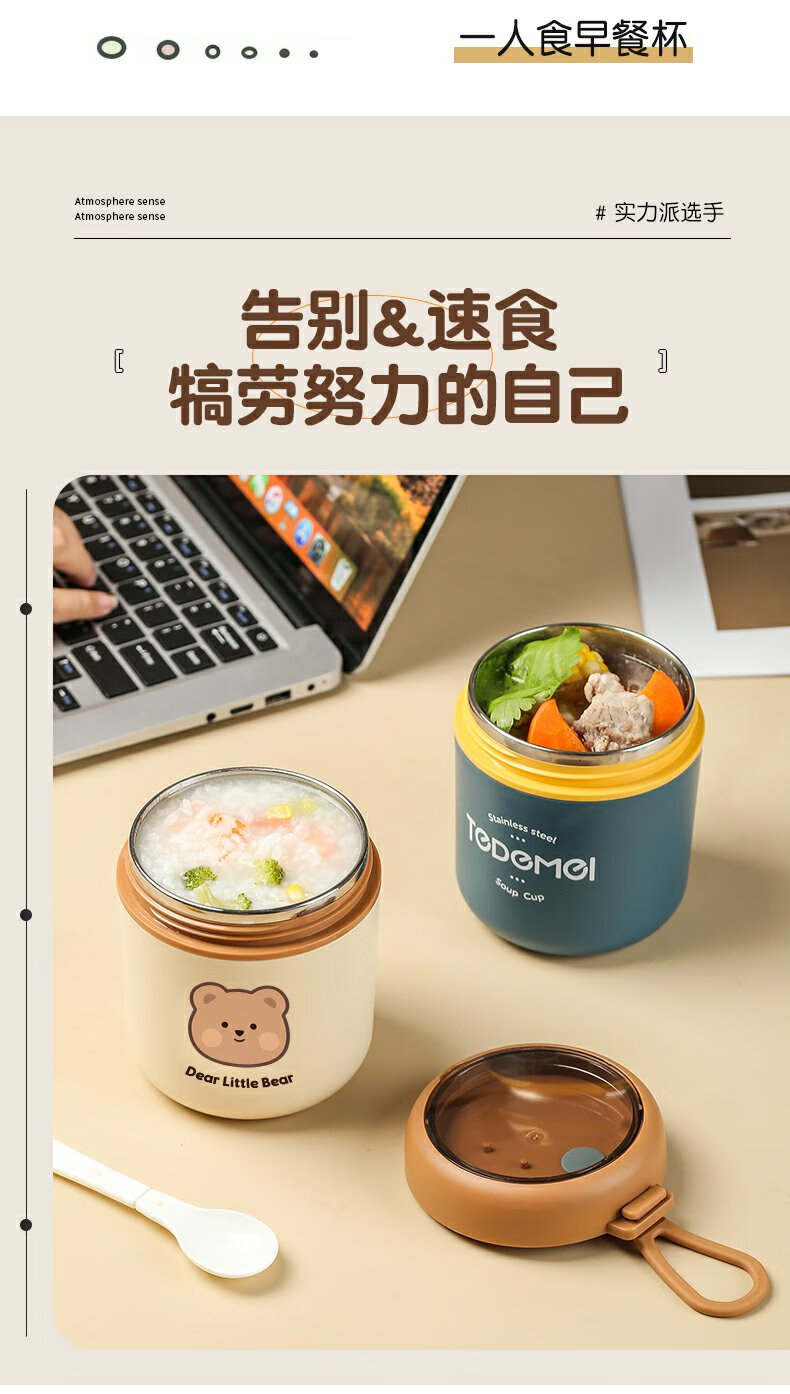 Count Qiabei Japan imported high-quality insulated lunch box for office workers stewed beaker Tremella bird's nest smoldering insulated soup pot rice bucket portable stainless steel material dark blue + spoon