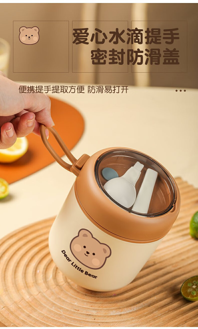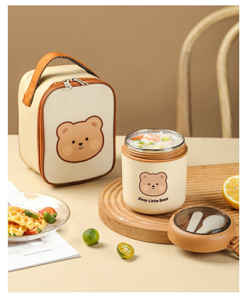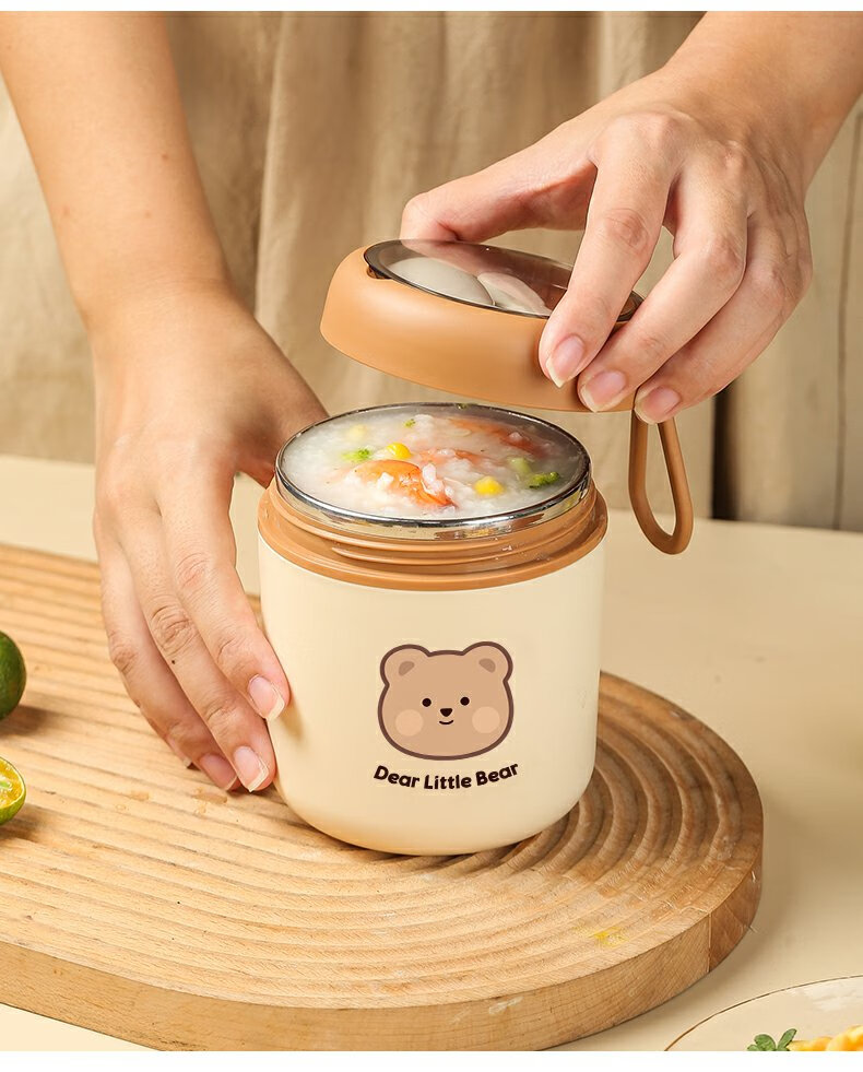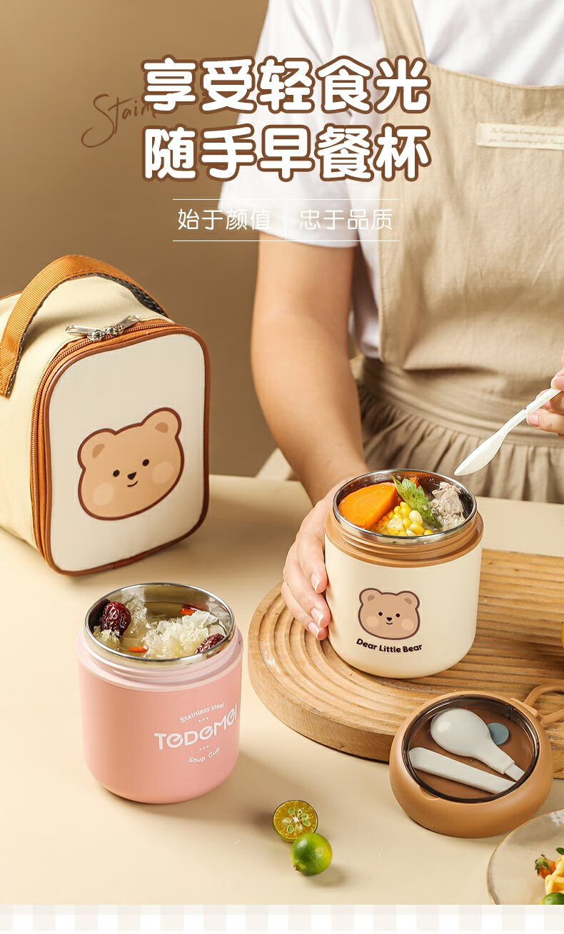 Count Qiabei Japan imported high-quality insulated lunch box for office workers stewed beaker Tremella bird's nest smoldering insulated soup pot rice bucket portable stainless steel material dark blue + spoon