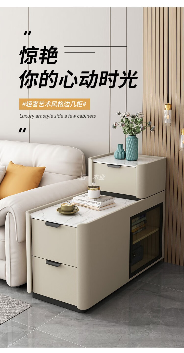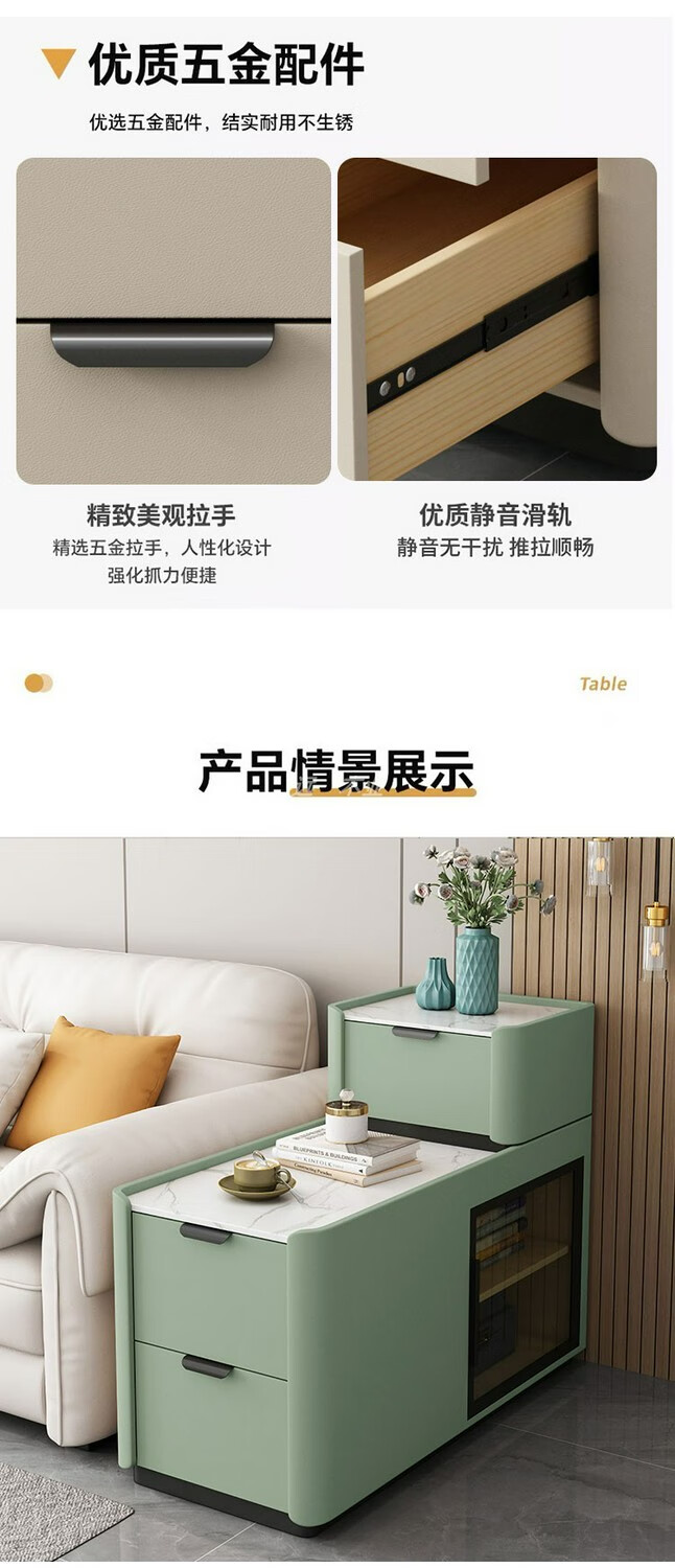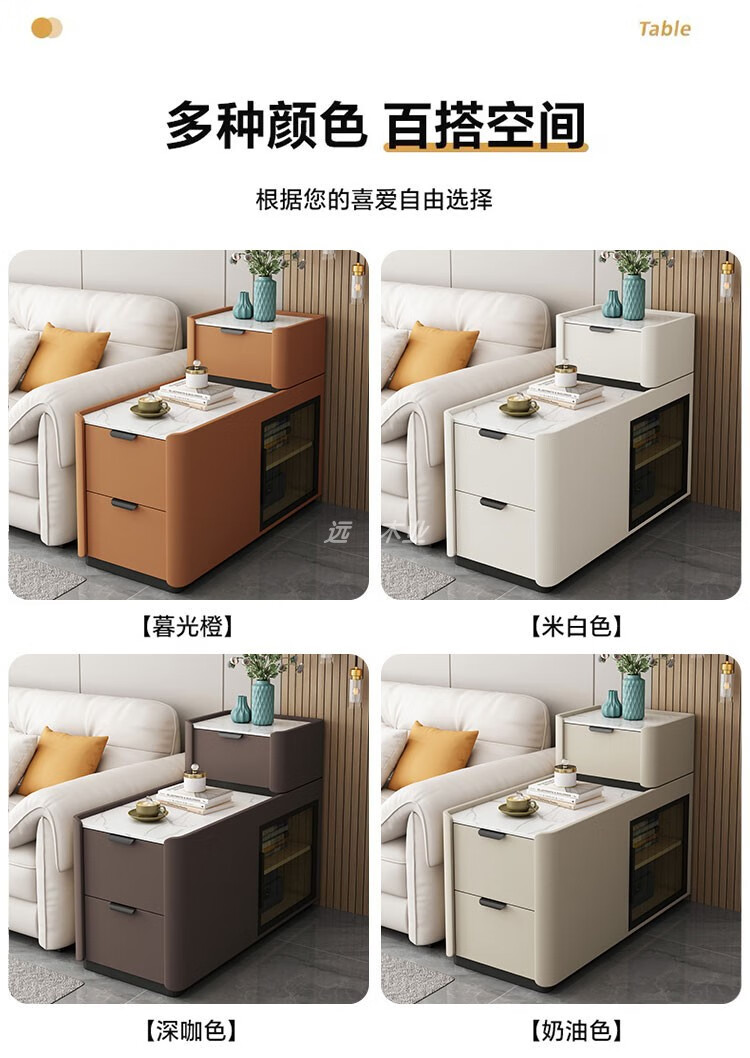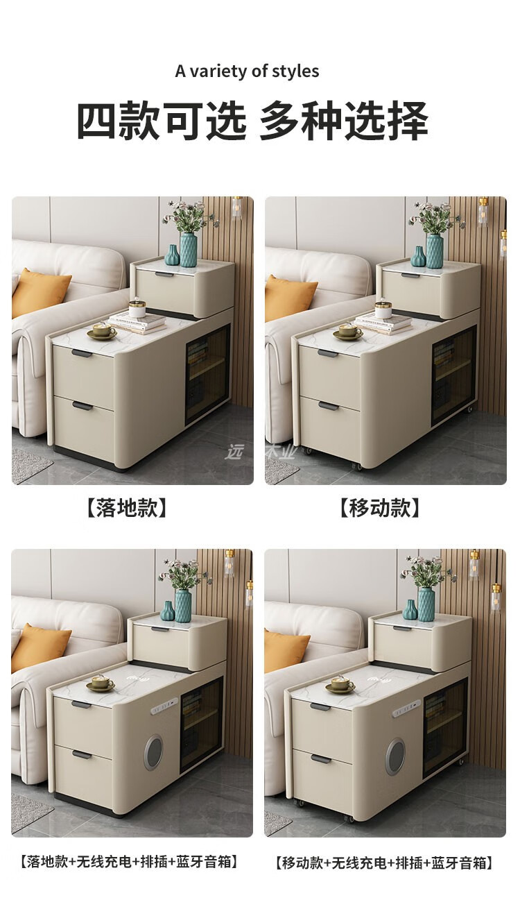 Quanyou Home, the same style as You Home, new wheeled floor-standing sofa side cabinet, light luxury, wireless charging, small and simple, wheeled model, wireless charging, power strip, audio, depth 9, fully equipped