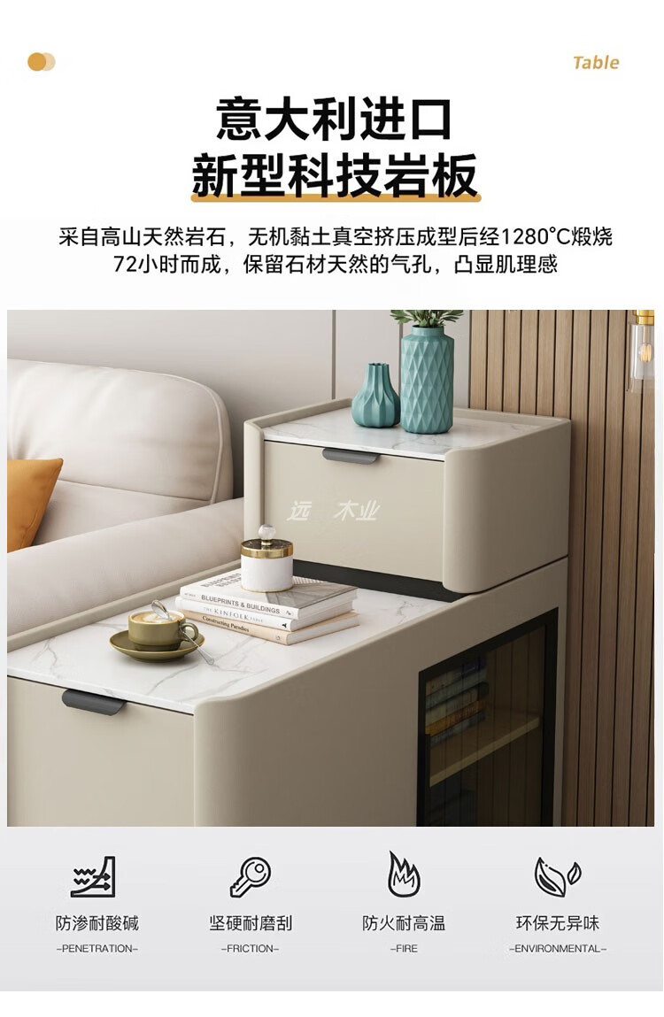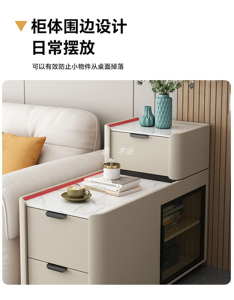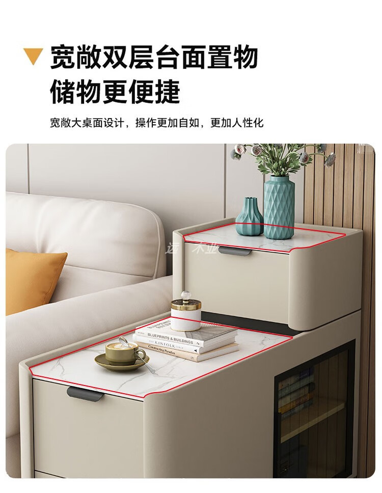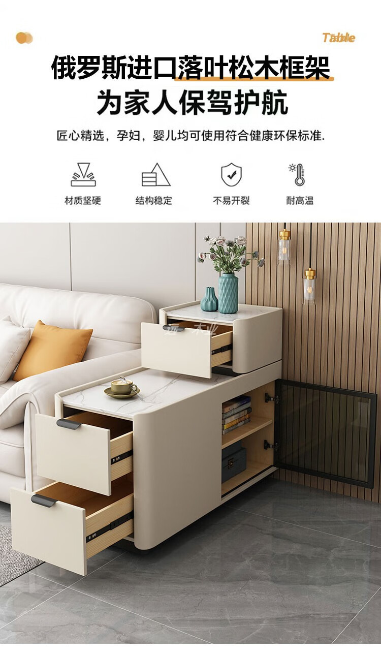Quanyou Home, the same style as You Home, new wheeled floor-standing sofa side cabinet, light luxury, wireless charging, small and simple, wheeled model, wireless charging, power strip, audio, depth 9, fully equipped