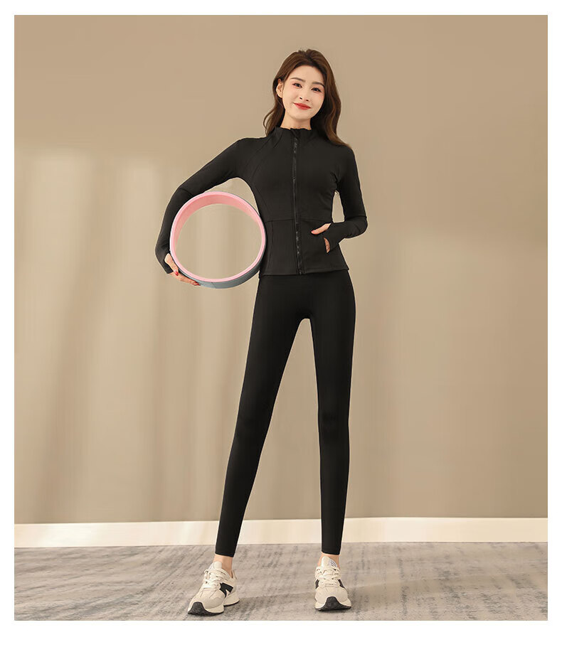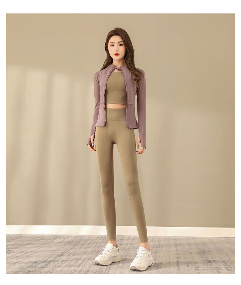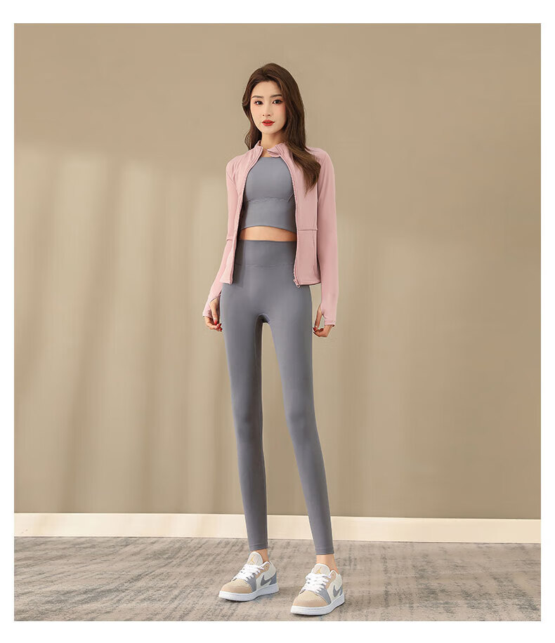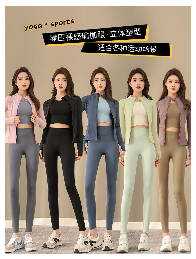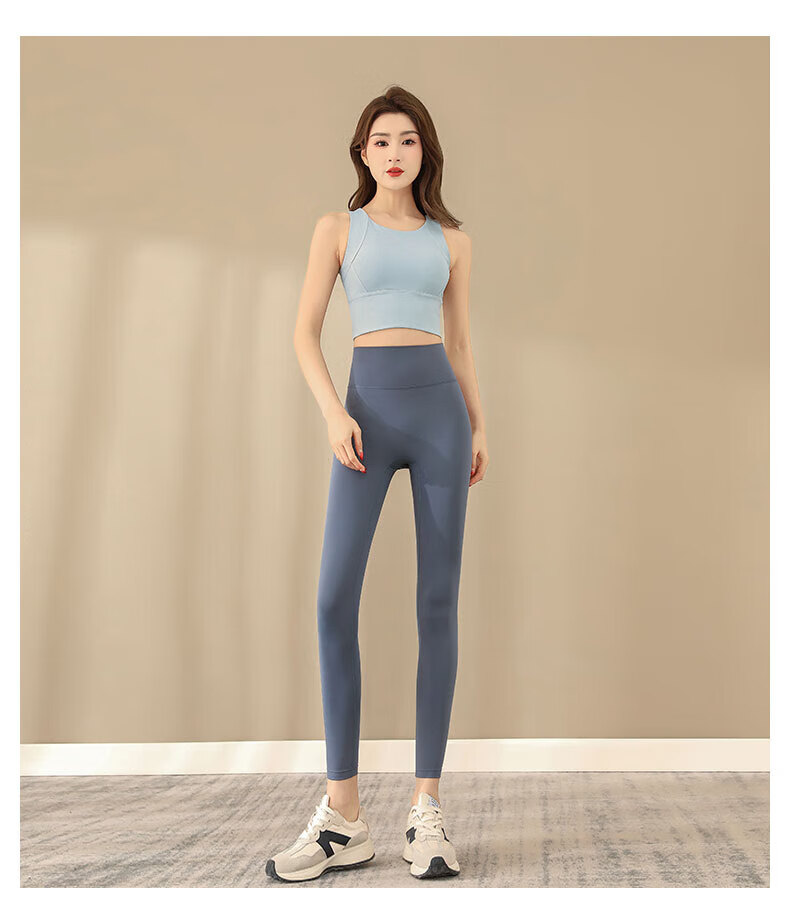 LULULOMDDW three-piece yoga clothing suit for women 2025 new Pilates training clothing, running fitness quick-drying clothes and pants, three-piece suit/grey blue + denim blue + haze blue M (refer to bust and waist for size selection)