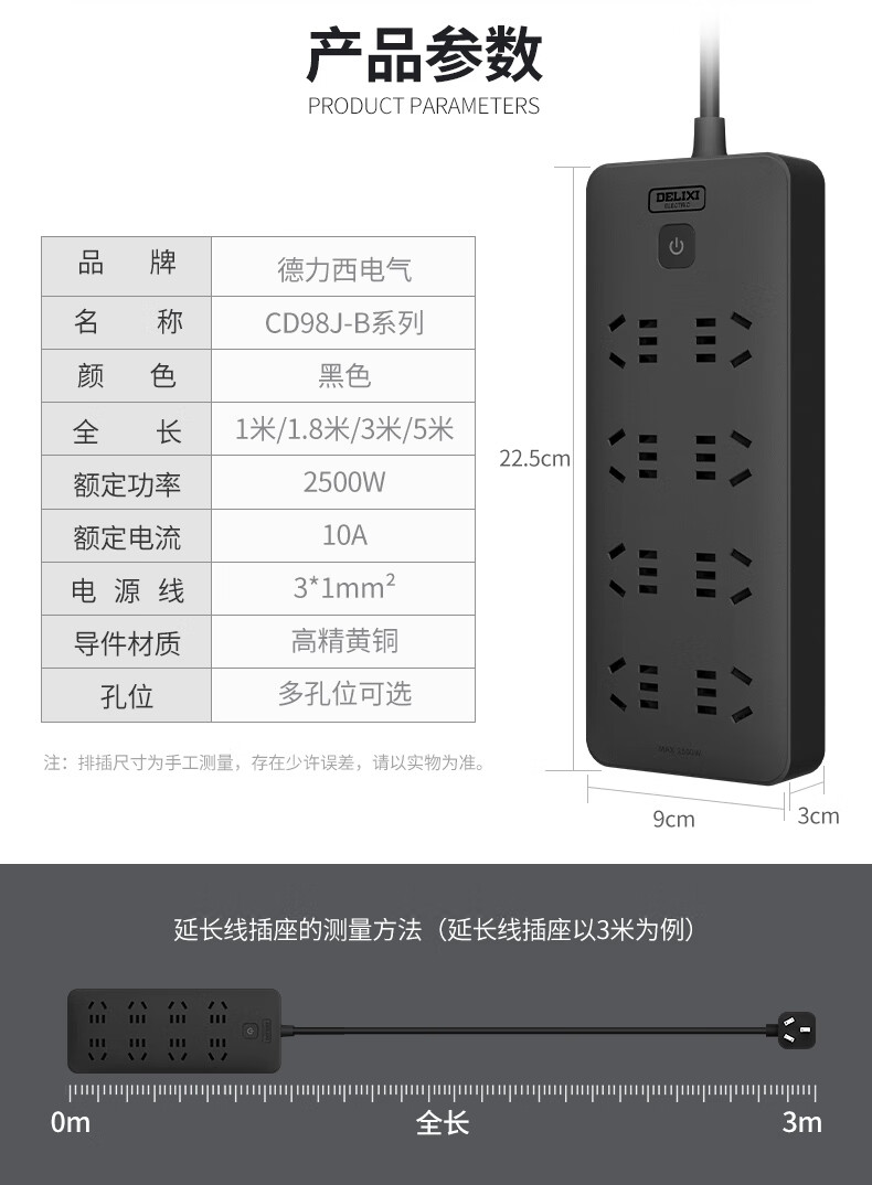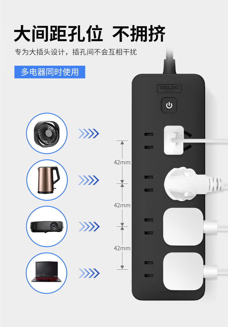 插座黑色插排插线板排插位面板多孔家用拖线板接线板多功能4-10 [款]2+1插位_总控__1米