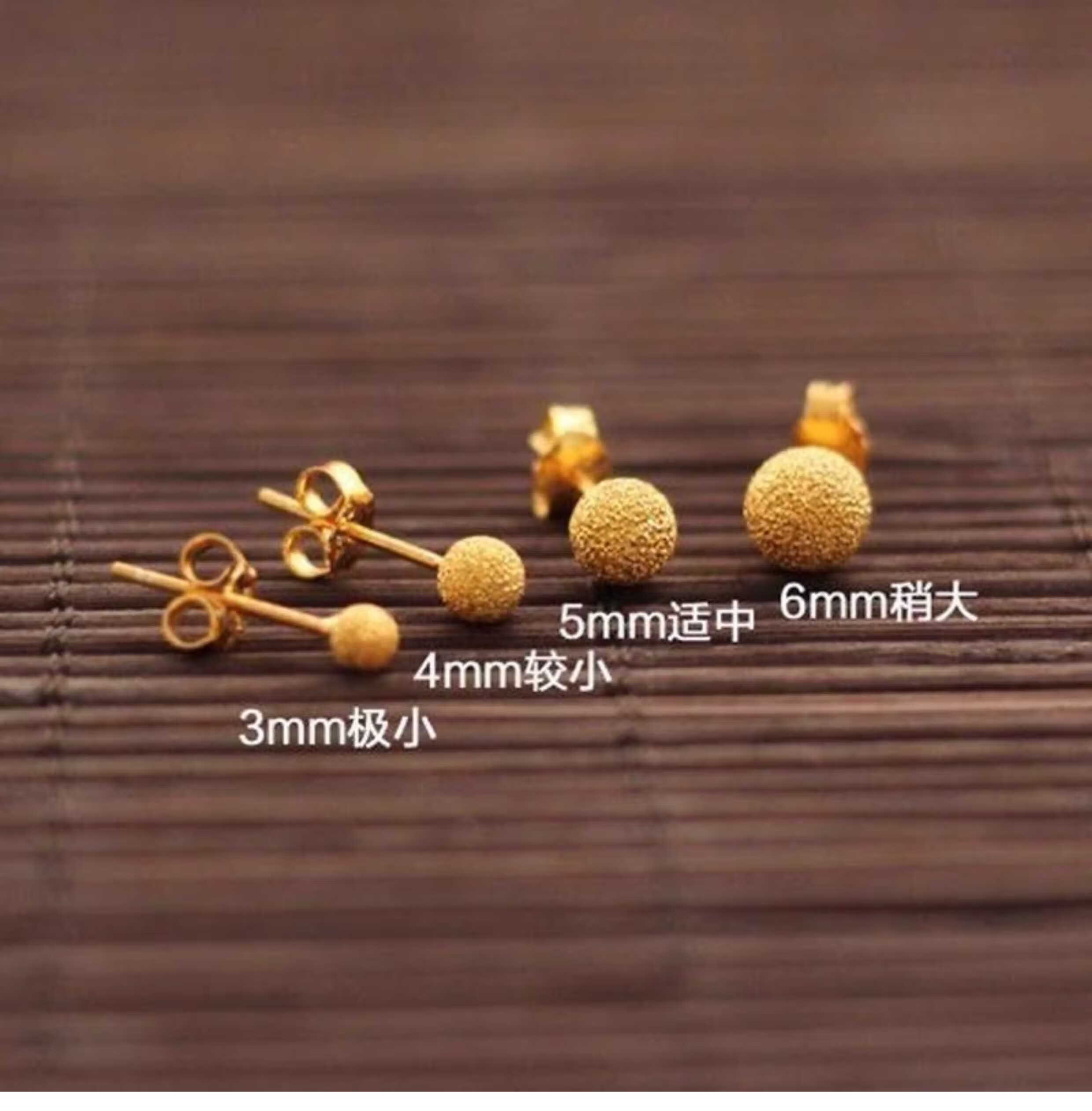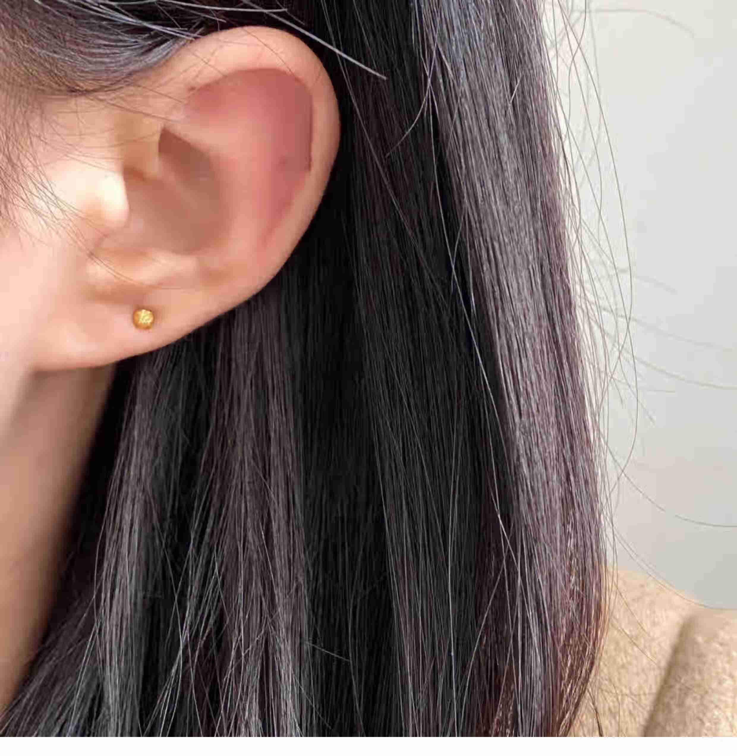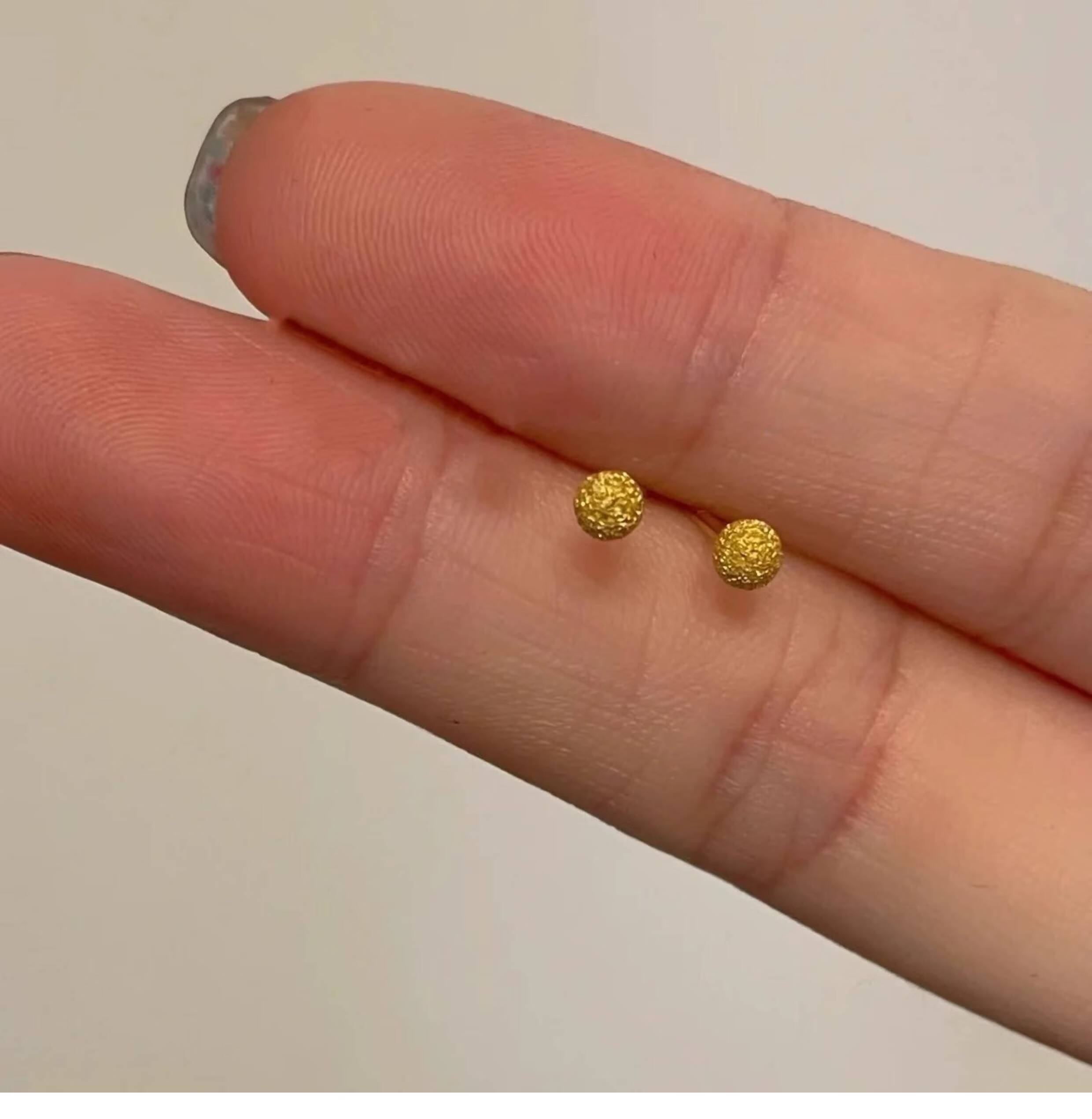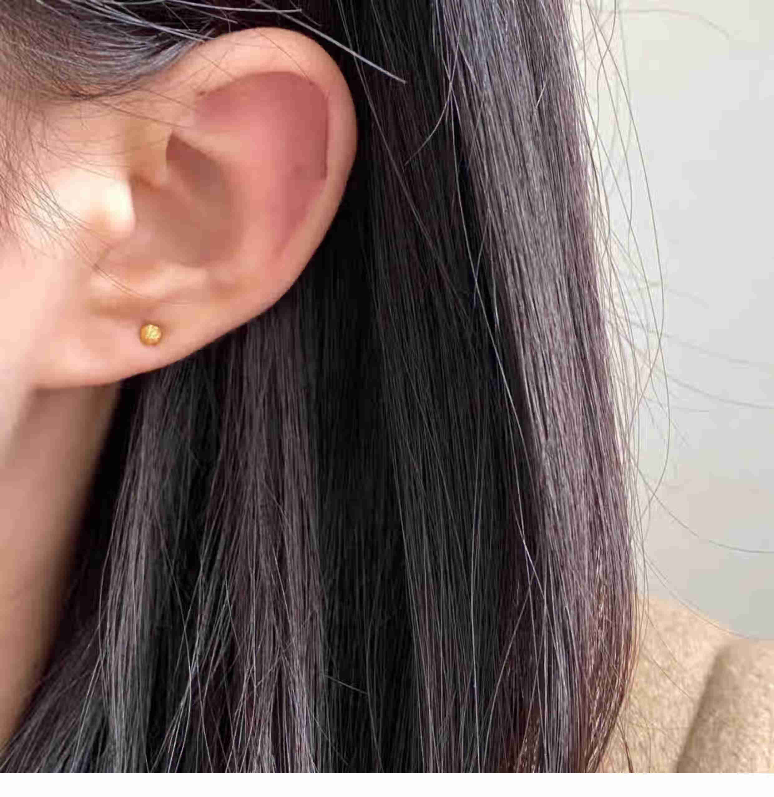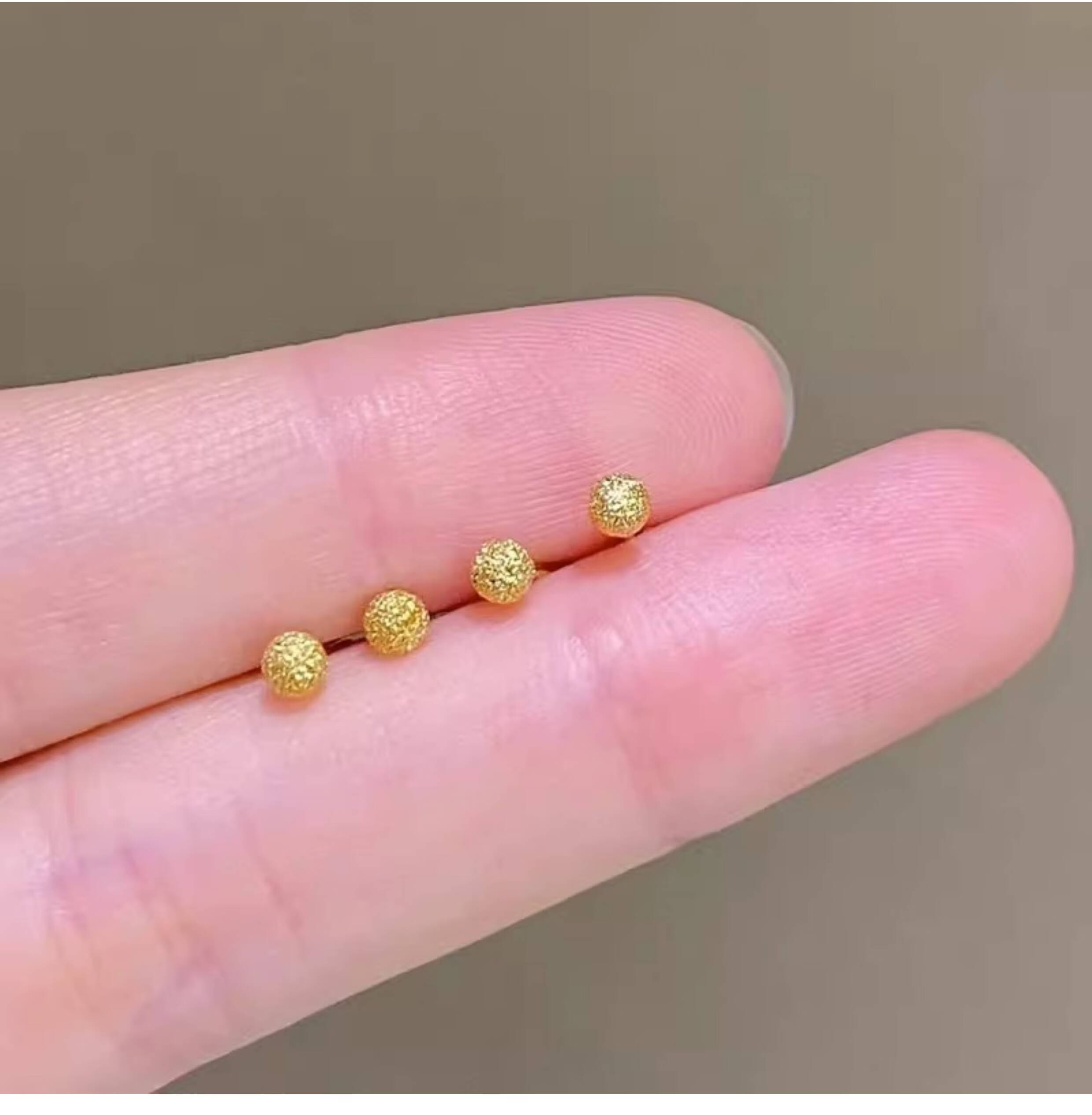 OEMG Old Phoenix Gold Store Model Mini Little Golden Bean 18K Frosted Ear Hole Stud Earrings Feeling Ear Bone Nails Titanium Steel Non-Fading Ears 6mm Little Golden Bean Frosted Earrings