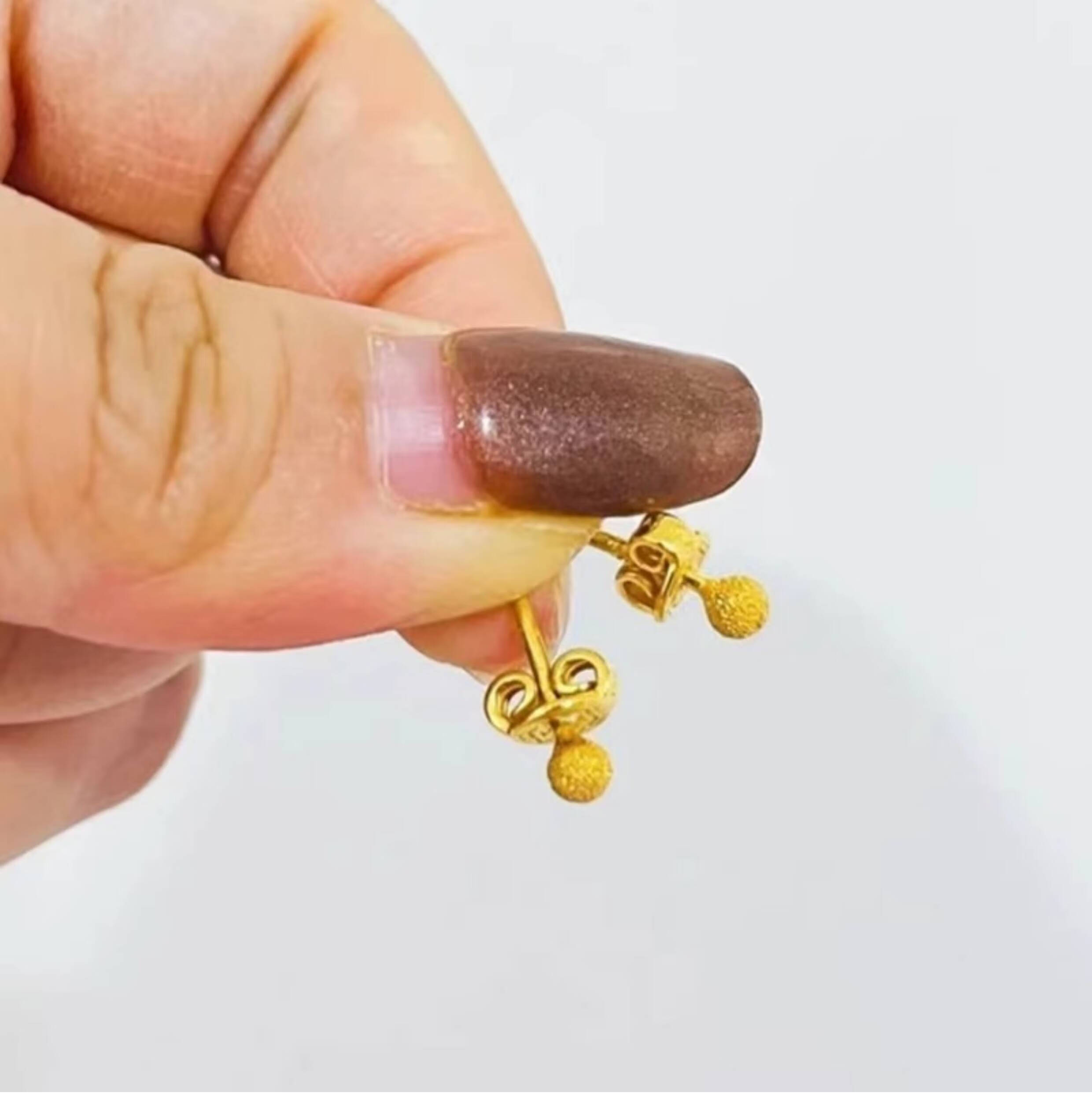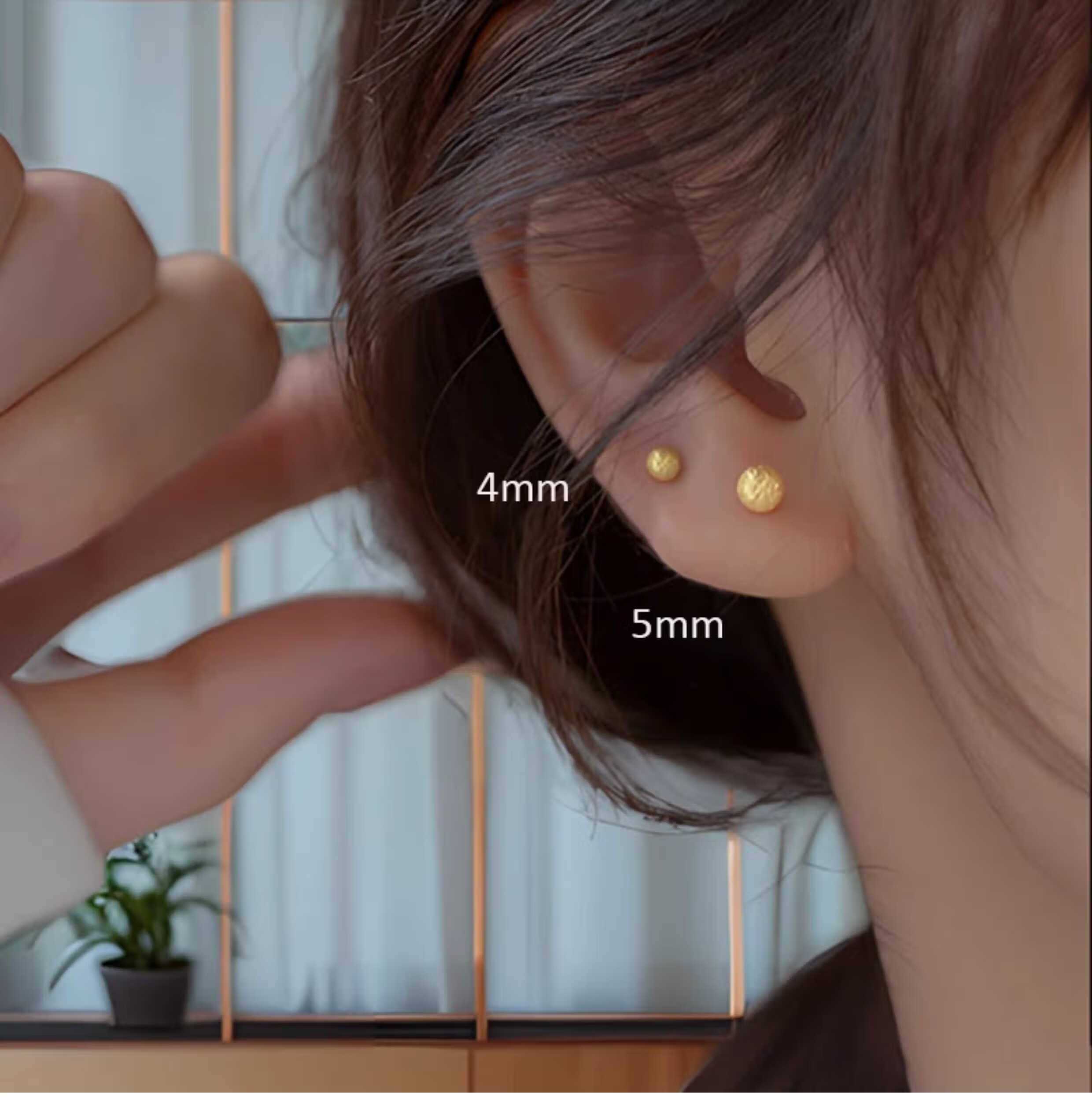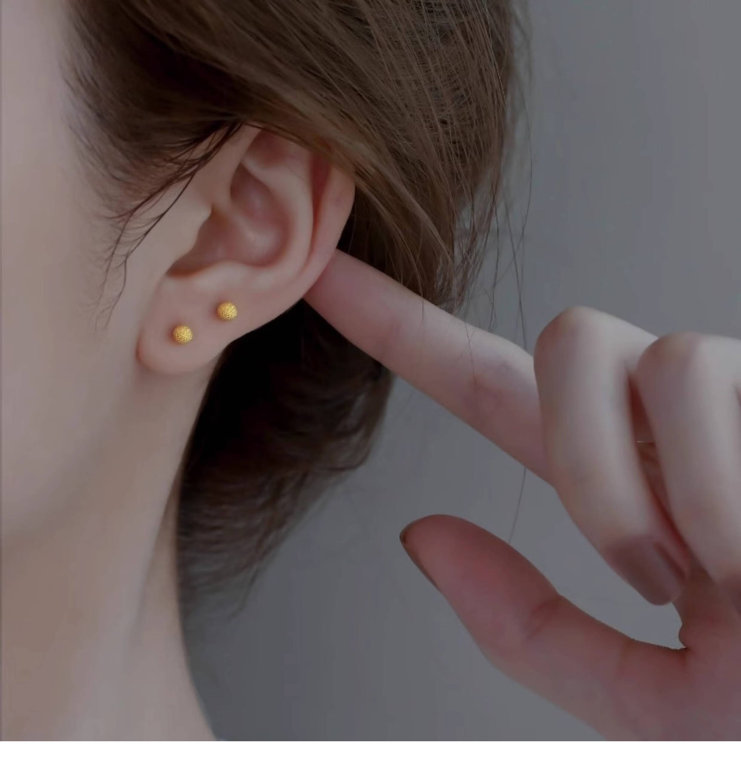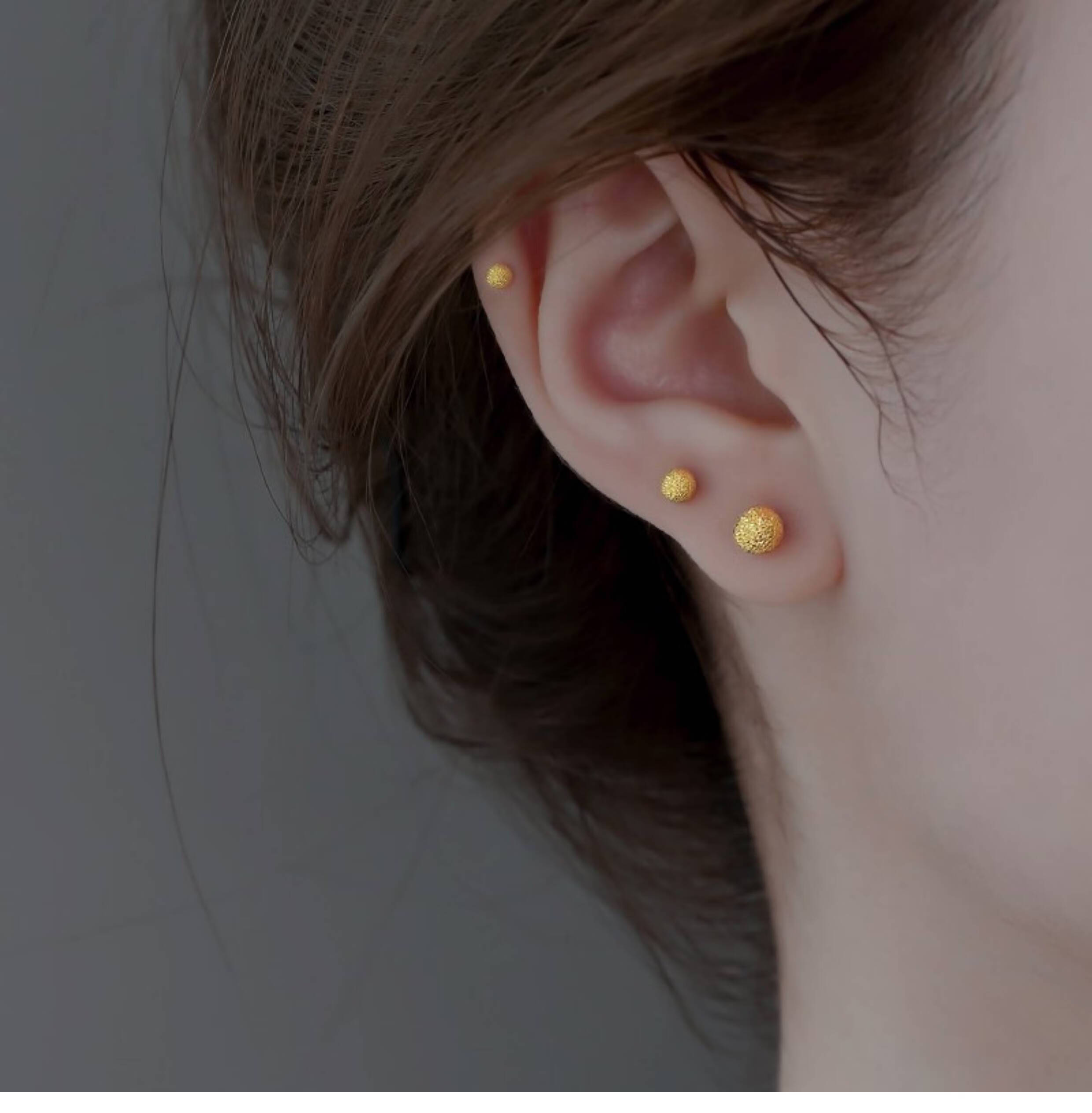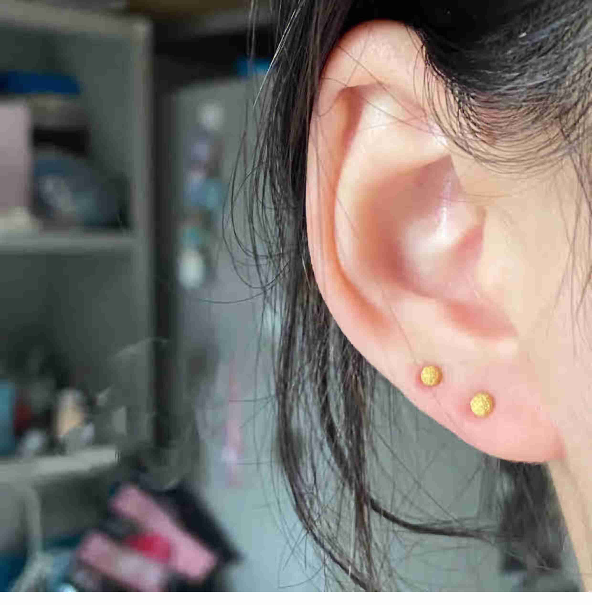 OEMG Old Phoenix Gold Store Model Mini Little Golden Bean 18K Frosted Ear Hole Stud Earrings Feeling Ear Bone Nails Titanium Steel Non-Fading Ears 6mm Little Golden Bean Frosted Earrings