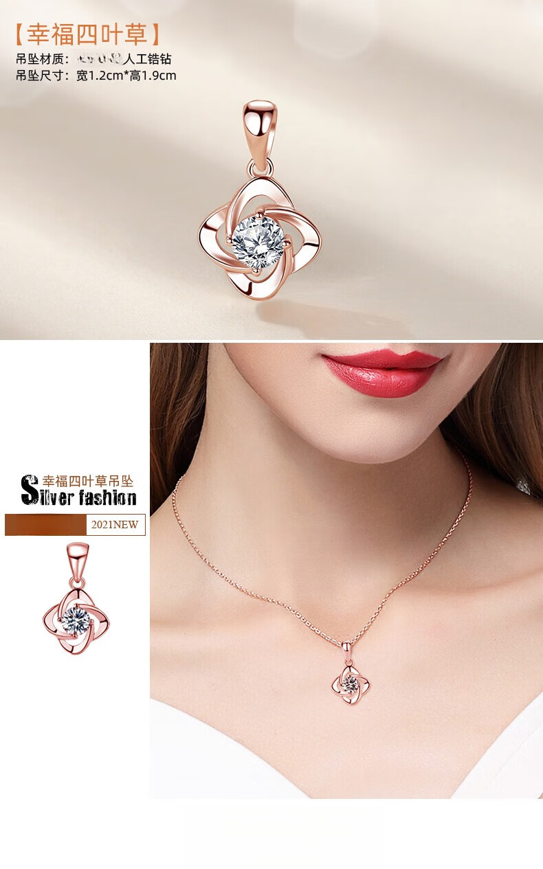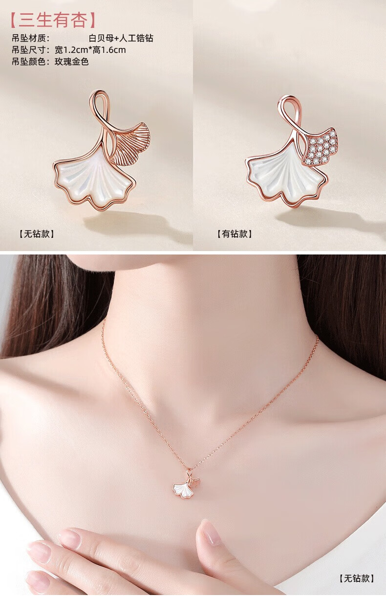 Fat Donglai same style 18k gold pendant single pendant single silver necklace for women without chain plated 18K rose gold color silver color gold Sansheng with apricot diamond-rose gold