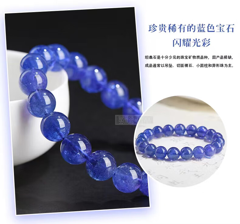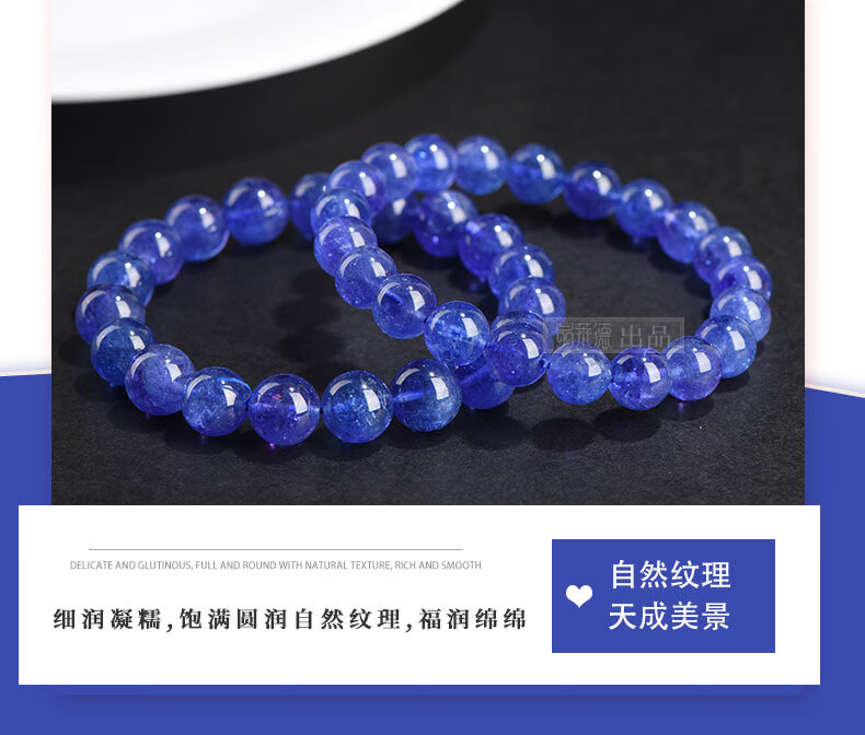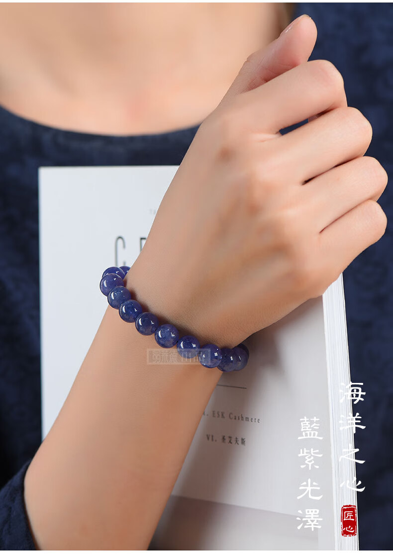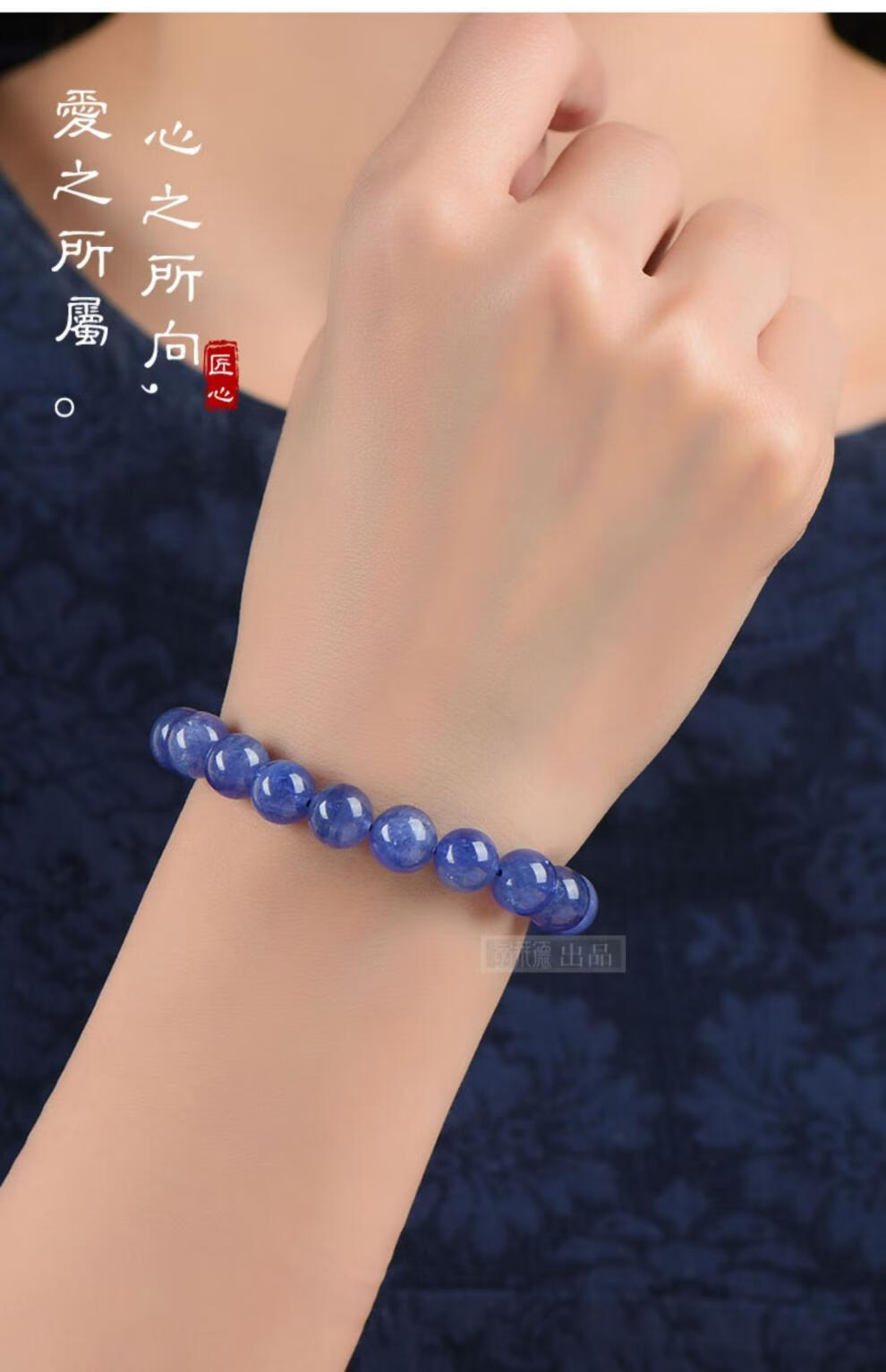 Fengxi collection-grade natural tanzanite bracelet, purple blue bracelet, sapphire cordierite crystal gift for women, collection-grade tanzanite bracelet, approximately 10mm bead diameter, tanzanite