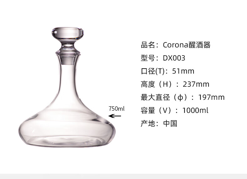 Xiangxing imported craftsmanship advanced light luxury crystal glass red wine decanter household quick wine divider with lid and wine pot set Corona decanter with lid 1000ml (single)