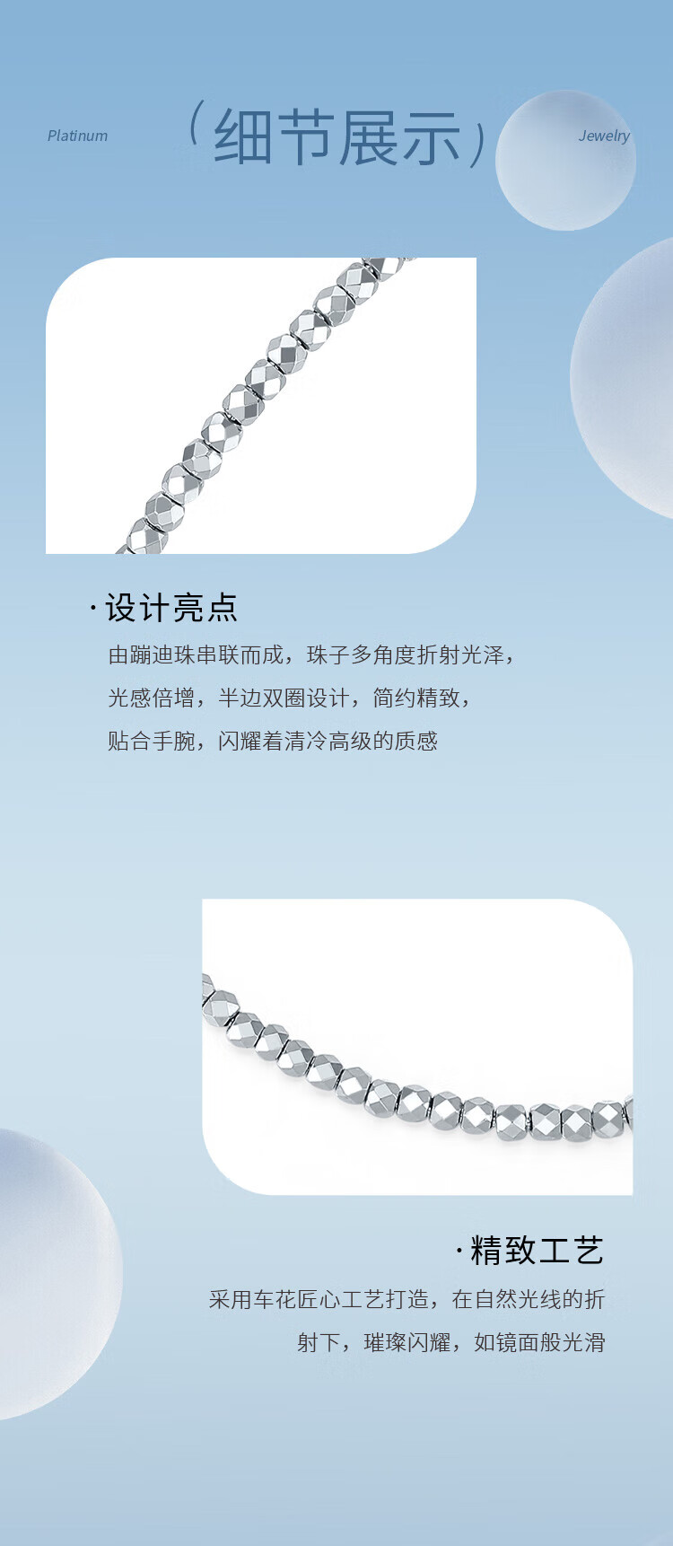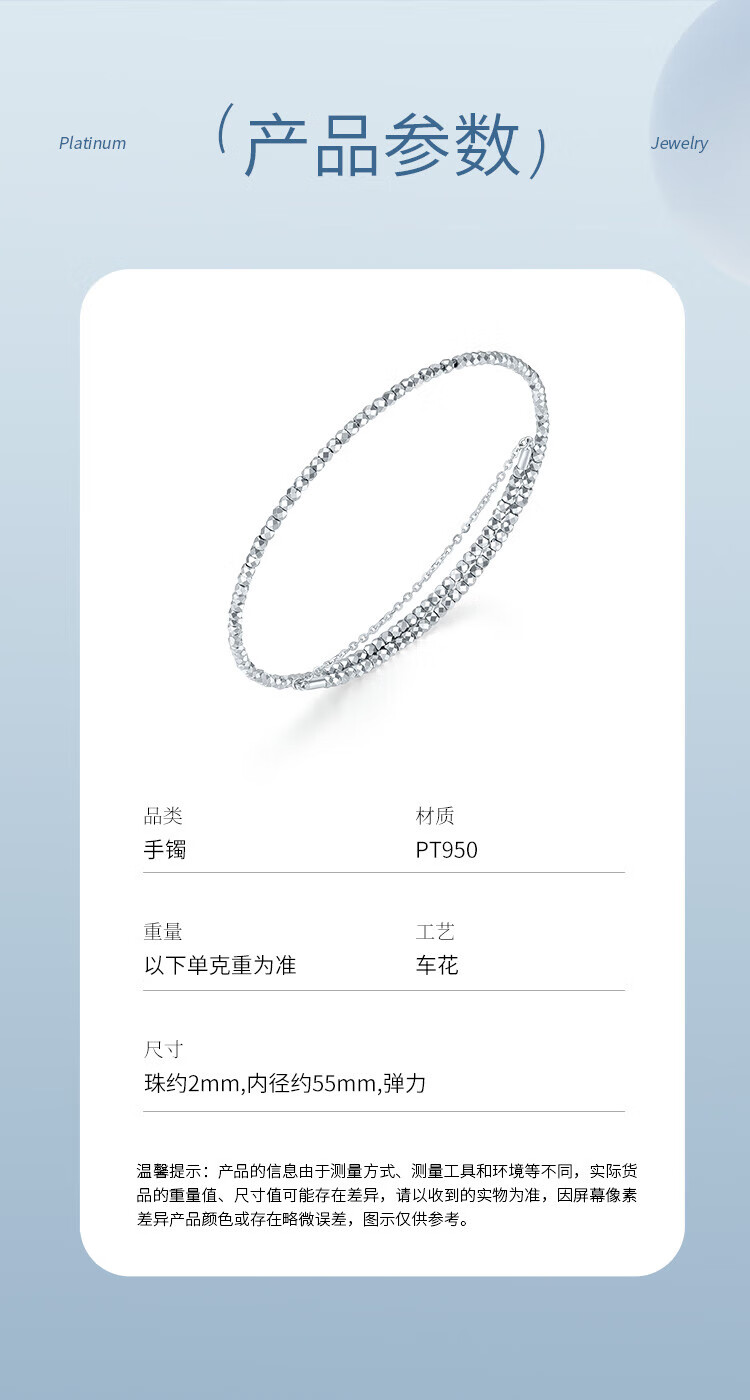 Liuguifu Jewelry Platinum Bracelet Women's PT950 Platinum Bracelet Bracelet Birthday Gift for Girlfriend 4.80g