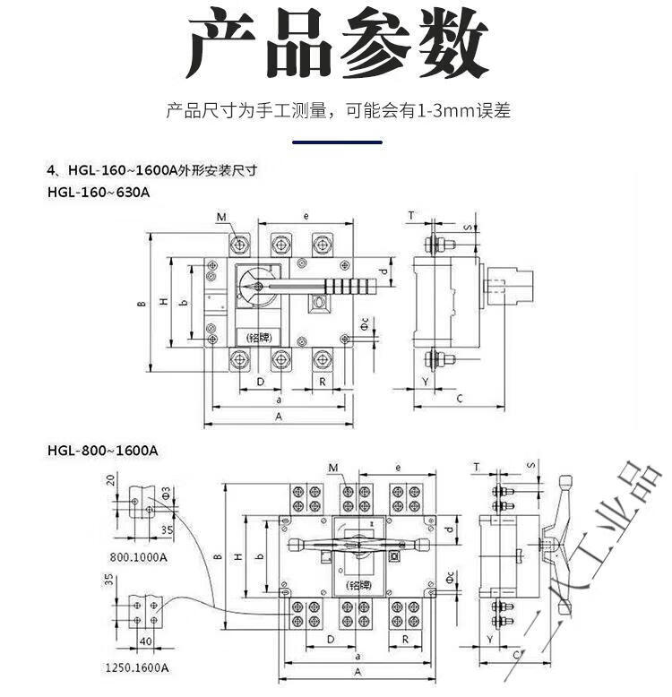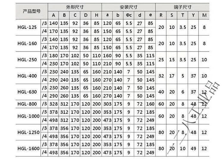 Customized copper load isolation switch HGL1000 1250A 1600 2000A Shanghai Renmin 3 4p inside and outside the cabinet HGL- HGL-2000A/3 inside the cabinet