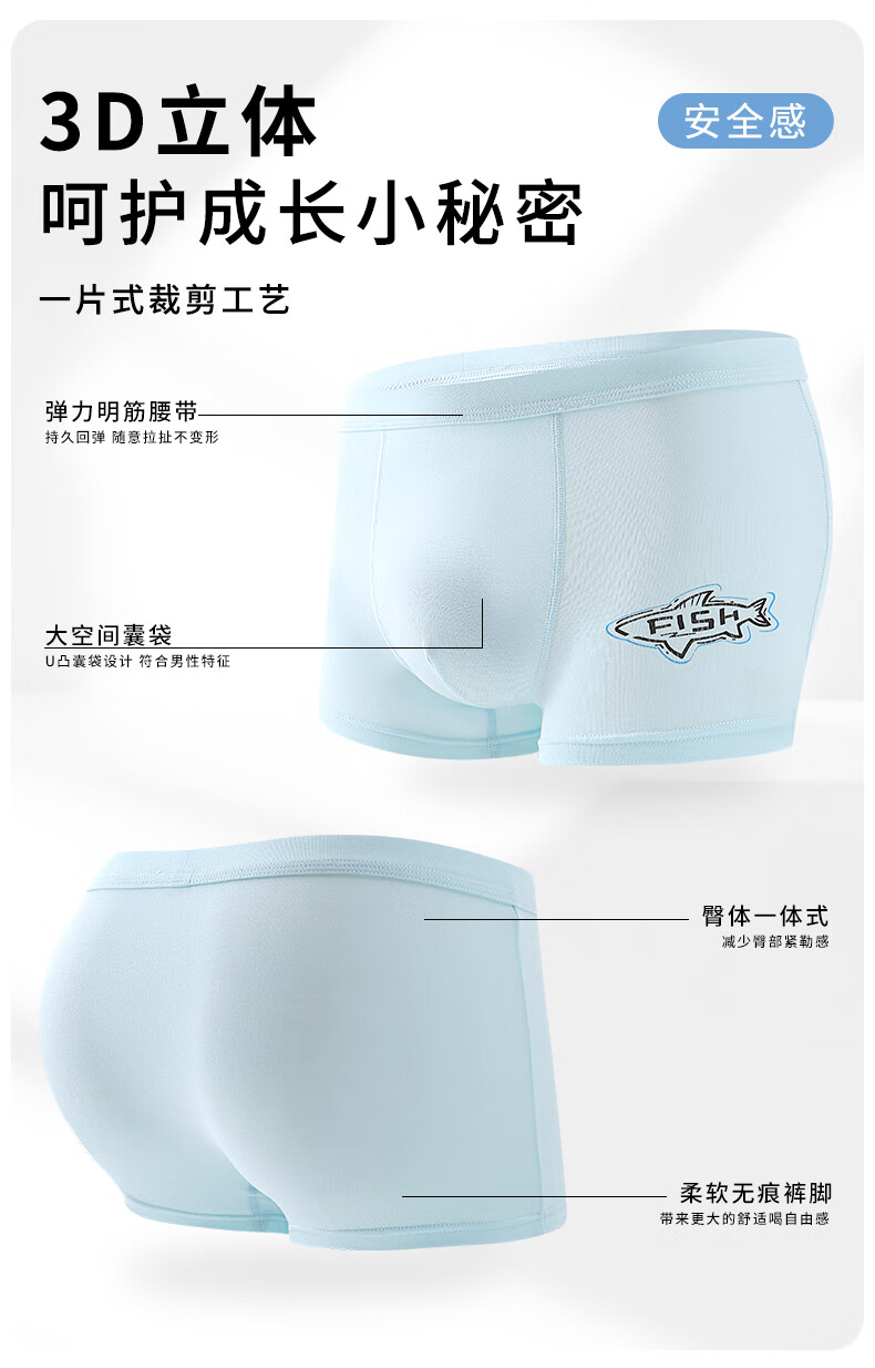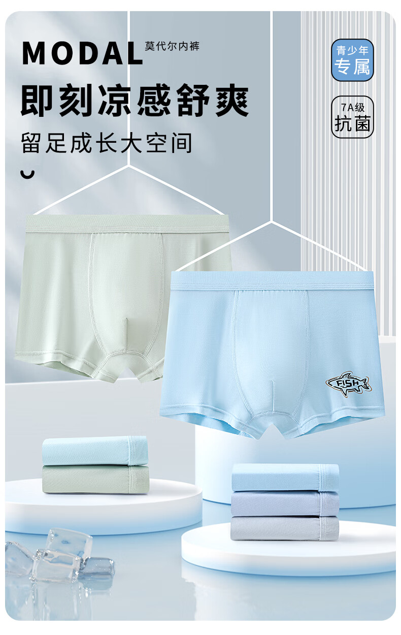 Teen underwear men's summer thin growth period older boys' mesh modal boxer briefs for middle and high school students Modal 140# 4 pairs One size fits all 4XL Recommended weight 75Jin Jin is equal to 0.5kg -90Jin Jin is equal to 0.5kg