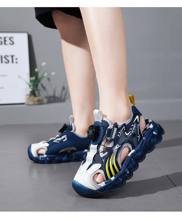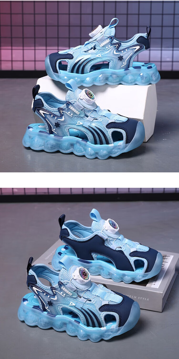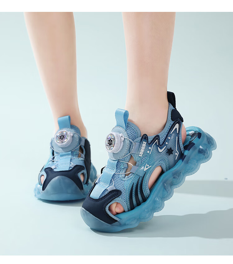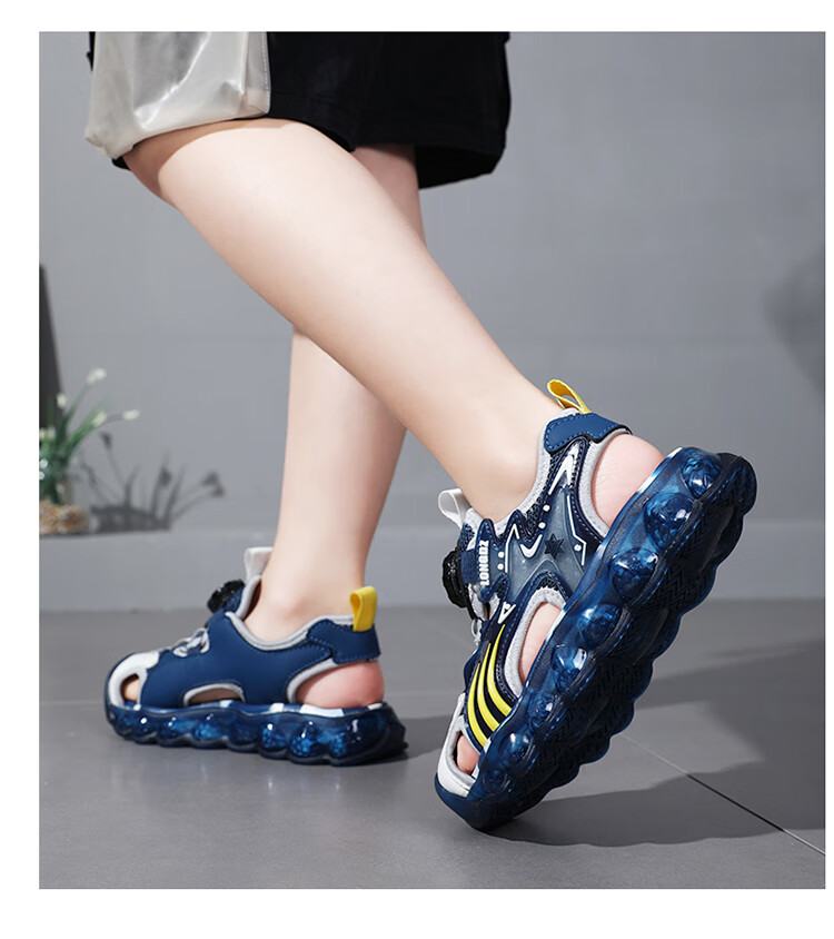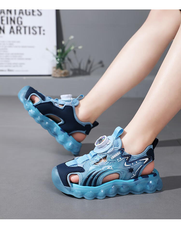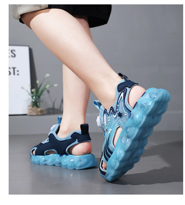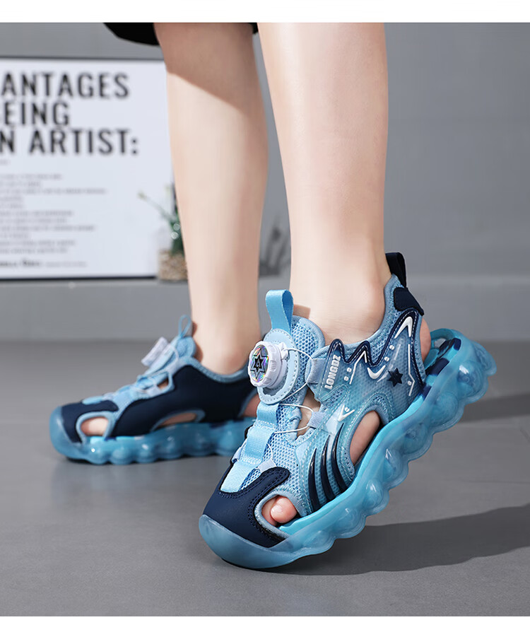 Children's Sandals Boys Summer 2025 New Baotou Beach Shoes for Big Children Boys Soft Bottom Anti-Slip Summer Mesh Sapphire Blue 38