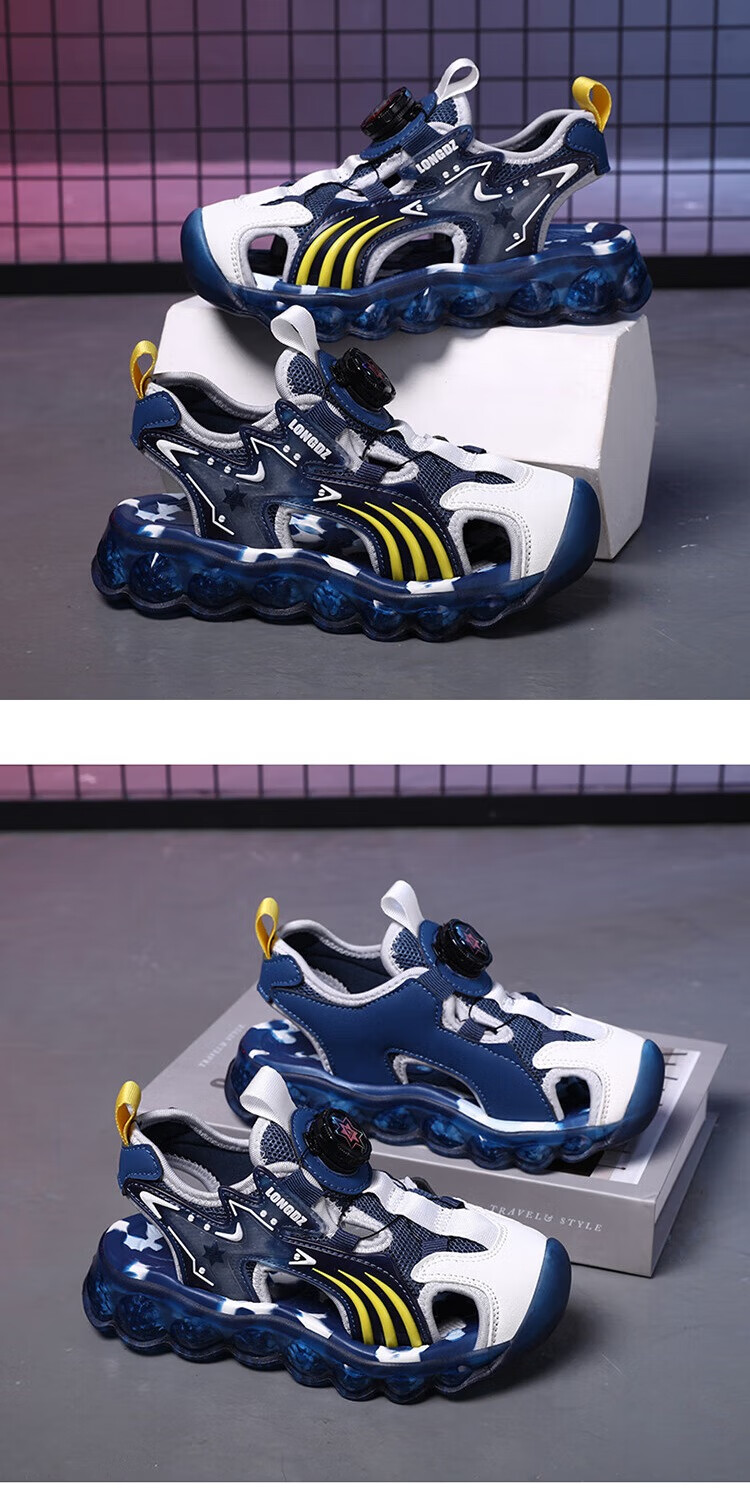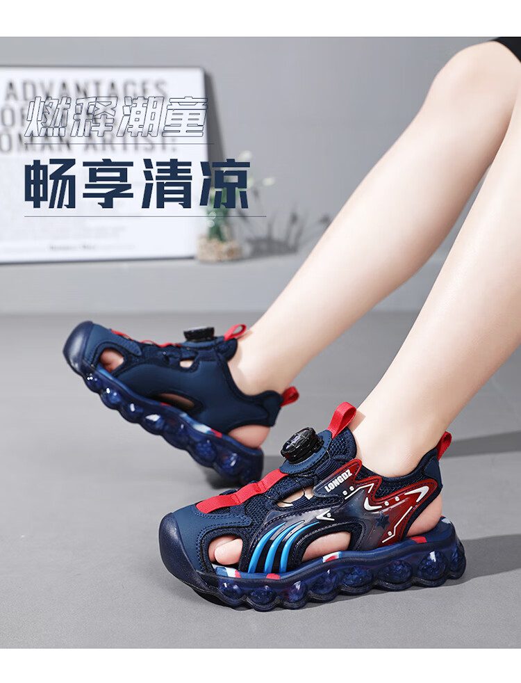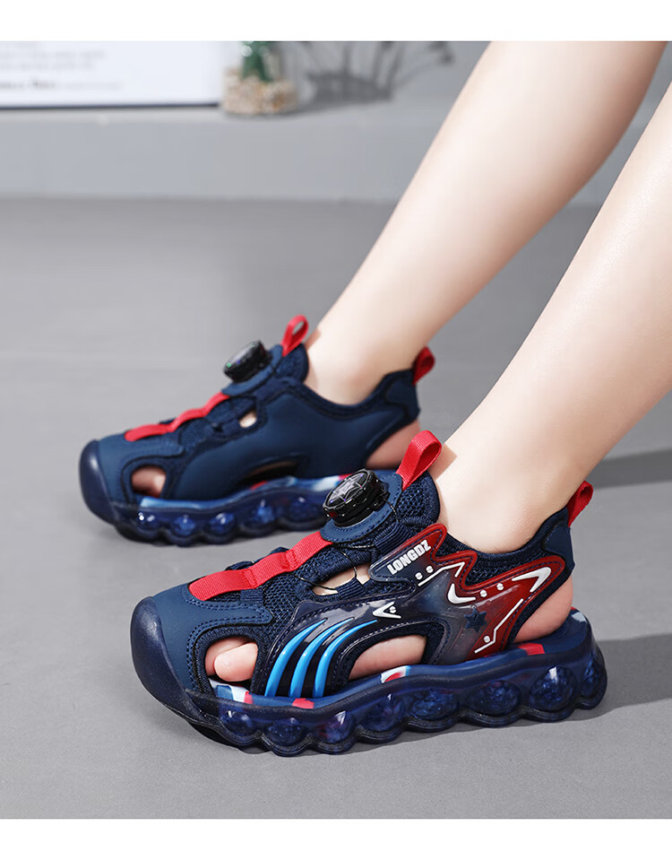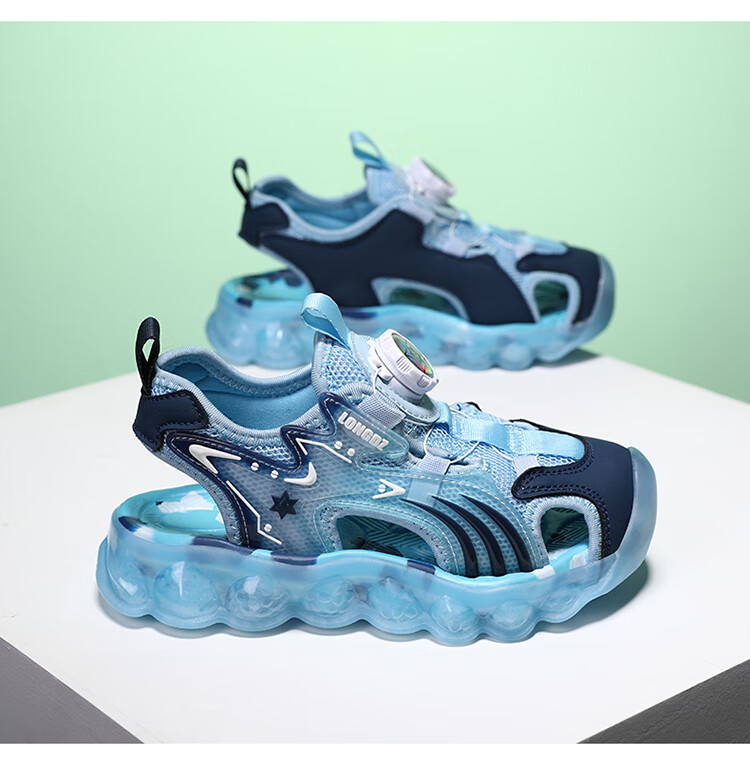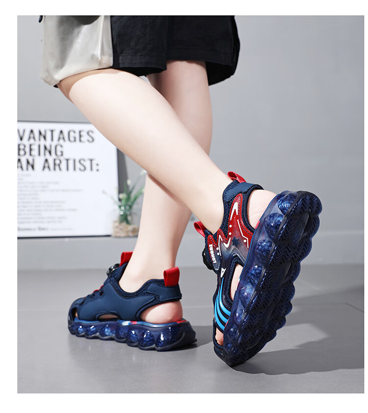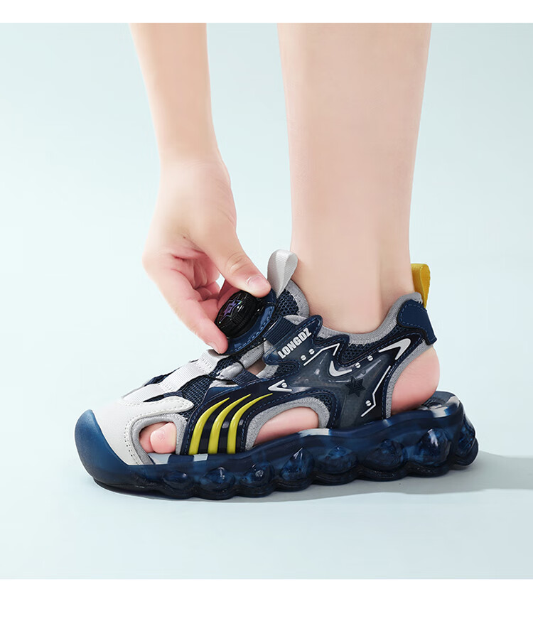 Children's Sandals Boys Summer 2025 New Baotou Beach Shoes for Big Children Boys Soft Bottom Anti-Slip Summer Mesh Sapphire Blue 38
