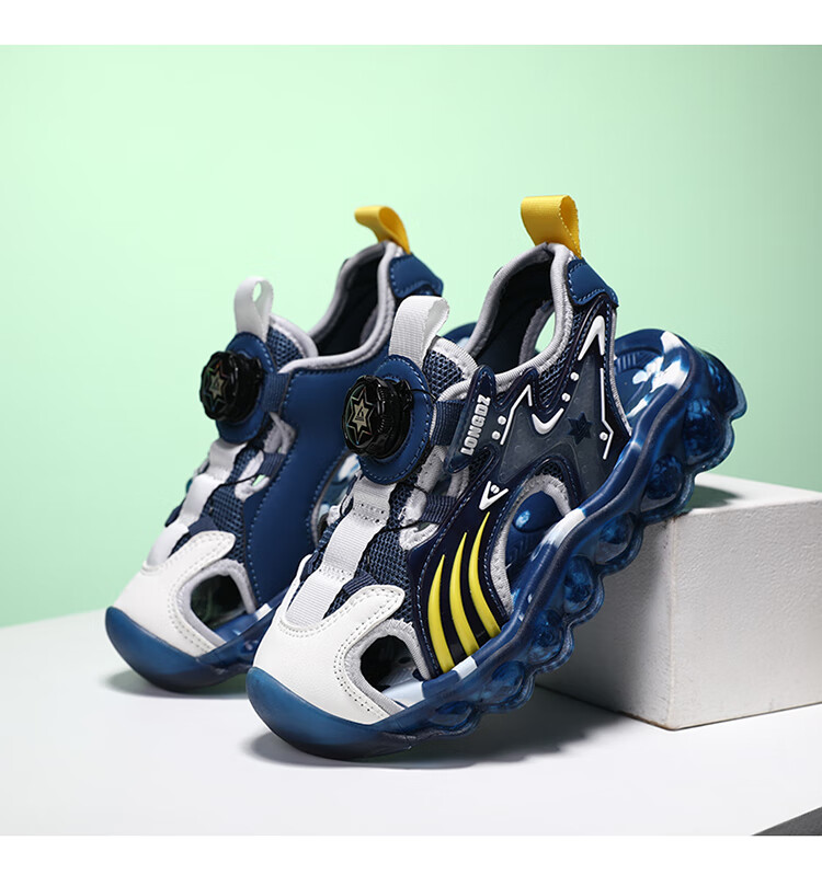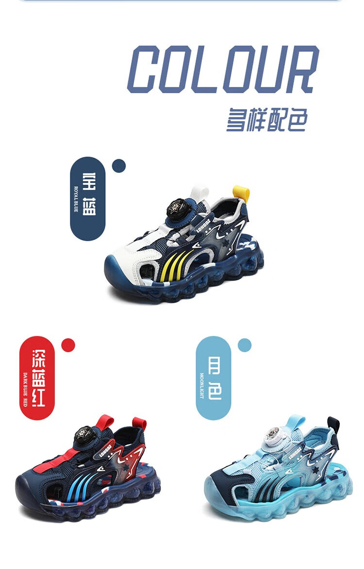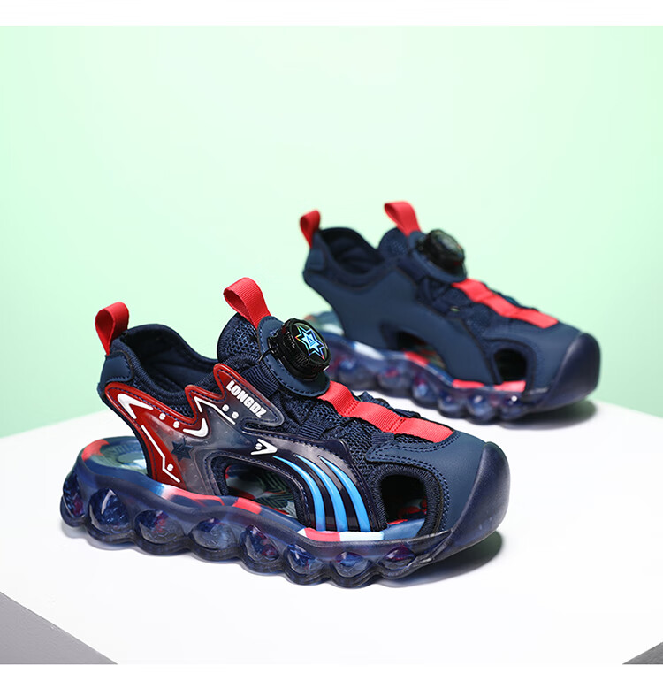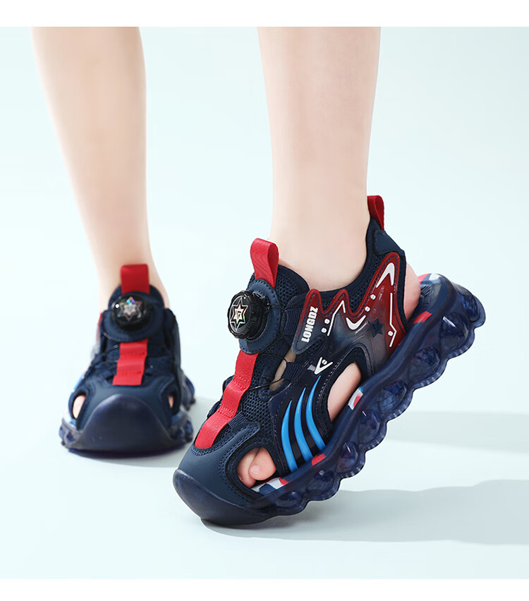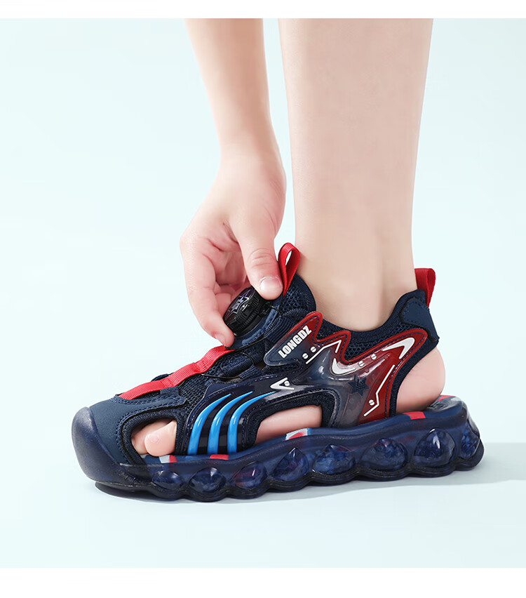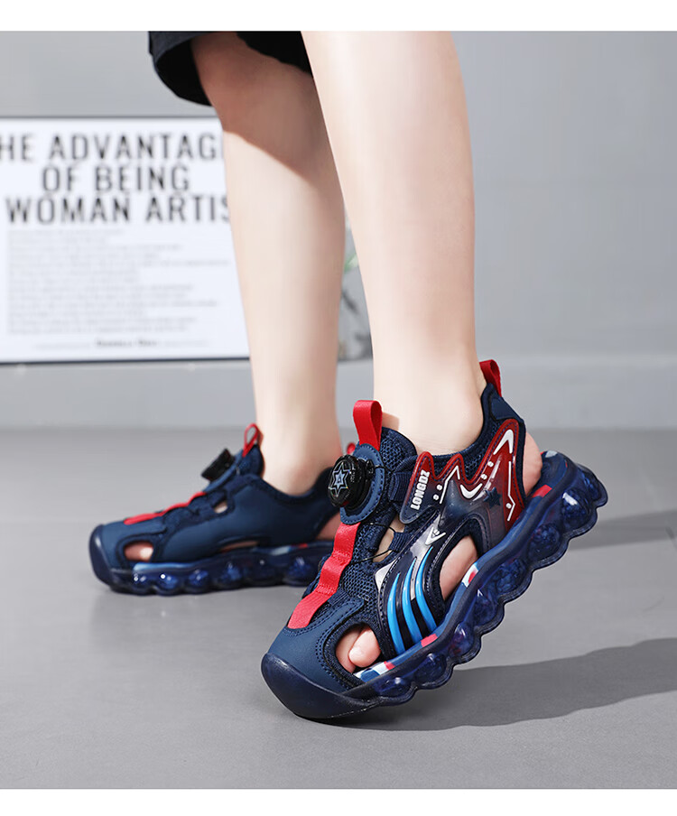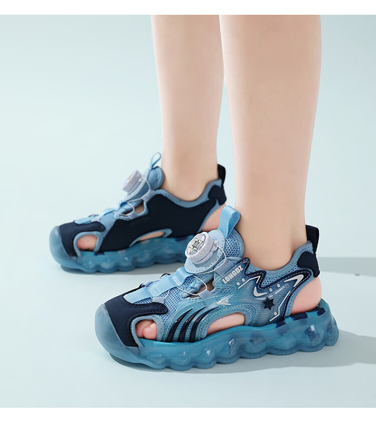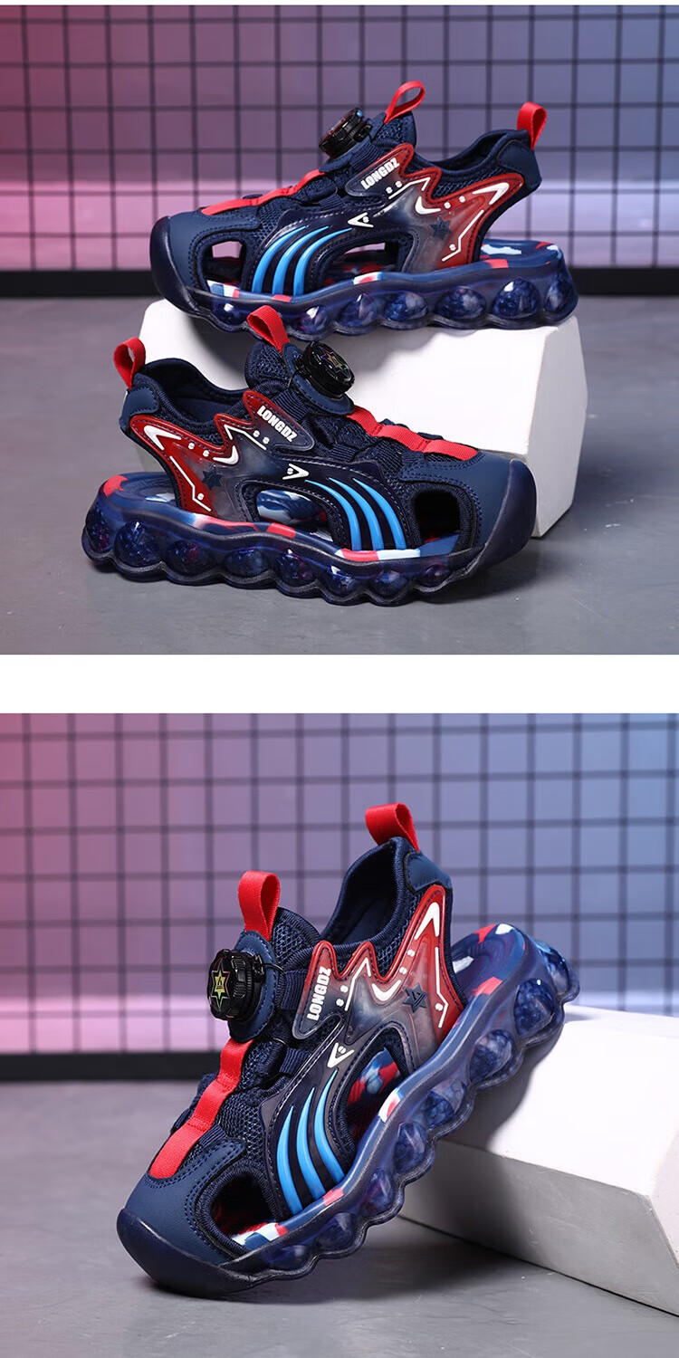 Children's Sandals Boys Summer 2025 New Baotou Beach Shoes for Big Children Boys Soft Bottom Anti-Slip Summer Mesh Sapphire Blue 38
