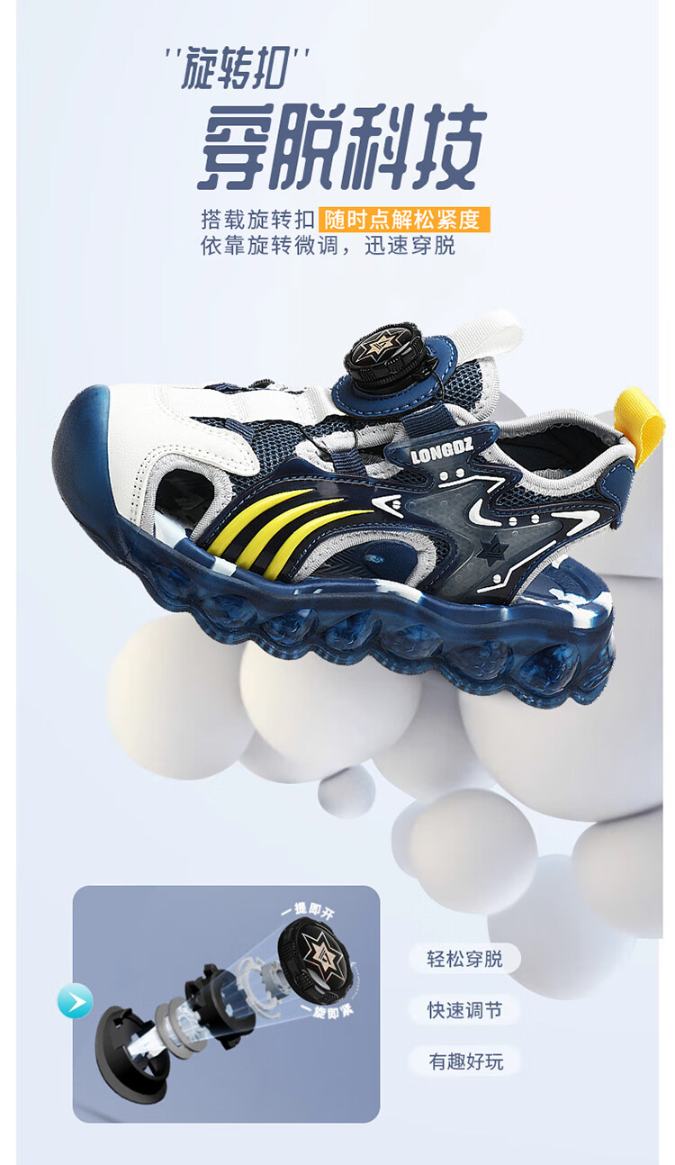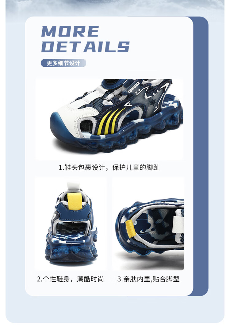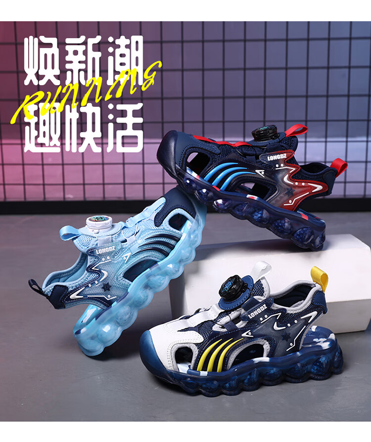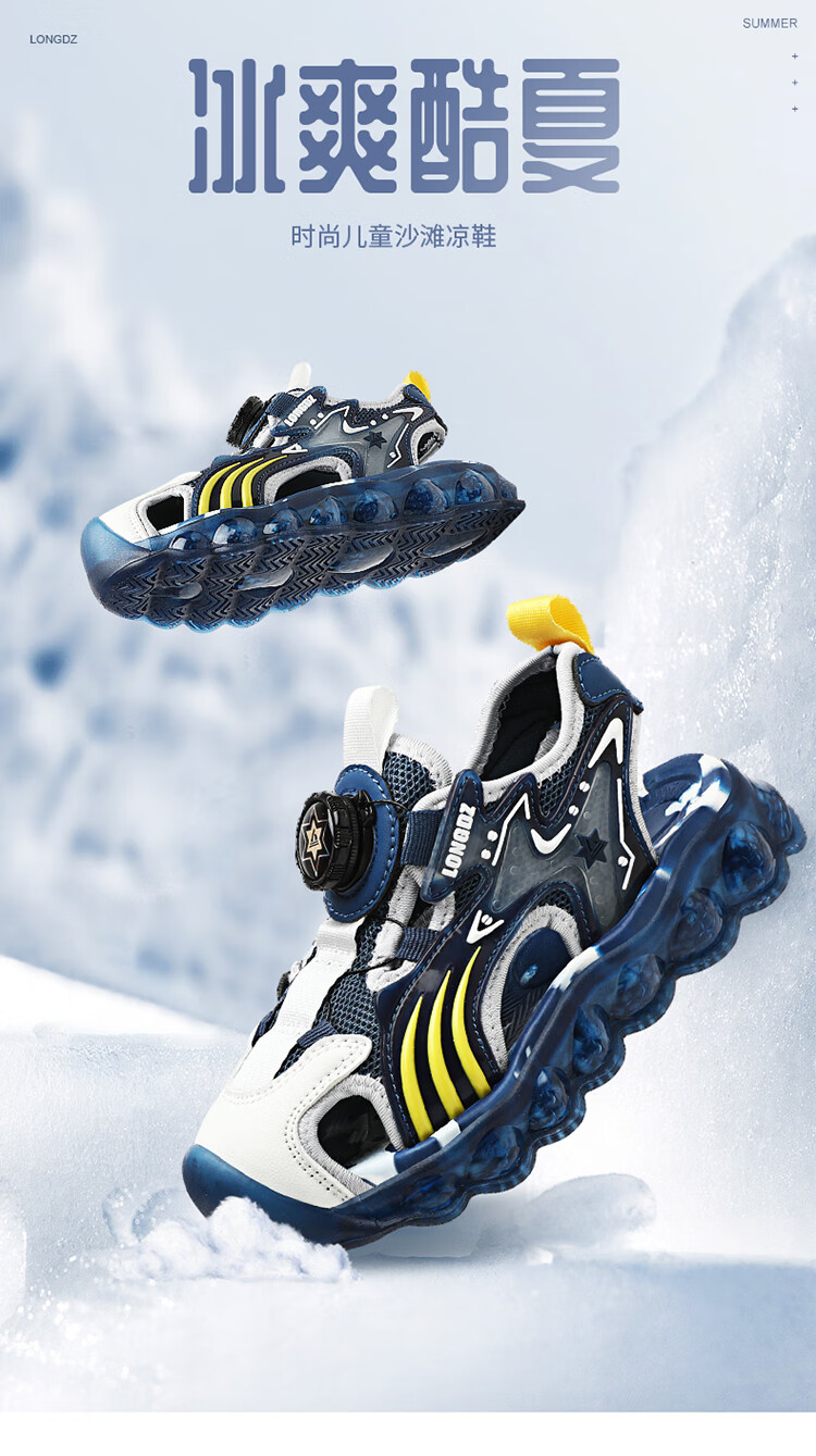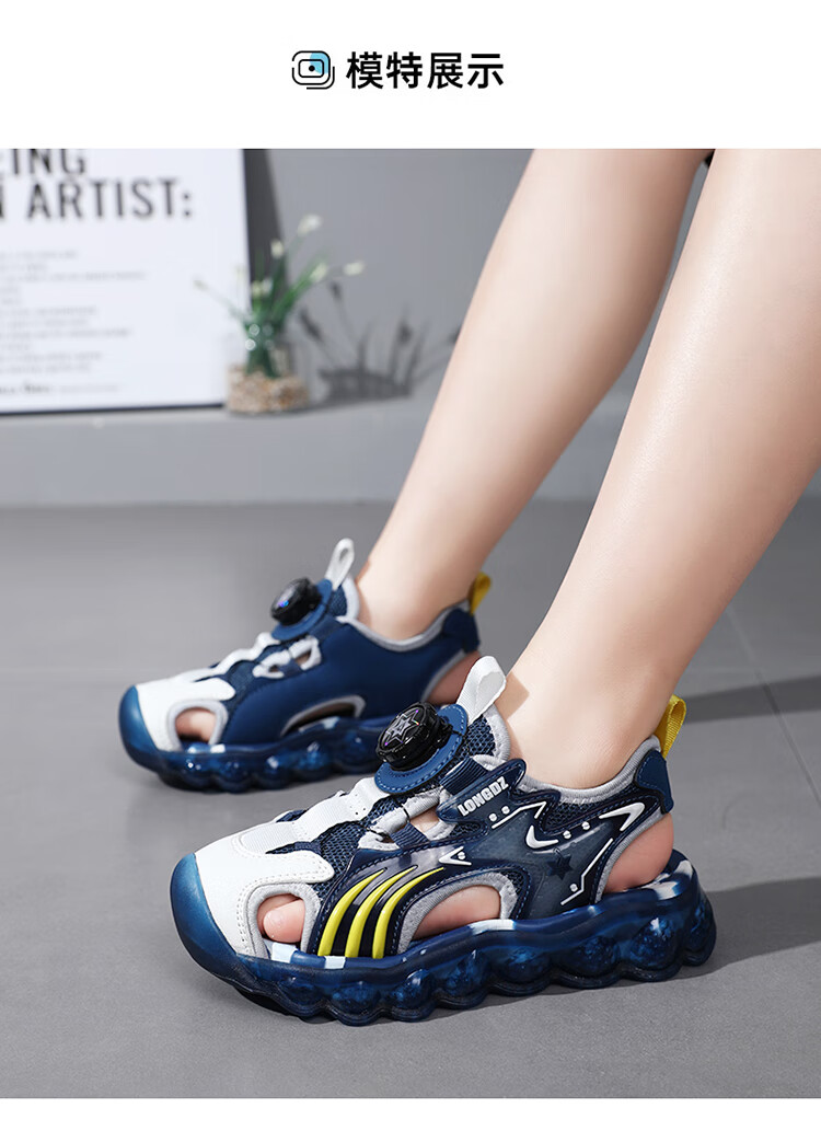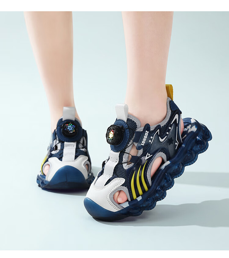 Children's Sandals Boys Summer 2025 New Baotou Beach Shoes for Big Children Boys Soft Bottom Anti-Slip Summer Mesh Sapphire Blue 38
