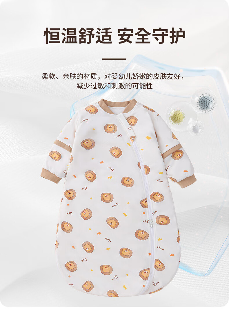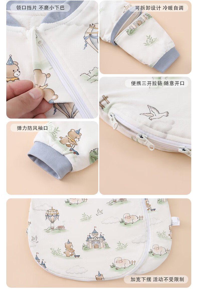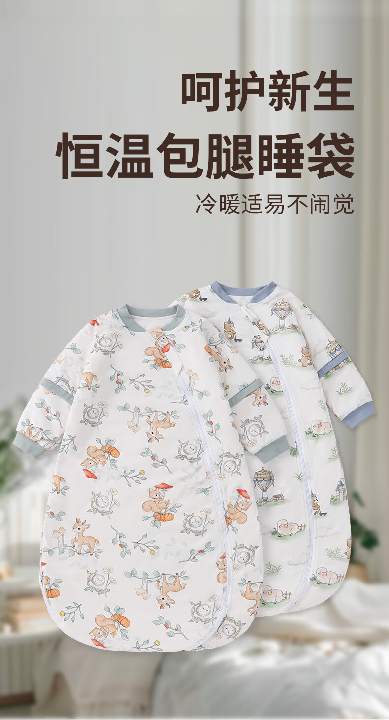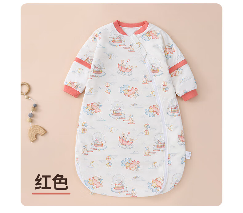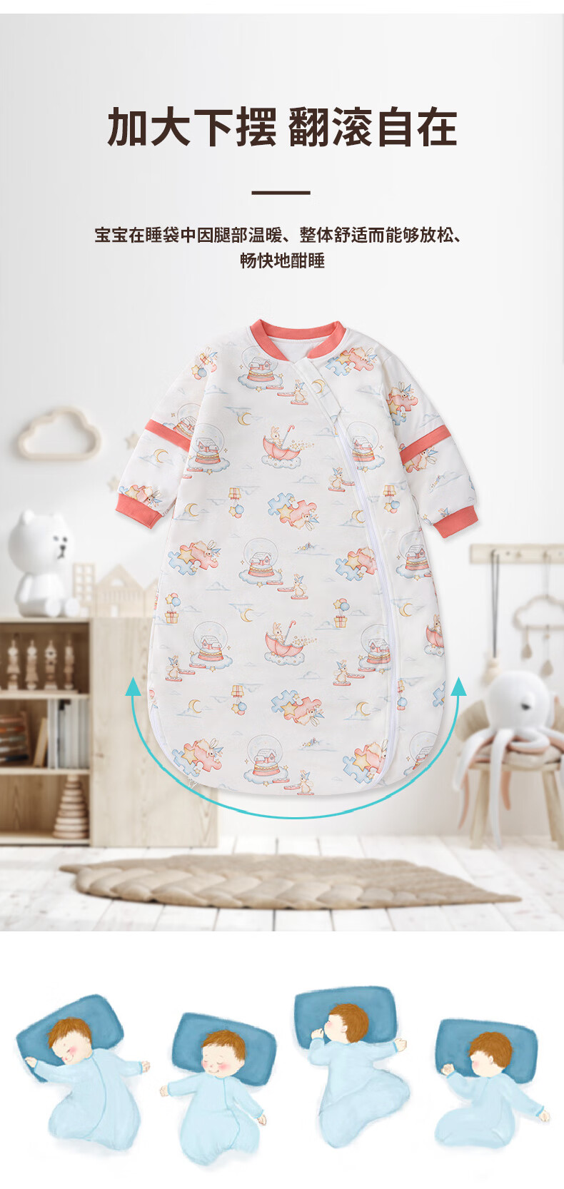 Baby sleeping bag autumn and winter children's constant temperature pure cotton anti-jump sleeping bag newborn baby all-in-one anti-kick sleeping bag four seasons pink bunny 90CM