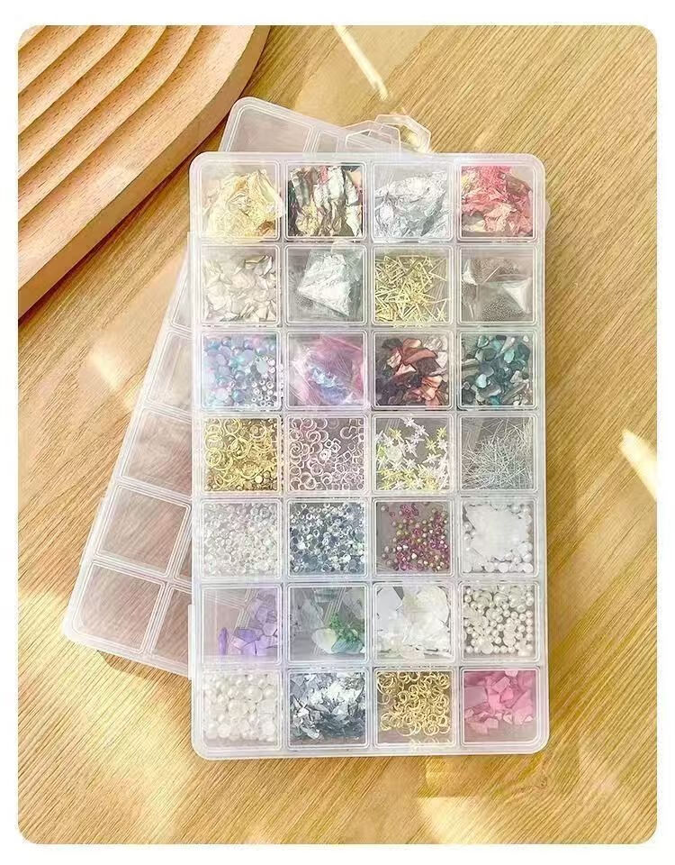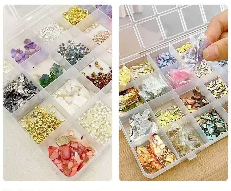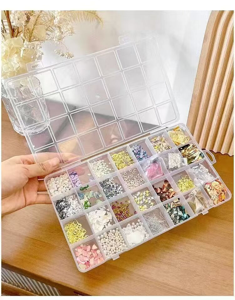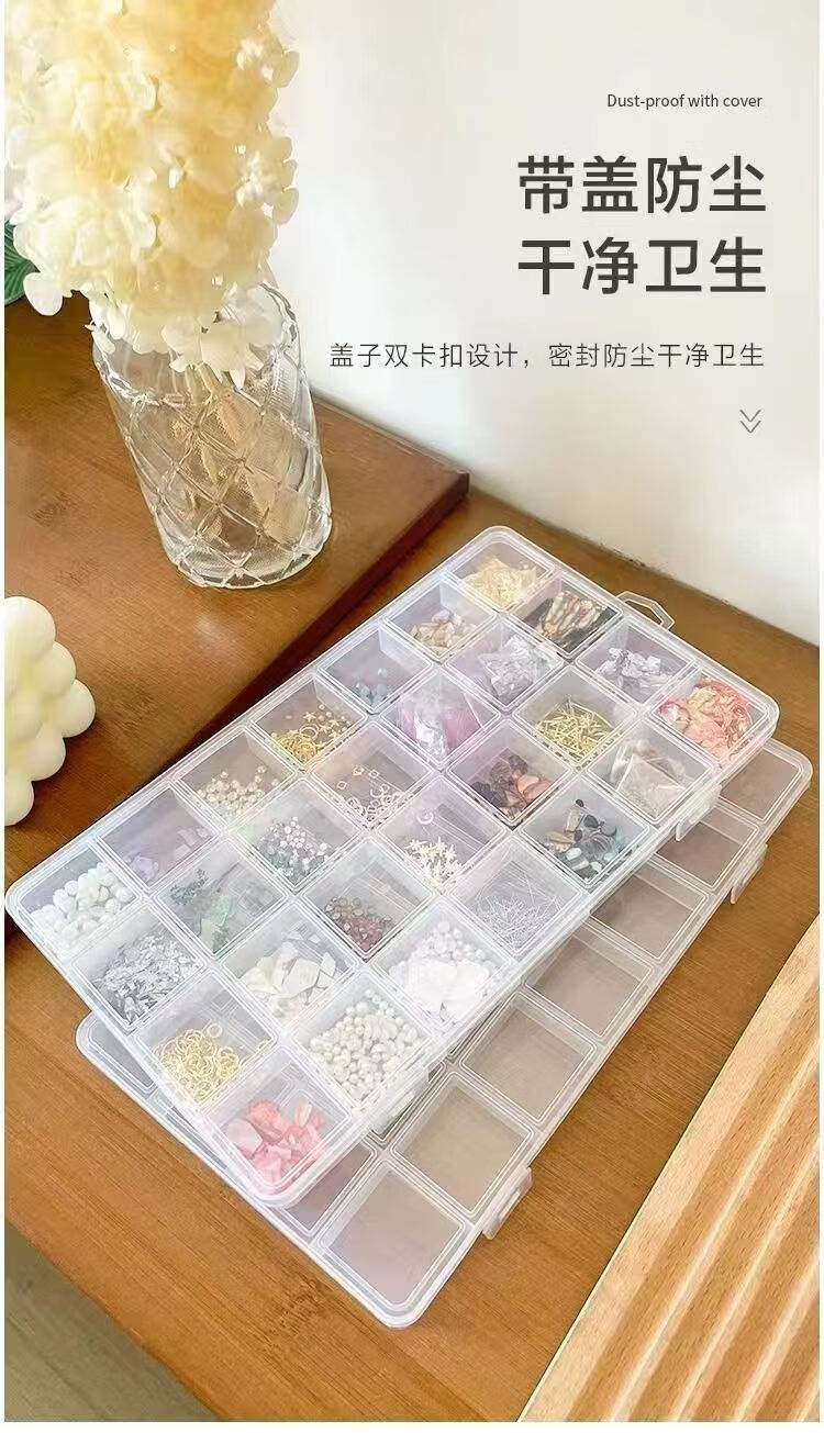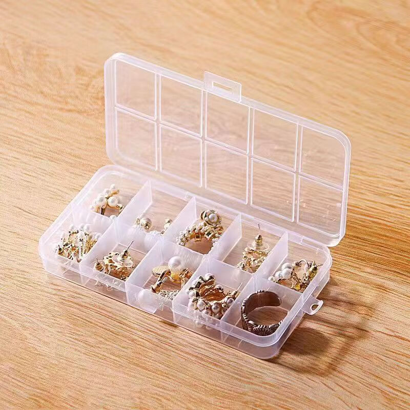 Transparent jewelry box, plastic box, jewelry storage box, multi-compartment box, jewelry storage box, 10-compartment jewelry box (non-detachable), 1 blue buckle