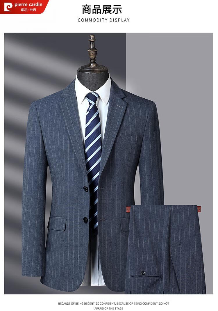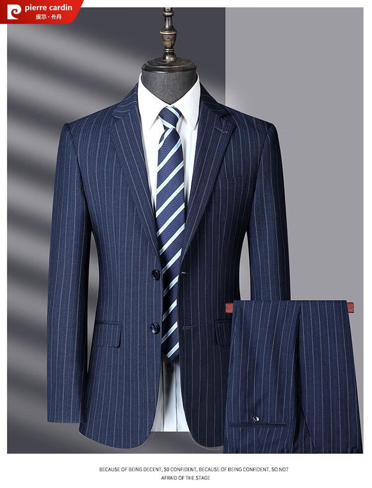 Pierre Cardin light luxury high-end striped suit suit for men spring and autumn middle-aged men's high-end suit casual groom's dress for men blue