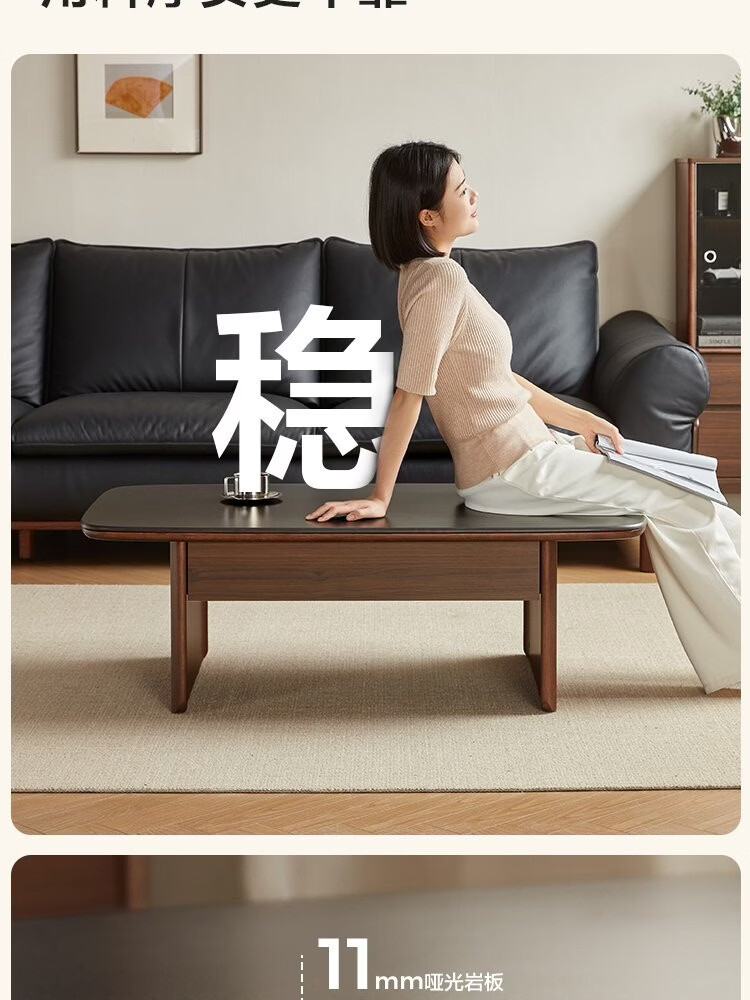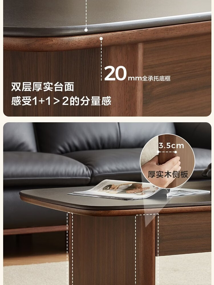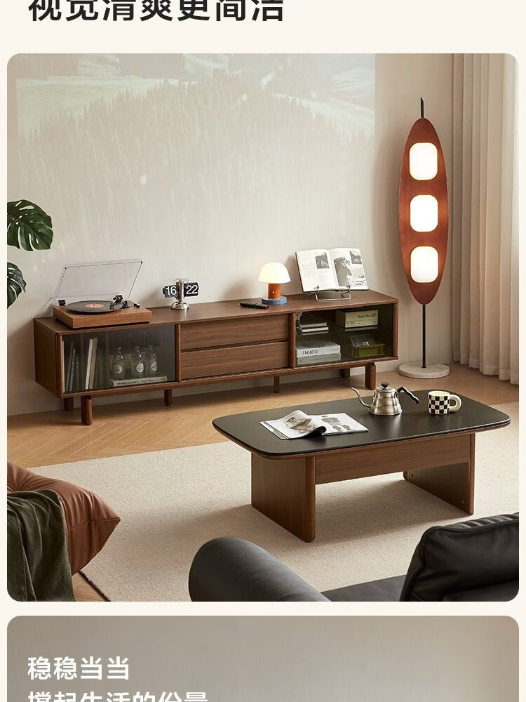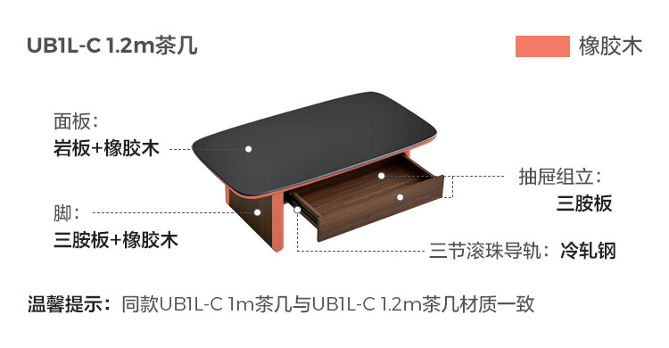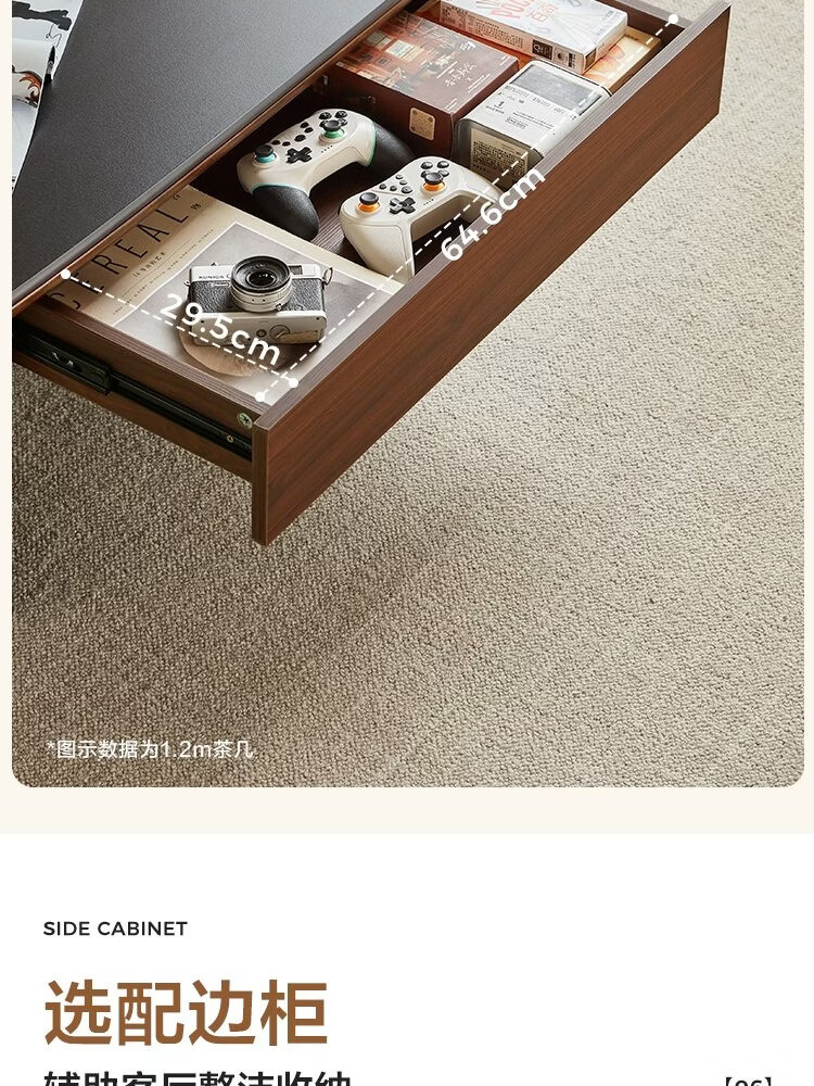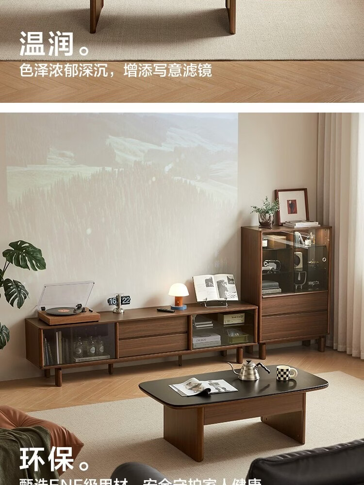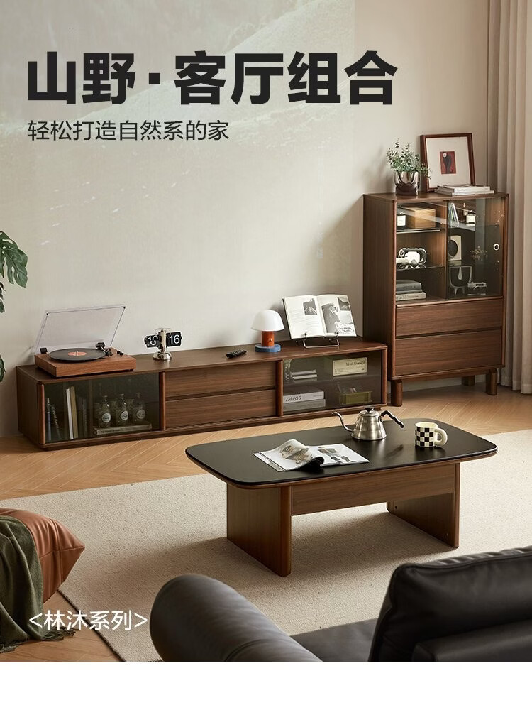 Lin's home TV cabinet living room light luxury high-end slate coffee table combination walnut color floor-standing medieval style Lin Mu series UB1M hot-selling 1.2m slate coffee table