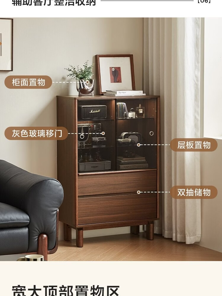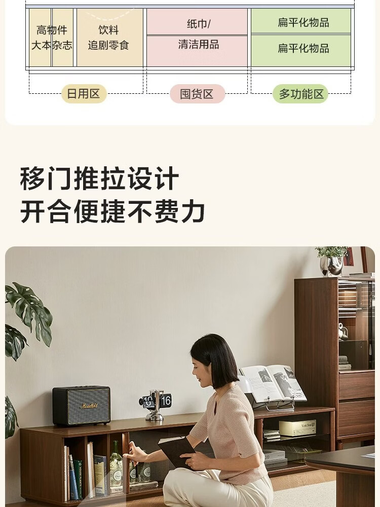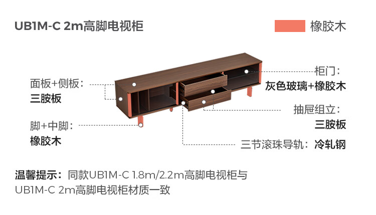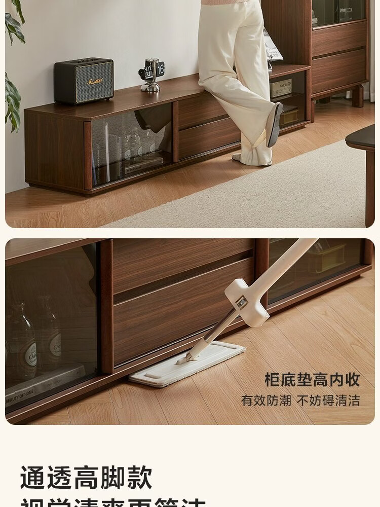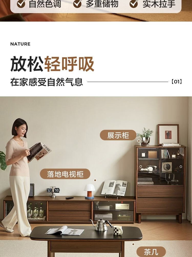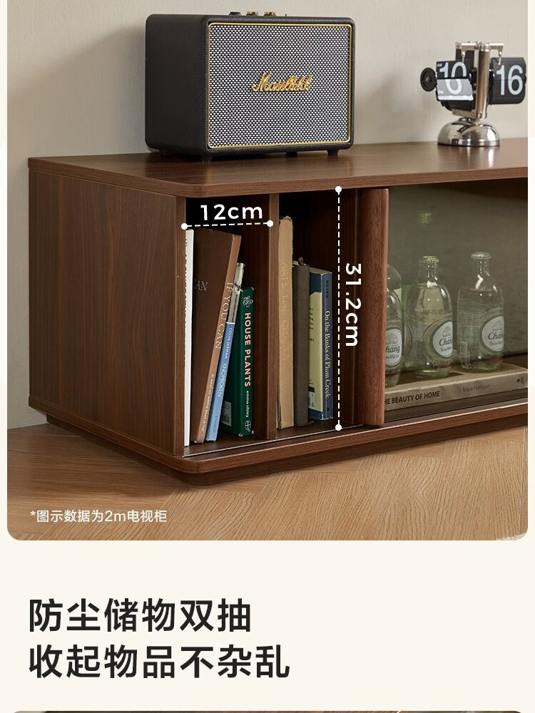 Lin's home TV cabinet living room light luxury high-end slate coffee table combination walnut color floor-standing medieval style Lin Mu series UB1M hot-selling 1.2m slate coffee table