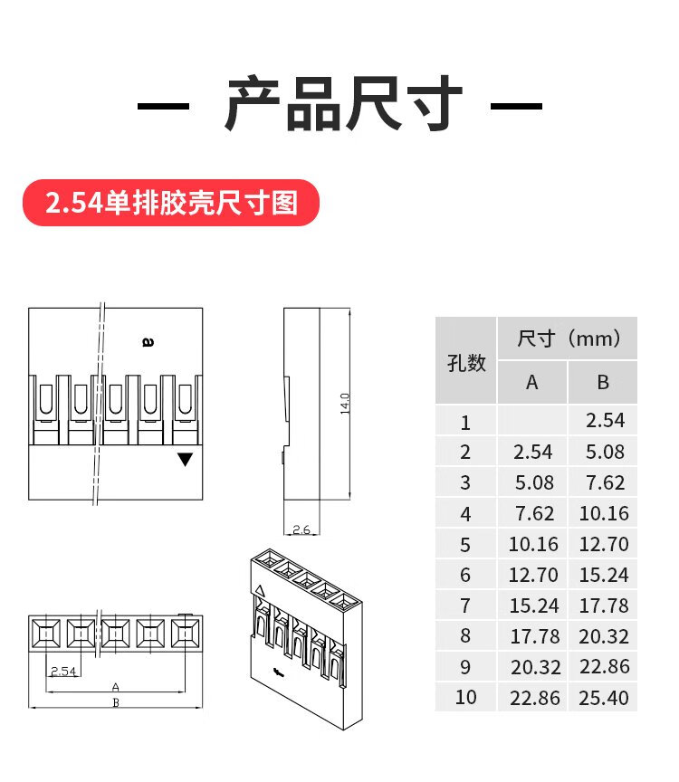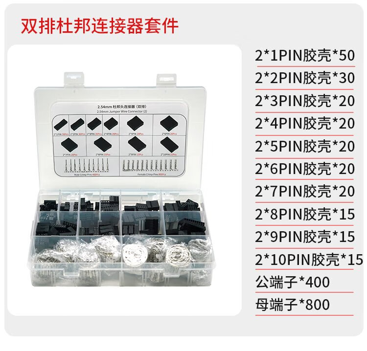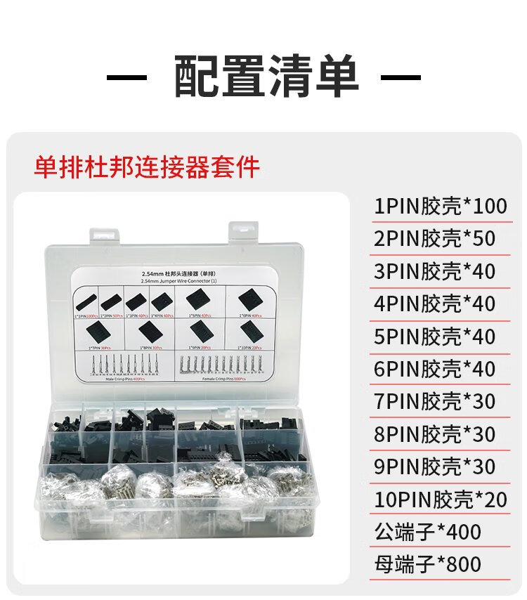 Throwing stones 2.54mm pitch Dupont line plastic shell jumper connector kit Dupont shell 1~10P male and female terminal block combination single row plastic shell kit 1 box