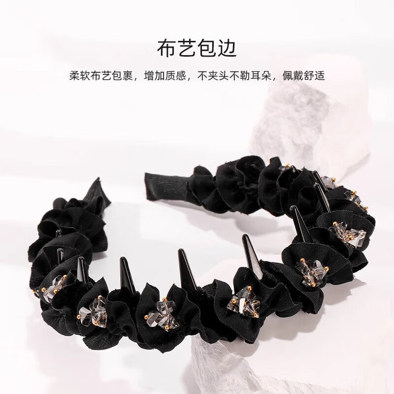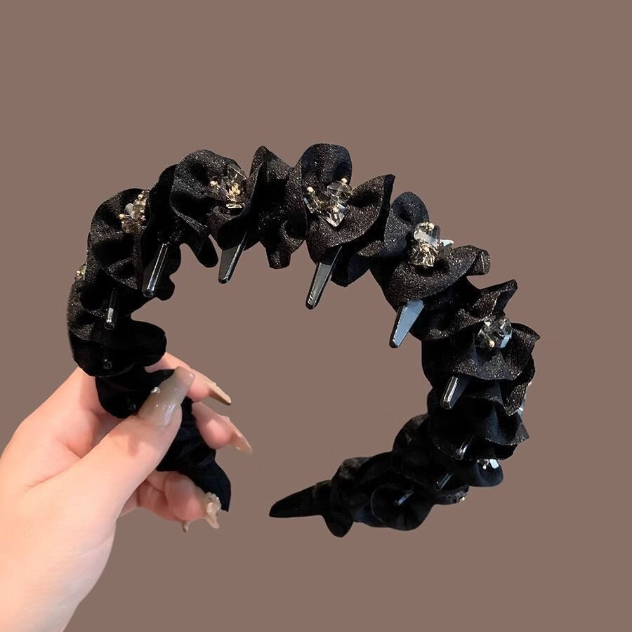 Princess Ella's fungus-edged headband wrapped around the top of the head to show volume and wavy hair, new temperament headband, women's hair accessory 1 Fungus-edged headband, crystal style
