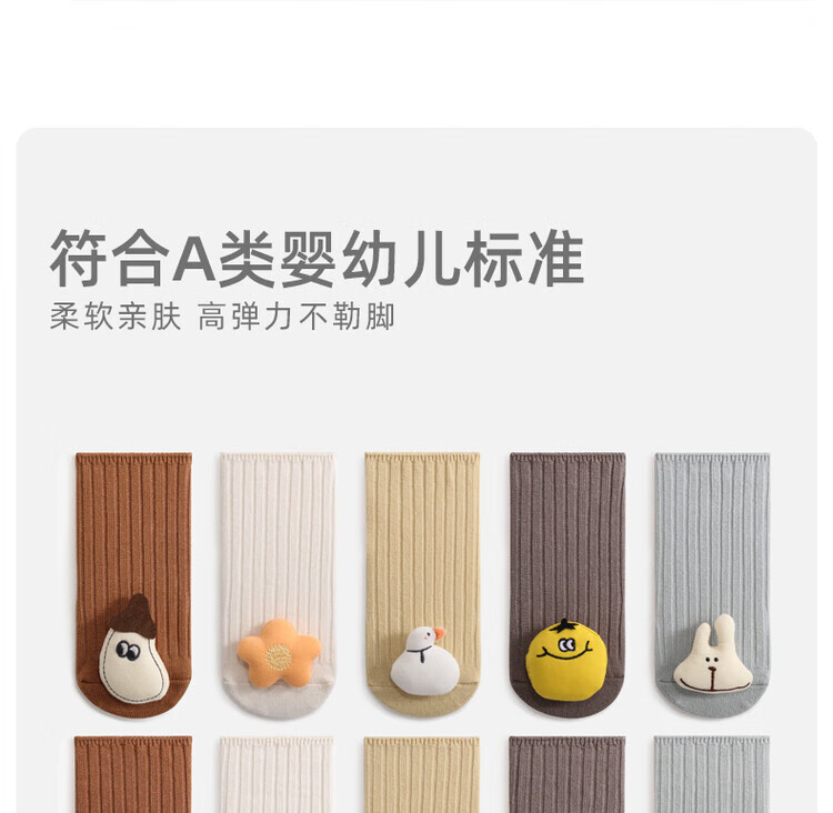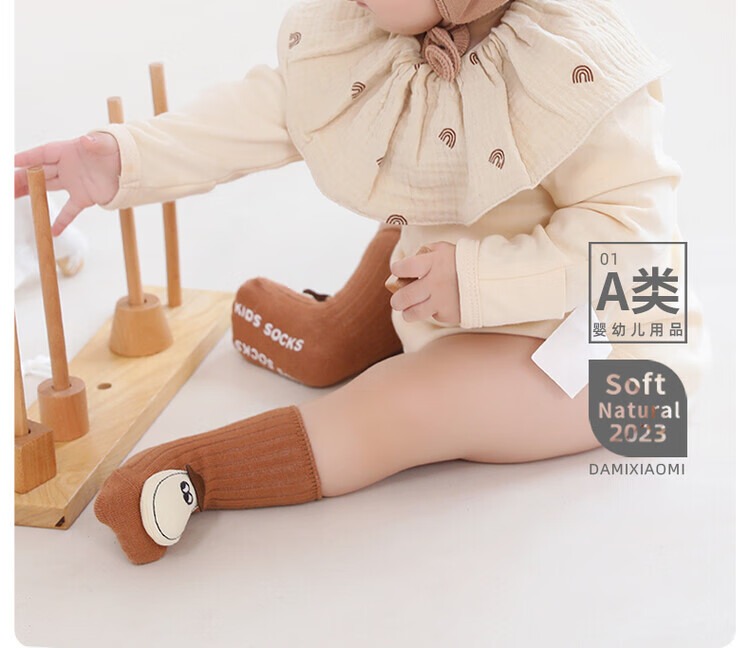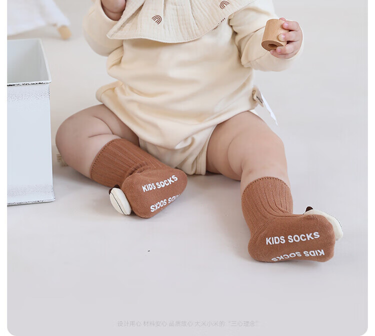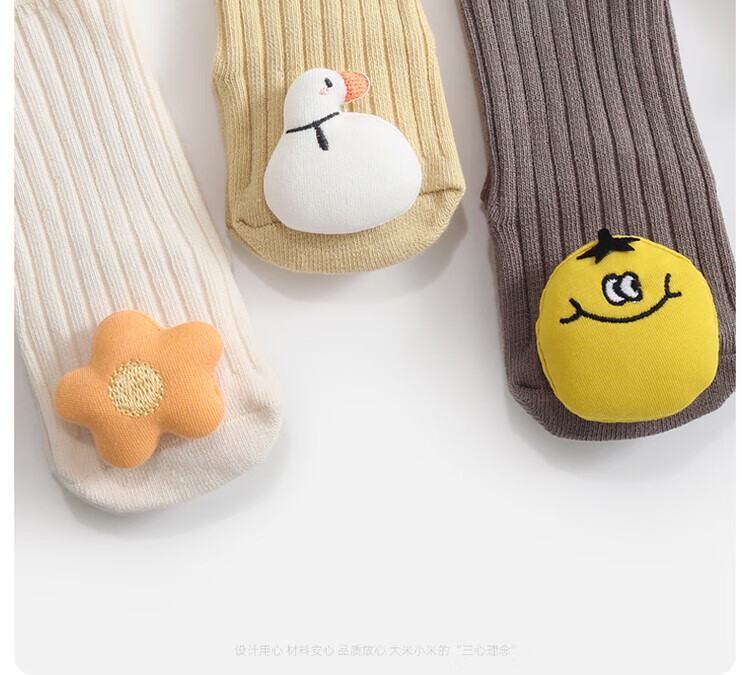 Newborn baby socks, spring and autumn baby mid-calf socks, floor socks, non-slip, loose mouth, cute cartoons, 0-6 to 12 months, 1 year old, 3 pairs (beige/blue/grey), 6-12 months, S size, suitable for feet 9-12cm long