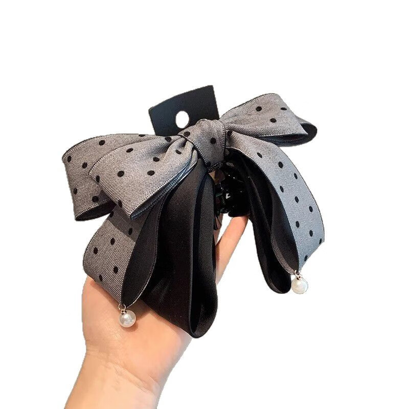 New Korean style gray polka dot bow hairpin with elegant ponytail hair accessory showing hair volume hairpin headgear 1 gray polka dot ponytail clip 4cm bottom clip