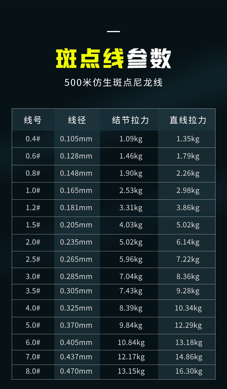 Zhizunfang 500-meter imported spotted fishing line main line genuine super-strength sub-line sea pole lure special nylon fishing line color-changing soft spotted main line 500 meters No. 8.0