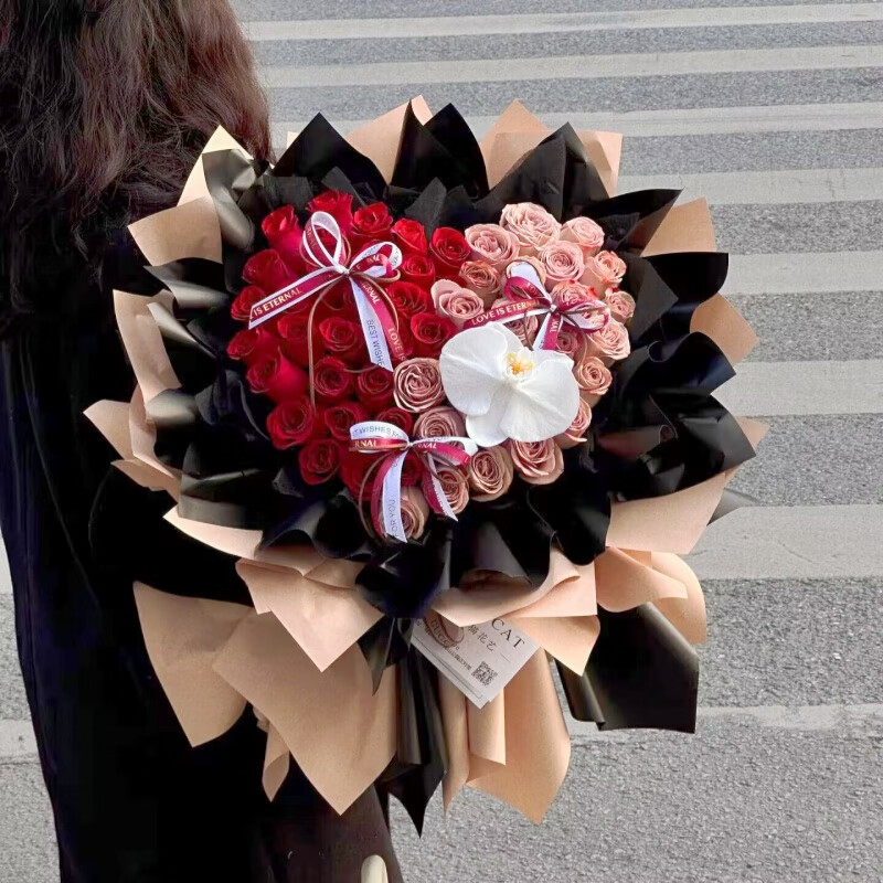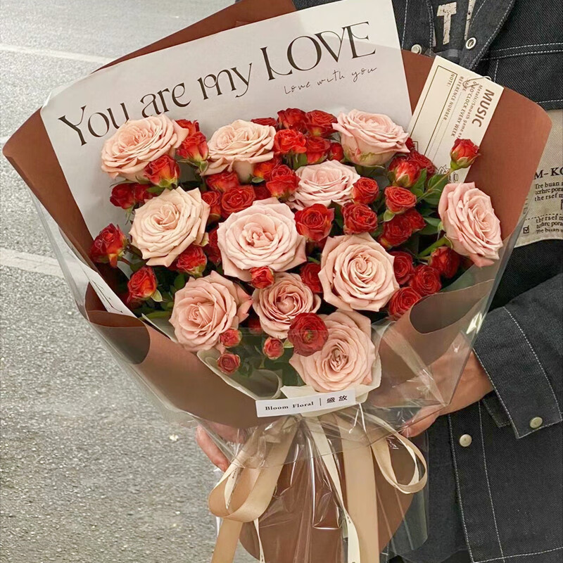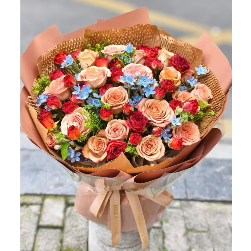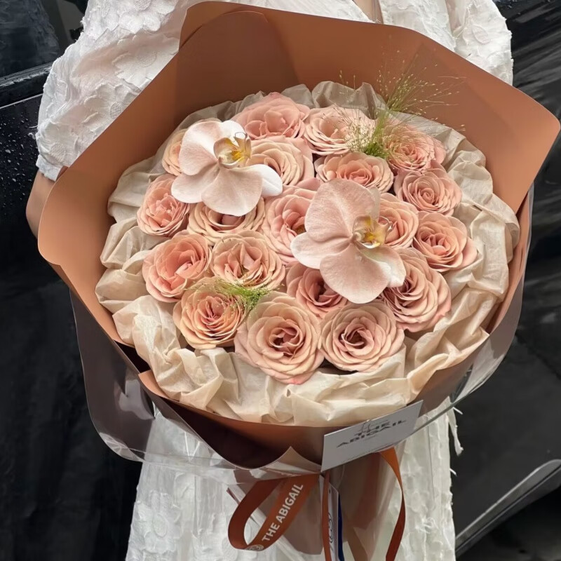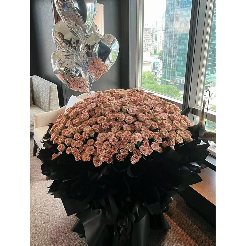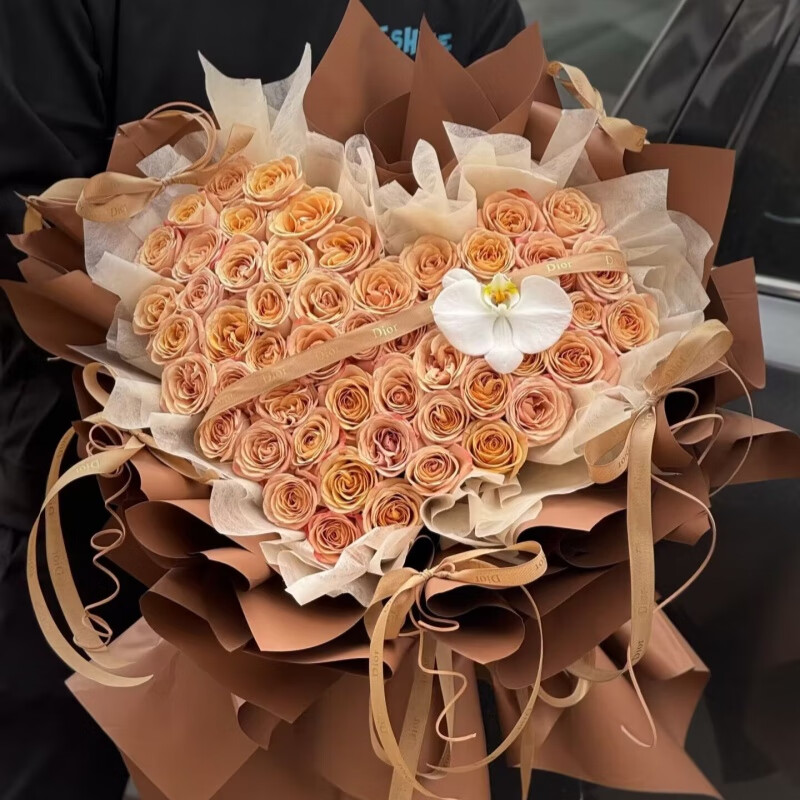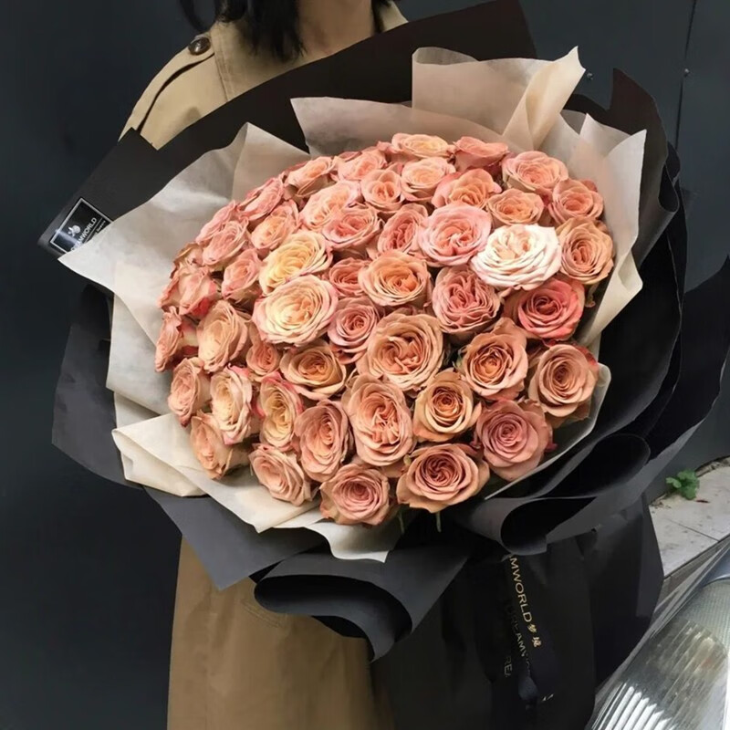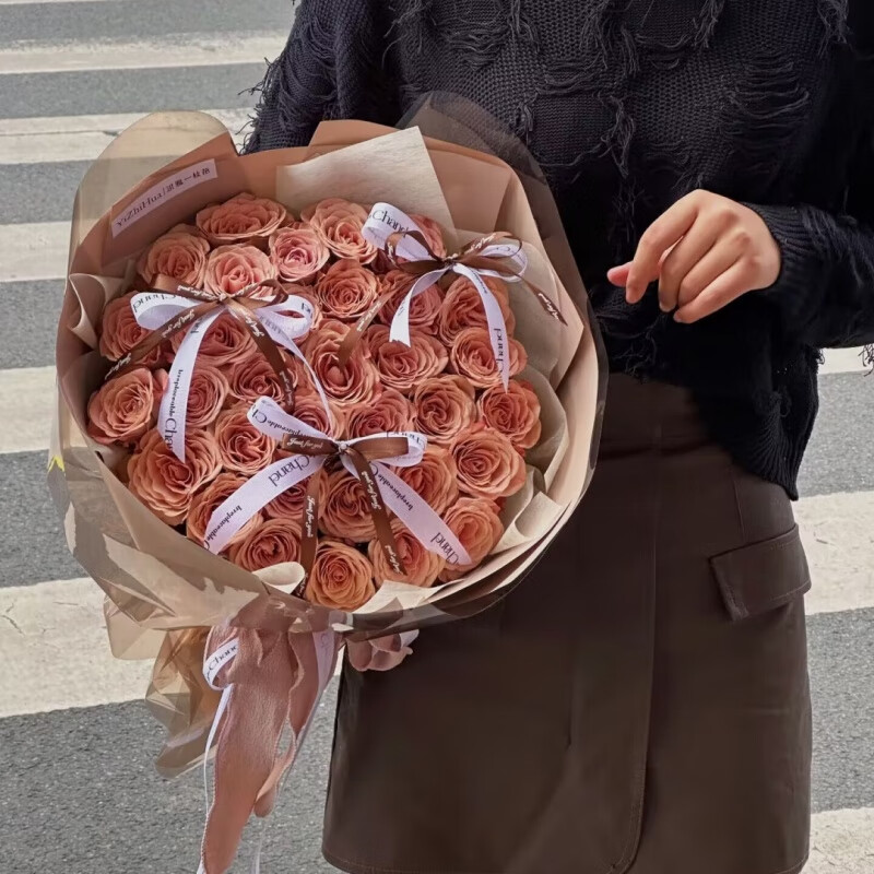Hua and Qianxun Flower Gift Cappuccino Rose Bouquet for Girlfriend and Wife’s Birthday Gift Flowers Delivered Nationwide in the City 99 Cappuccino Bouquets + Teddy Bears Delivered in the City Supports Appointment Dates