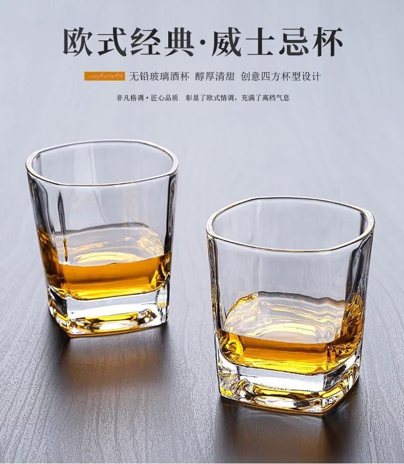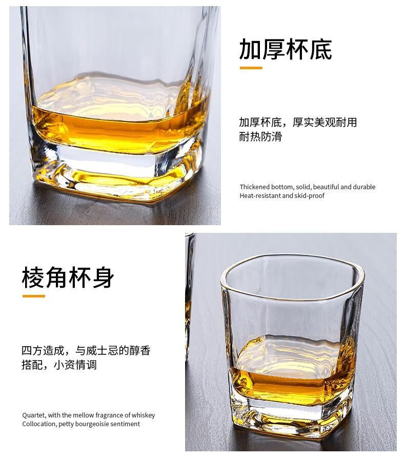 Square glass household hospitality cup drinking water green tea cup juice beer cup heat-resistant high-end glass tea cup square cup 160ml 4 pieces
