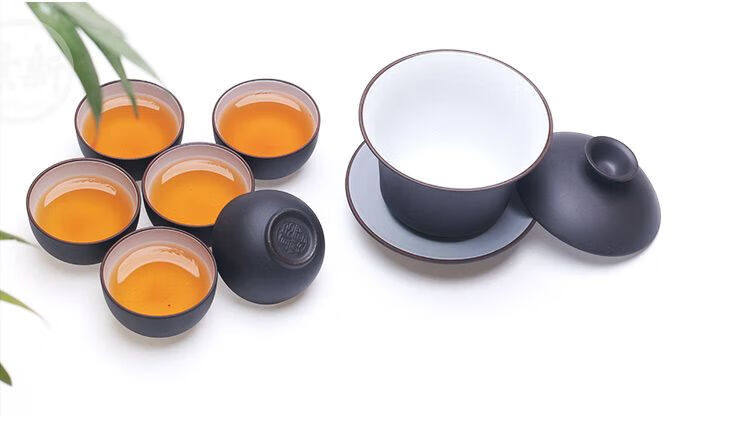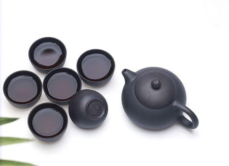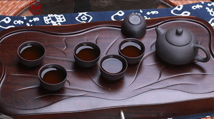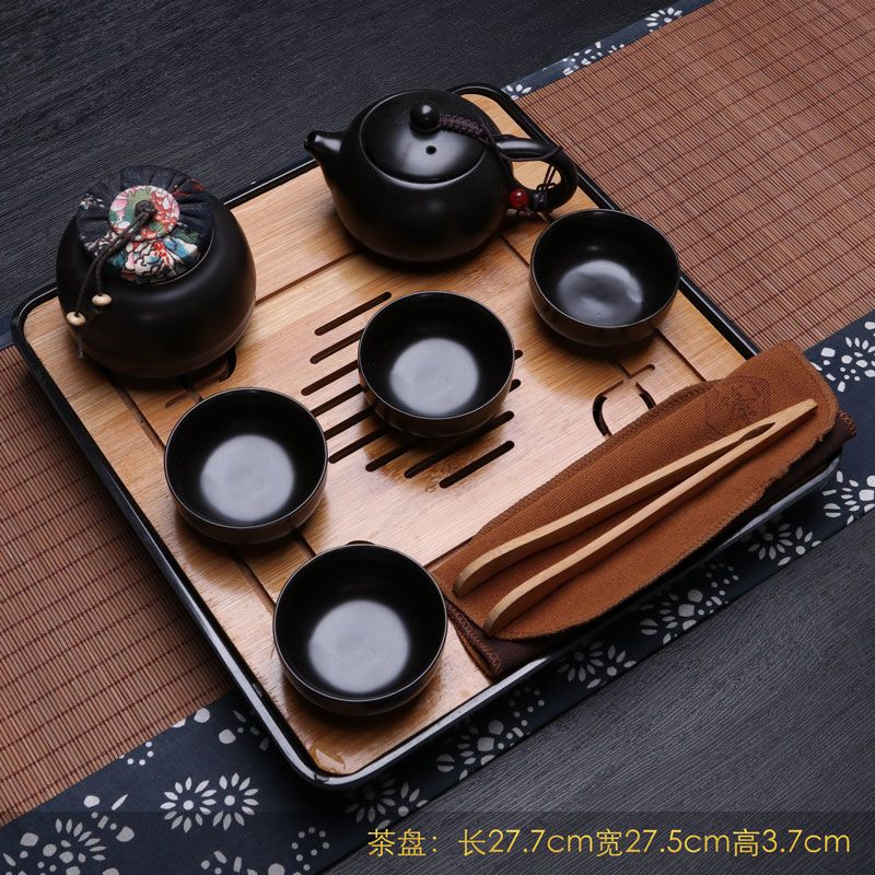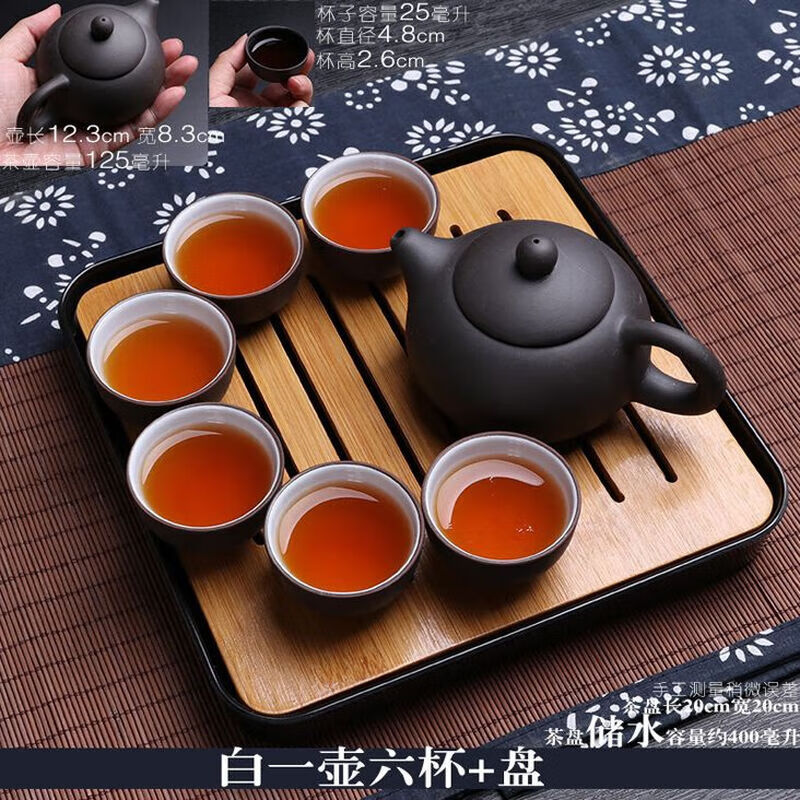 Zisha Kung Fu Tea Set Small Set Dry Infusion Plate Teapot Cover Bowl Cup Tea Tray Home Convenient to Carry Complete Set for Travel Bamboo Square Plate Comes with One Pot and Four Cups