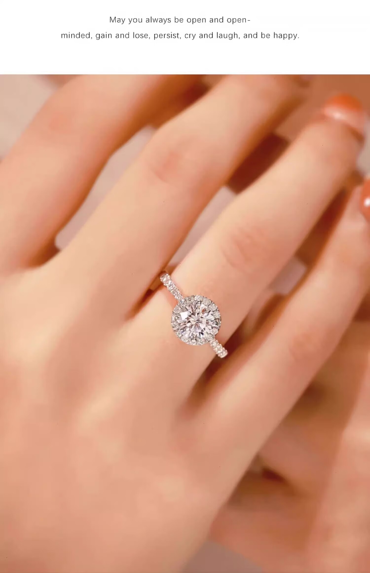 Moissanite ring for women, 1 carat round bag, proposal, wedding, Chinese Valentine's Day gift to wife, sterling silver, platinum-plated pt950 ring, light luxury model - round bag 50 points - rose gift box, default live mouth, closed mouth, note circle number