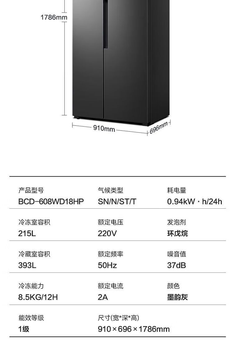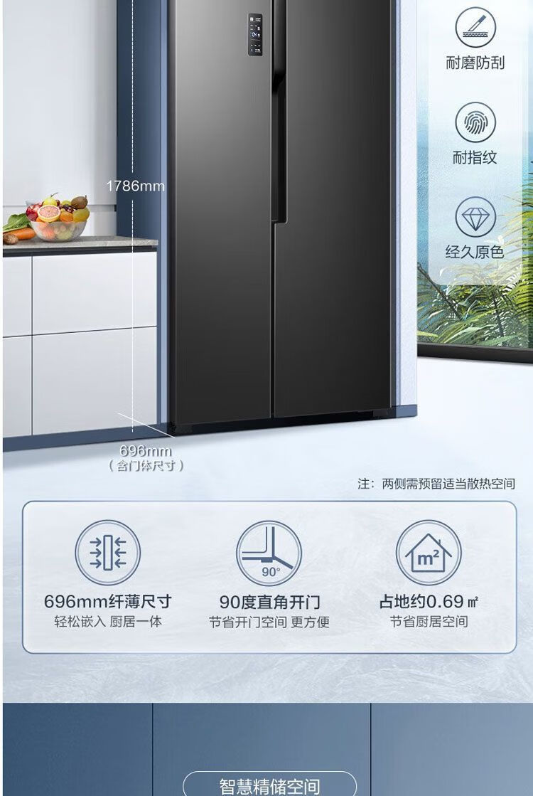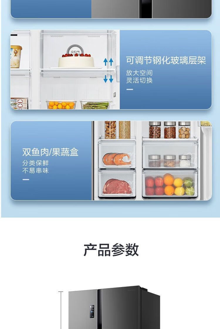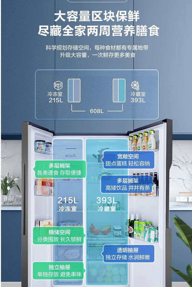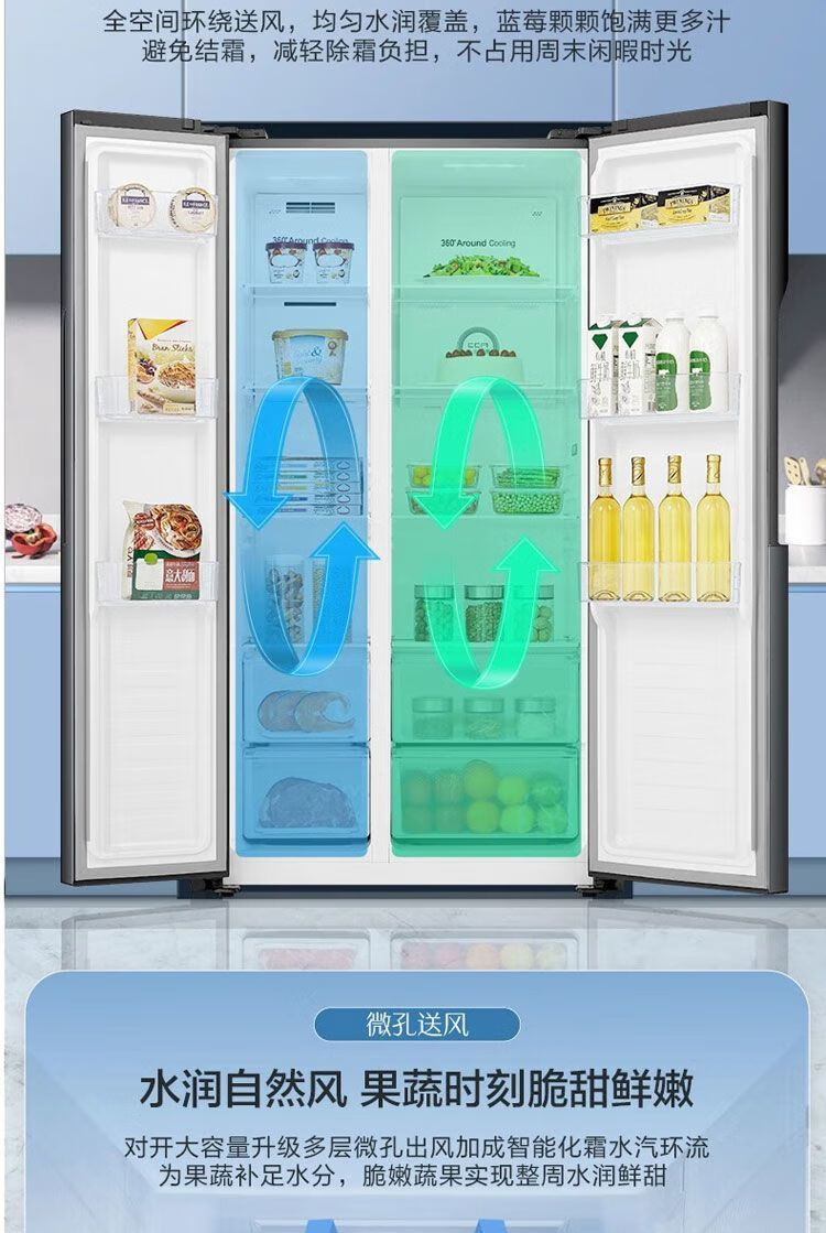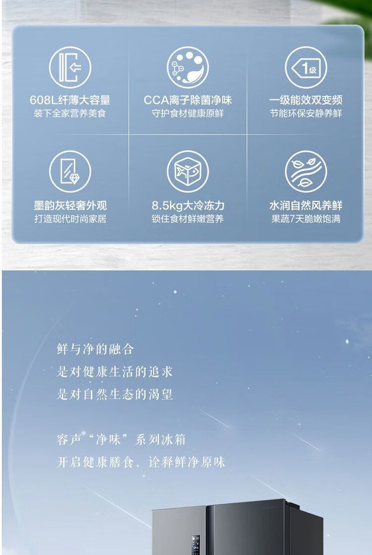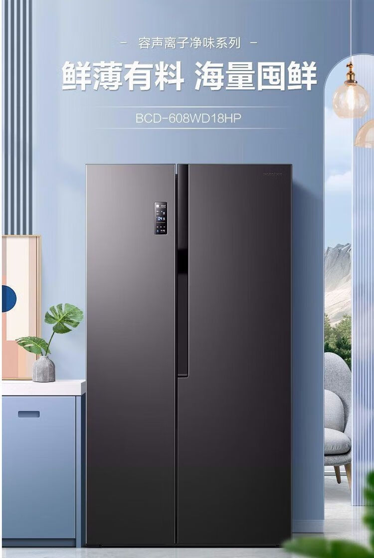 Ronshen first-class dual-frequency energy-saving side-by-side door odor-free air-cooled 608-liter frost-free refrigerator *pH18d fresh w806-CBD* ecological