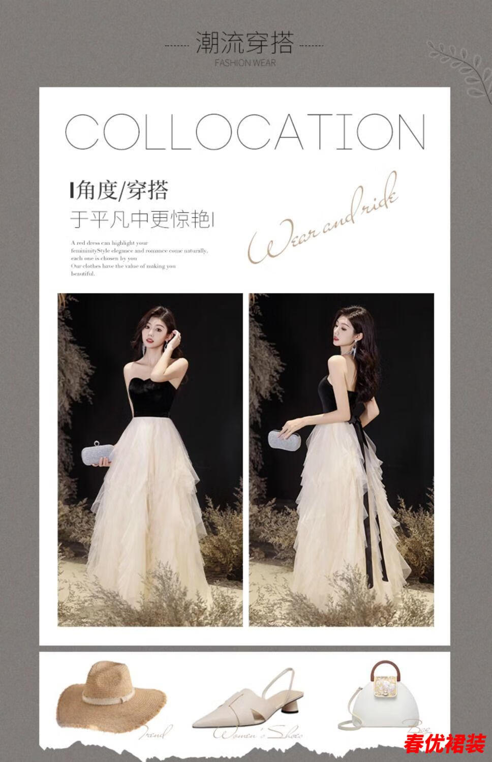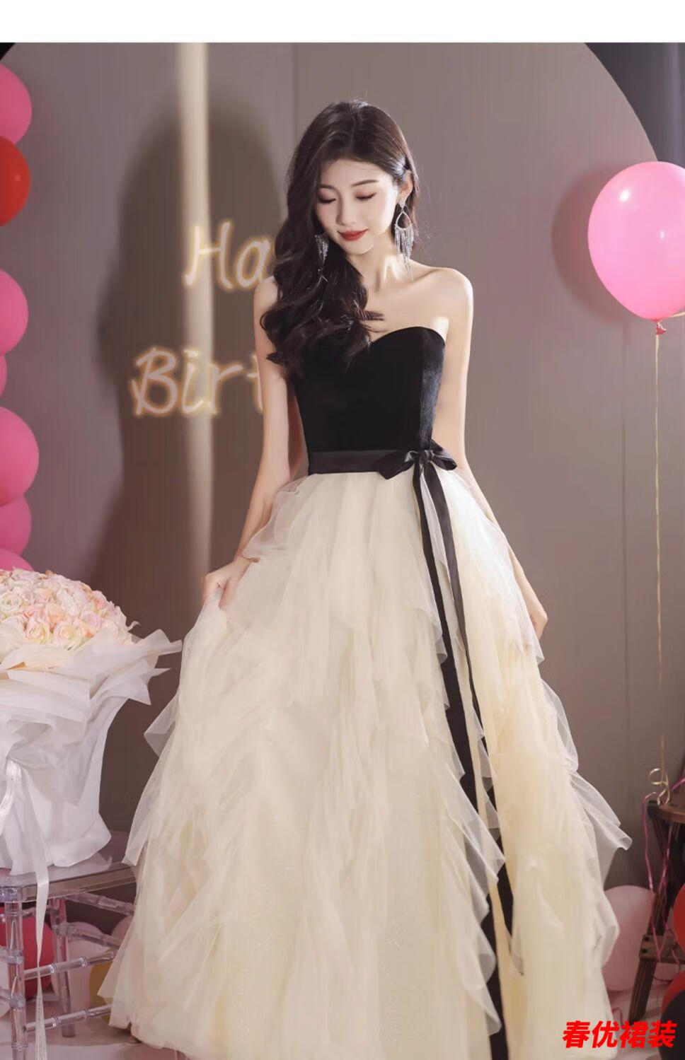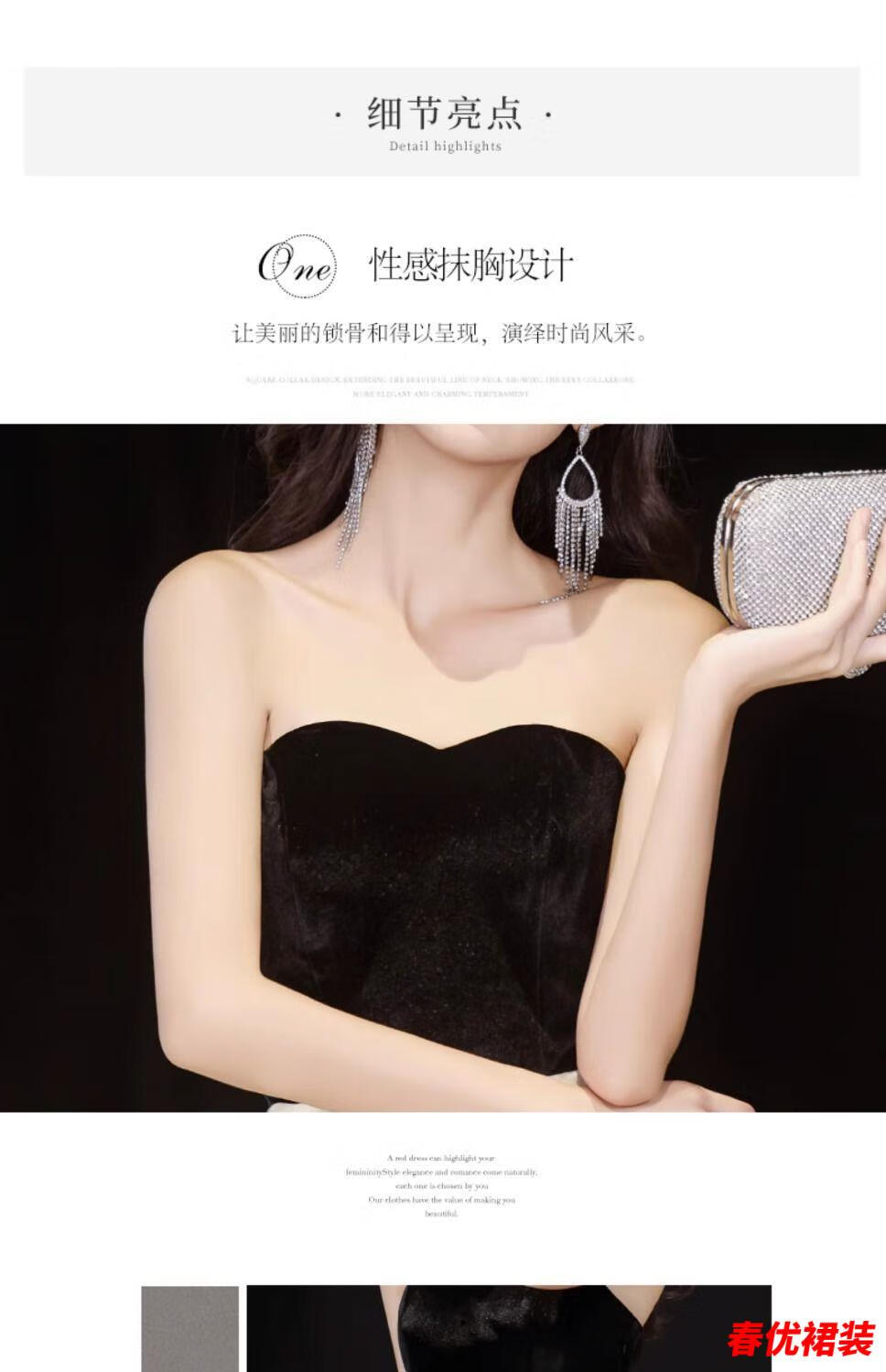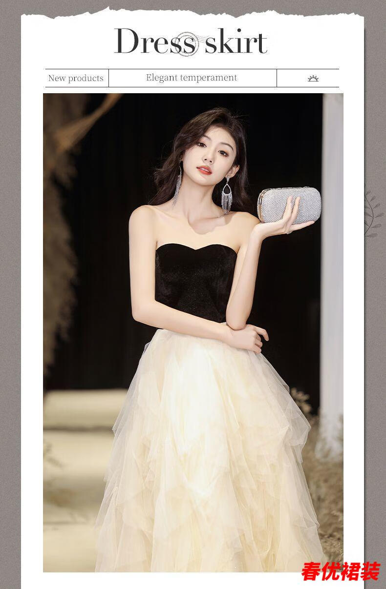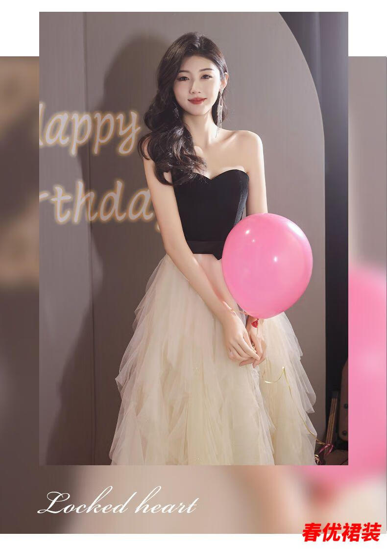 Bajintu Banquet Tubeless Evening Dress for Women New Style Birthday Art Exam Dress Light Luxury Niche High-end Annual Party Black S