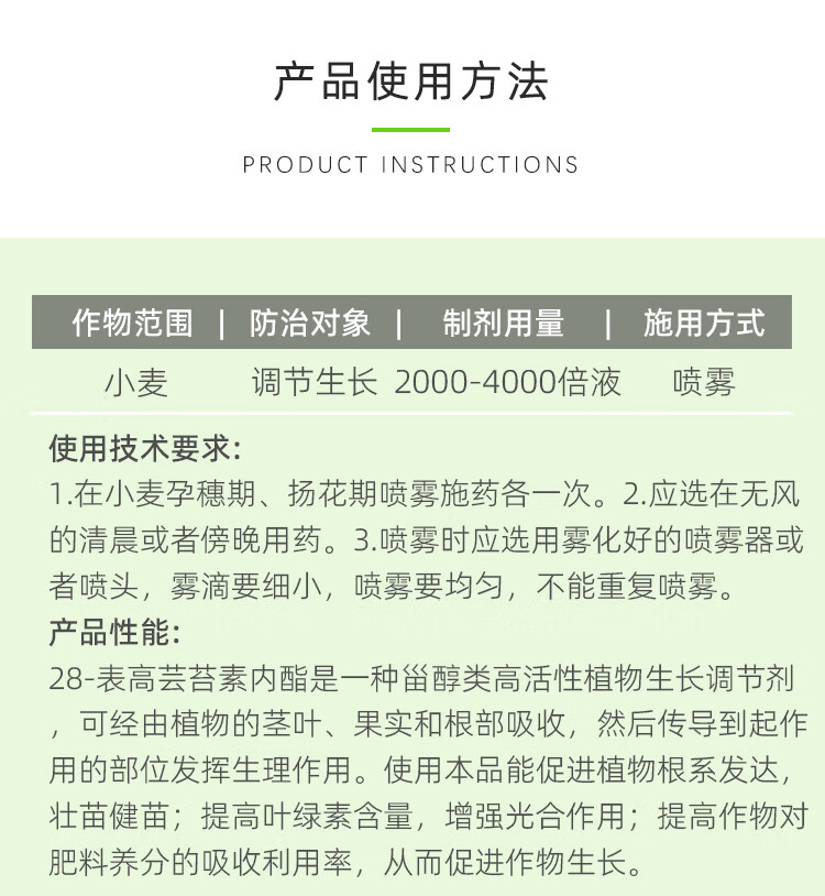 Zhongxin Ke Nong Shengya 0.01% 28-Epihigh brassinolide soluble agent wheat growth promotion plant growth regulator 10ml*100 bags