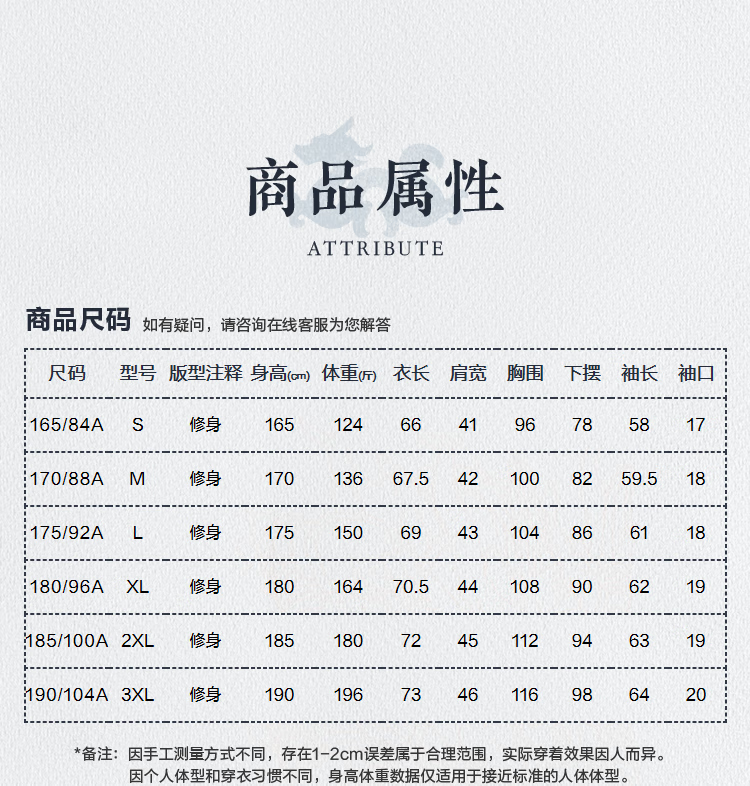 China (cm) 165 / 88-90 170 / 96-98 175 / 108-110 180 / 118-122 185 / 126-130