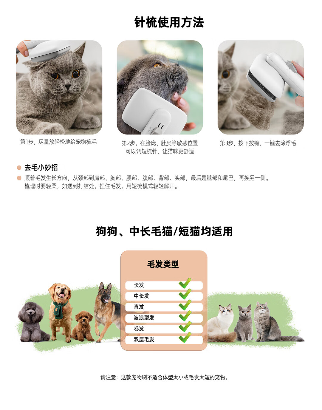 Mao Mi cat comb, special de-floating hair comb artifact, hair-pulling comb, needle comb for pets, long-haired cats, dogs, large and small dogs, length adjustment needle comb, one-click hair removal