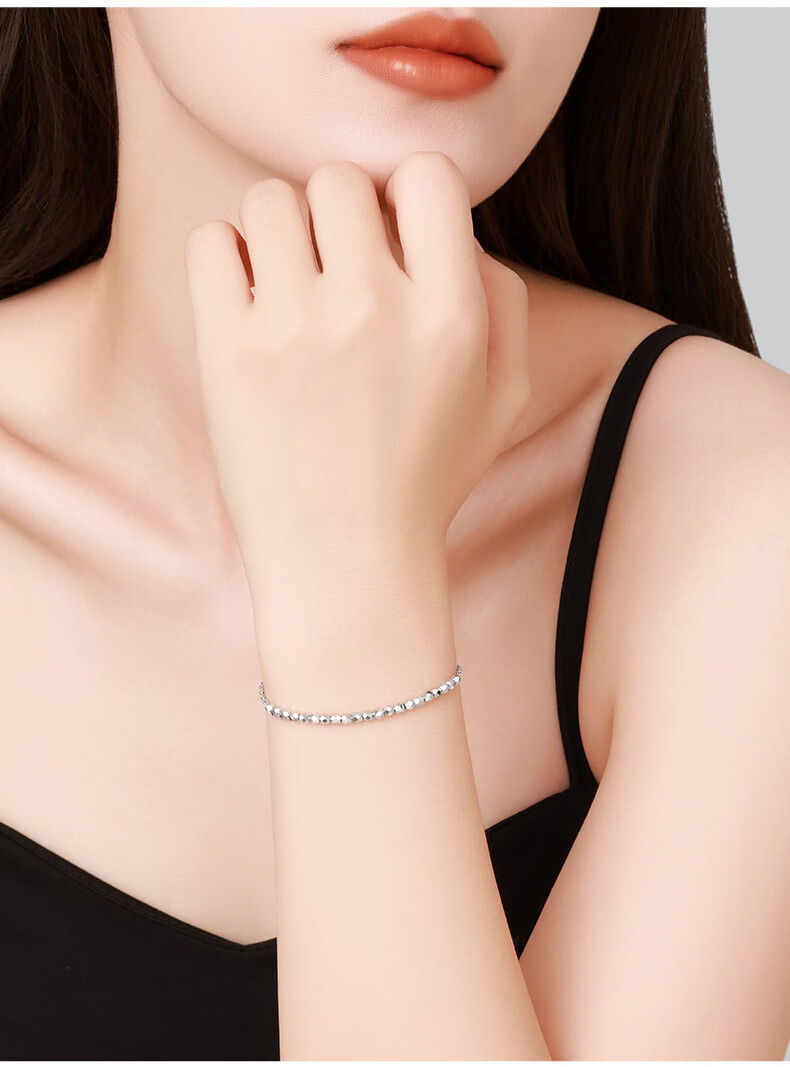Chao Acer Explosive Blonde Beads Platinum Bracelet Women's PT950 Hand Jewelry Stacked High-Level Gift Priced at 380 Yuan 4.15g, Chain Length Approximately 16cm + Tail Chain