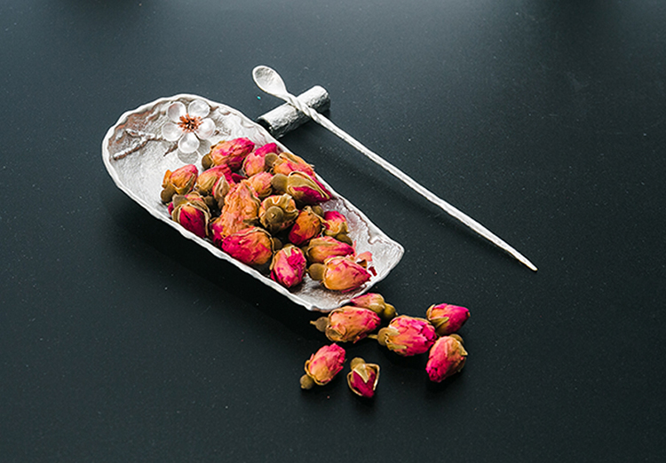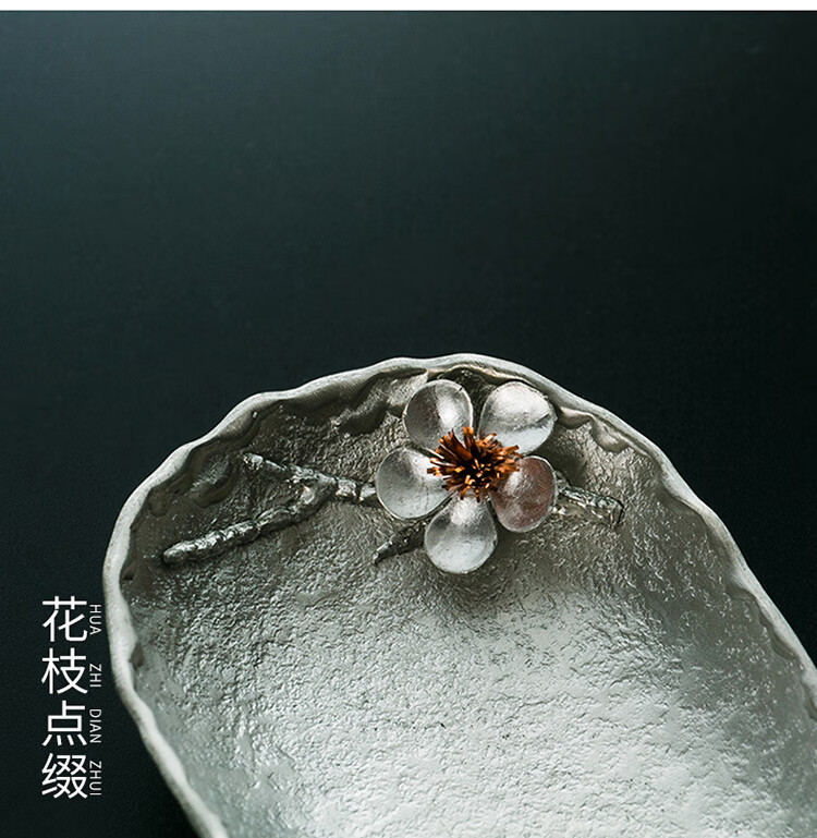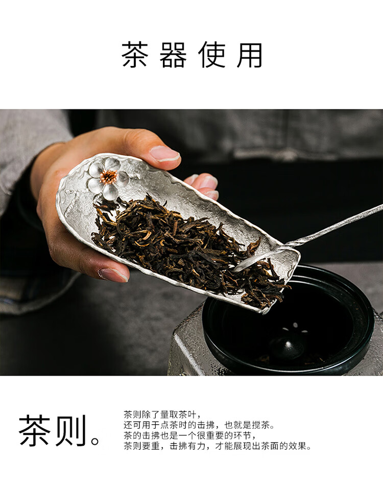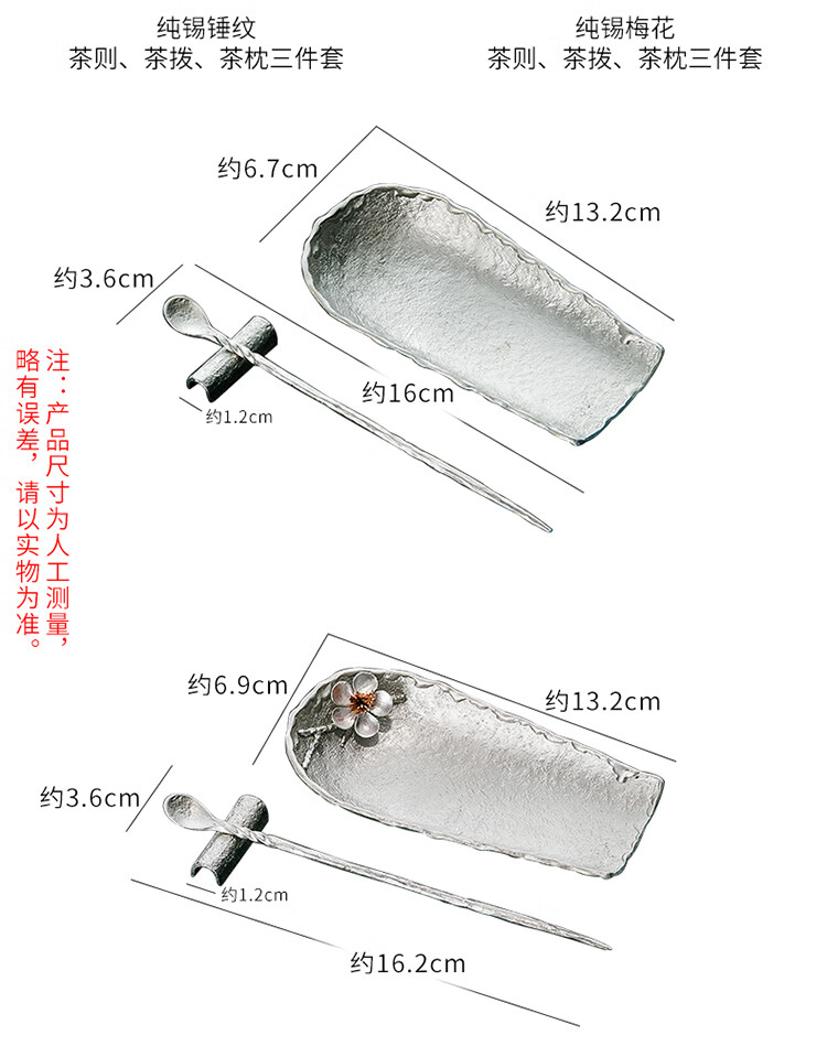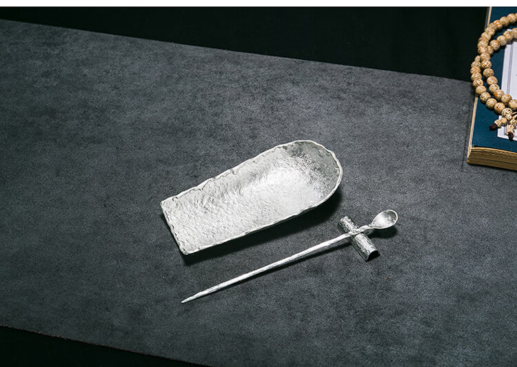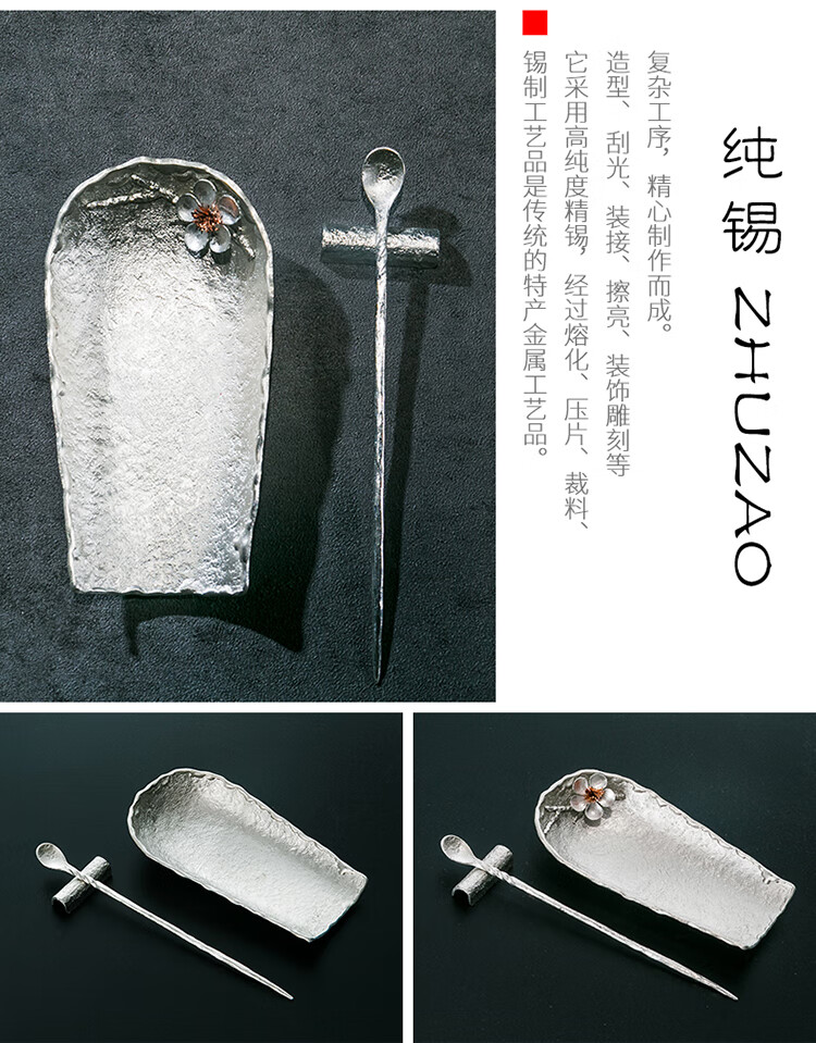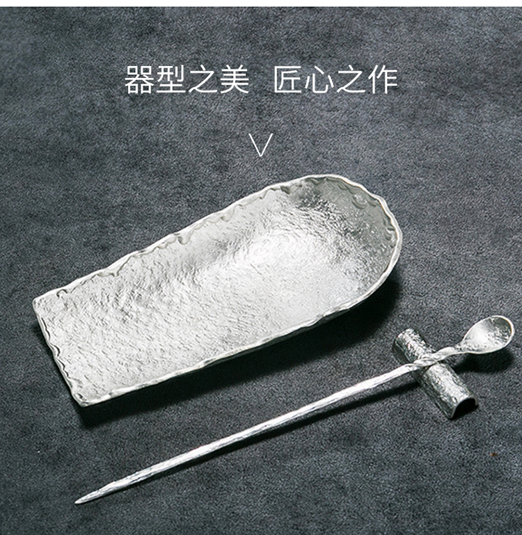 Rongshantang mountain wood pure tin tea set handmade hammered pattern tea lotus tea spoon tea pillow tea dial tea spoon kung fu tea set accessories old copper tea set - Pingchuan