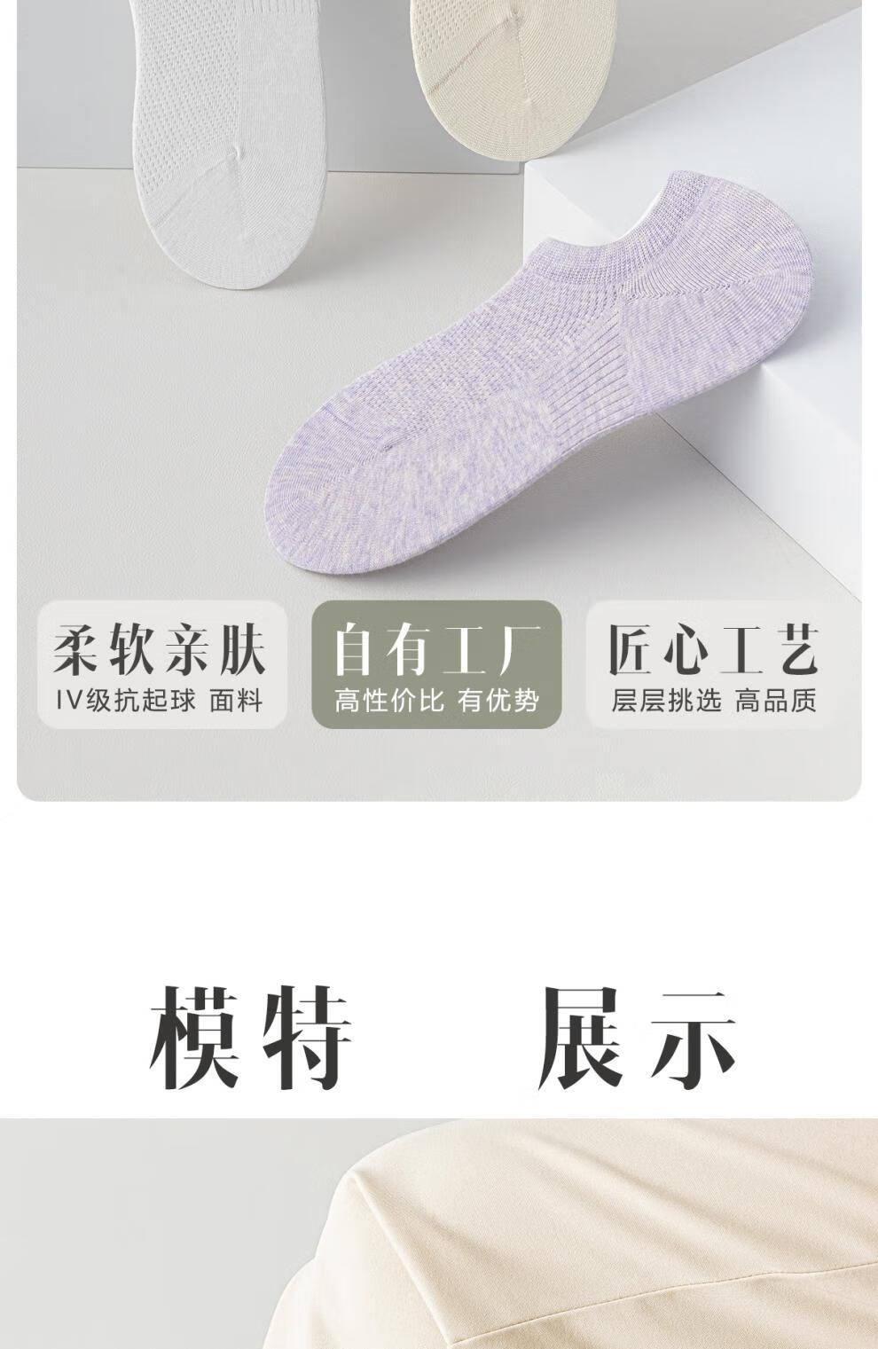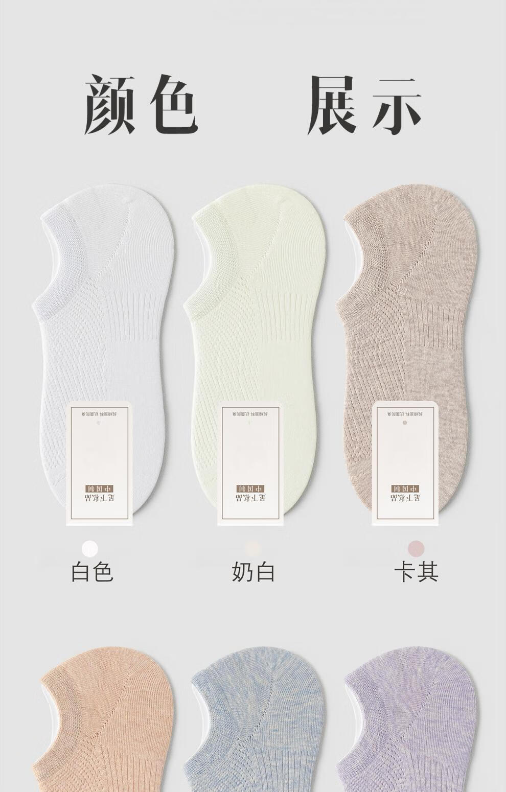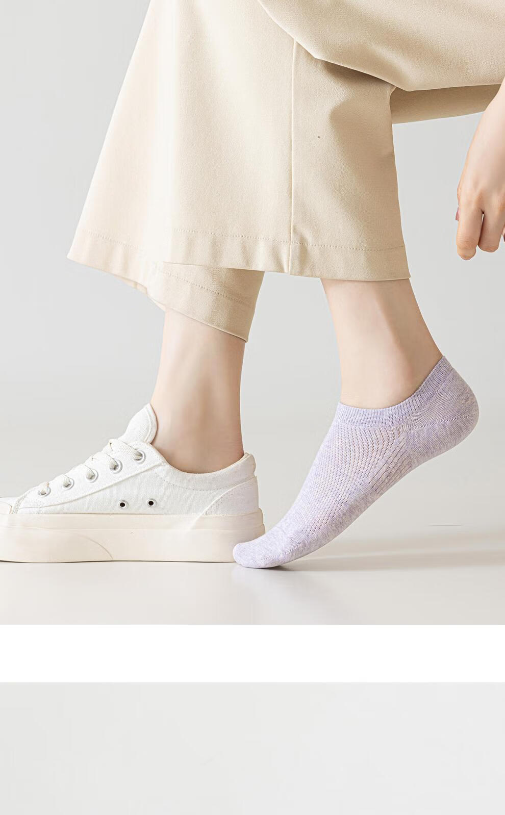 Japanese MUJU women's boat socks summer pure cotton boat socks mesh breathable cotton anti-odor non-falling shallow socks white khaki apricot light purple light gray green one-size-fits-all silicone anti-falling heels (6 pairs)