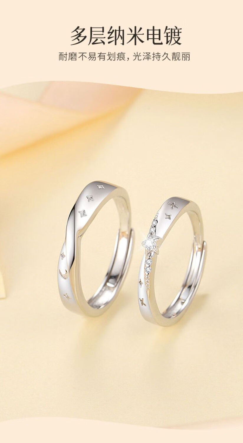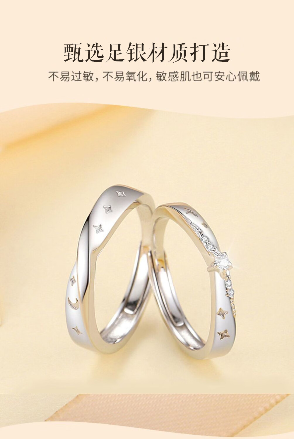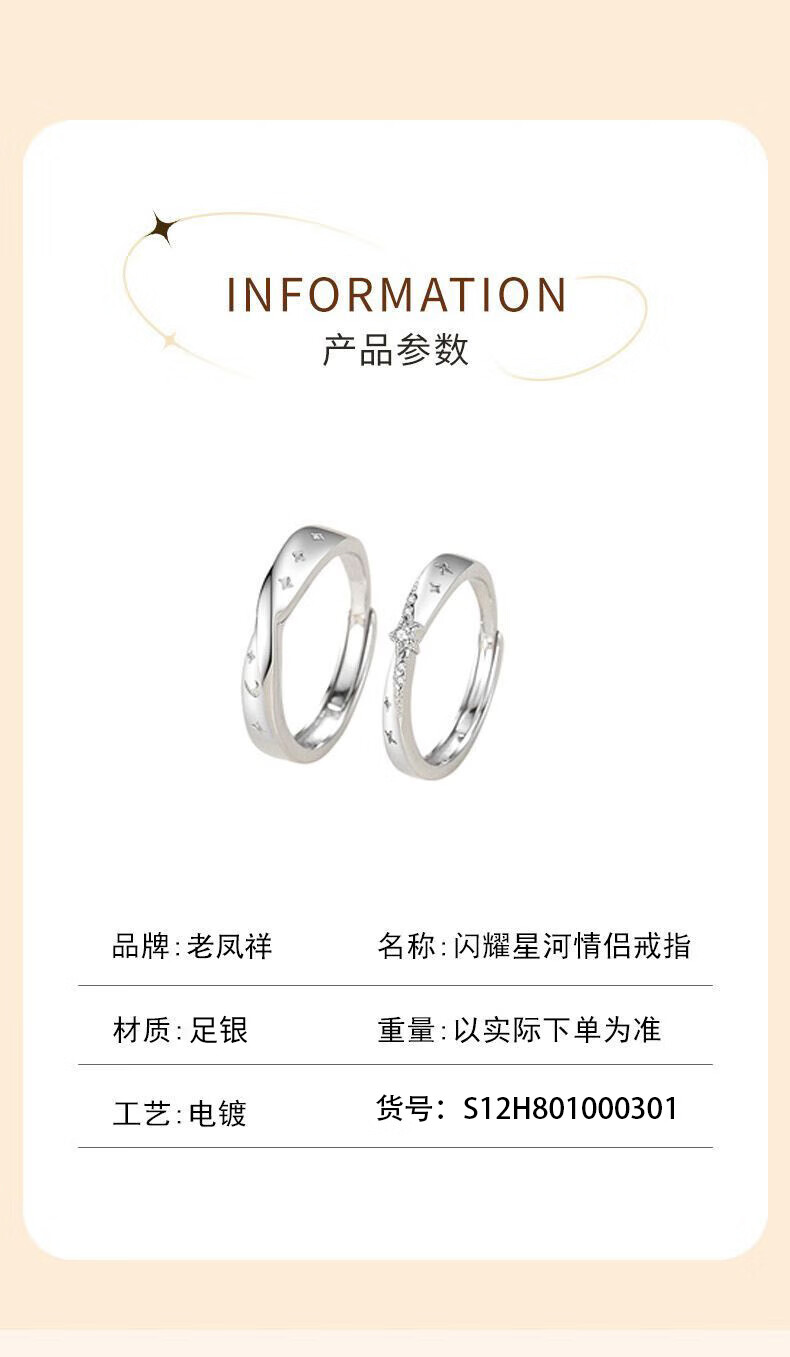 Lao Fengxiang's pure silver shining galaxy couple ring men's ring open ring Valentine's Day birthday gift for girlfriend and lover pure silver shining galaxy couple ring couple style
