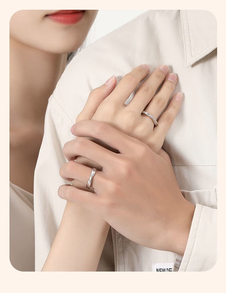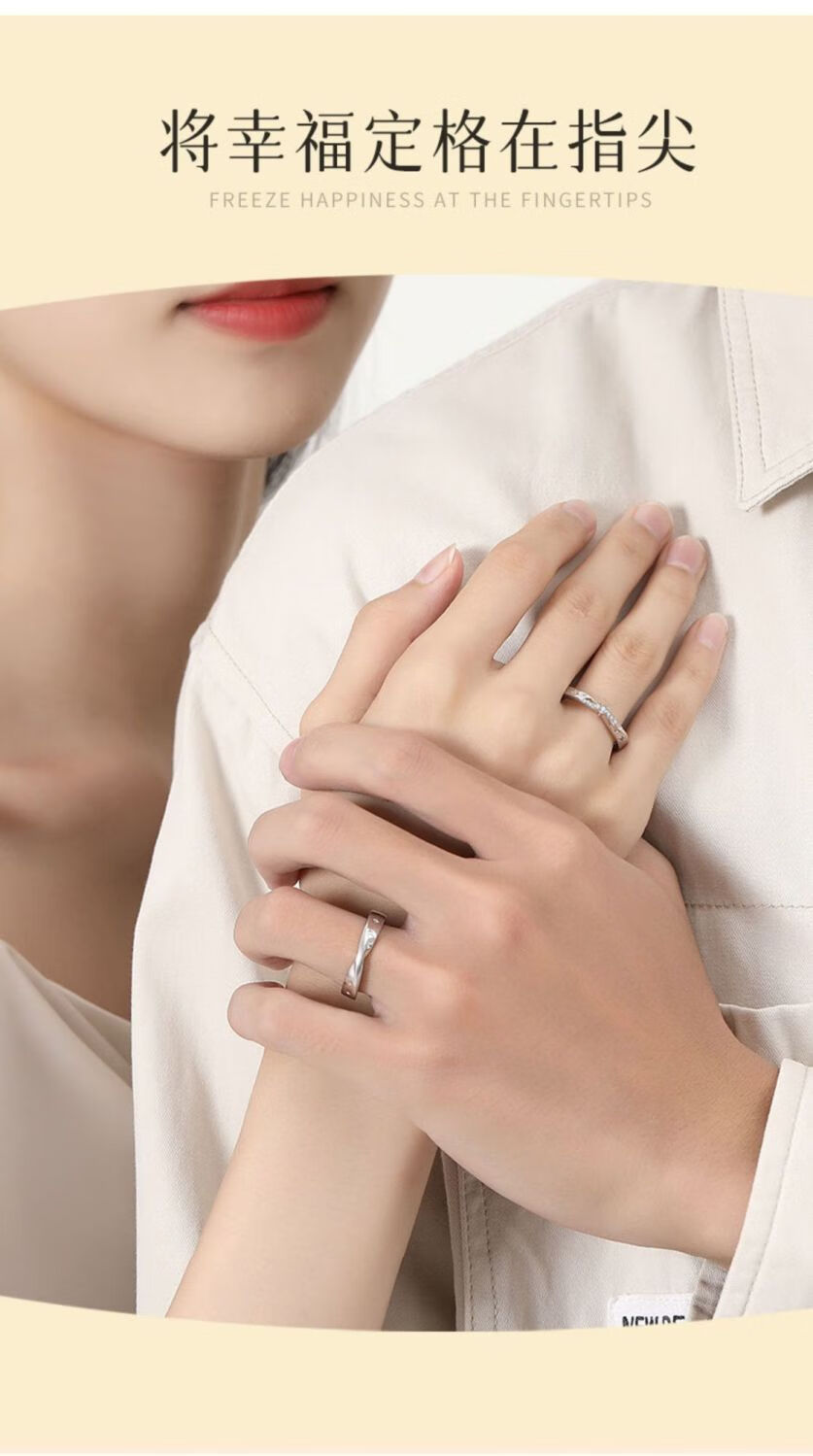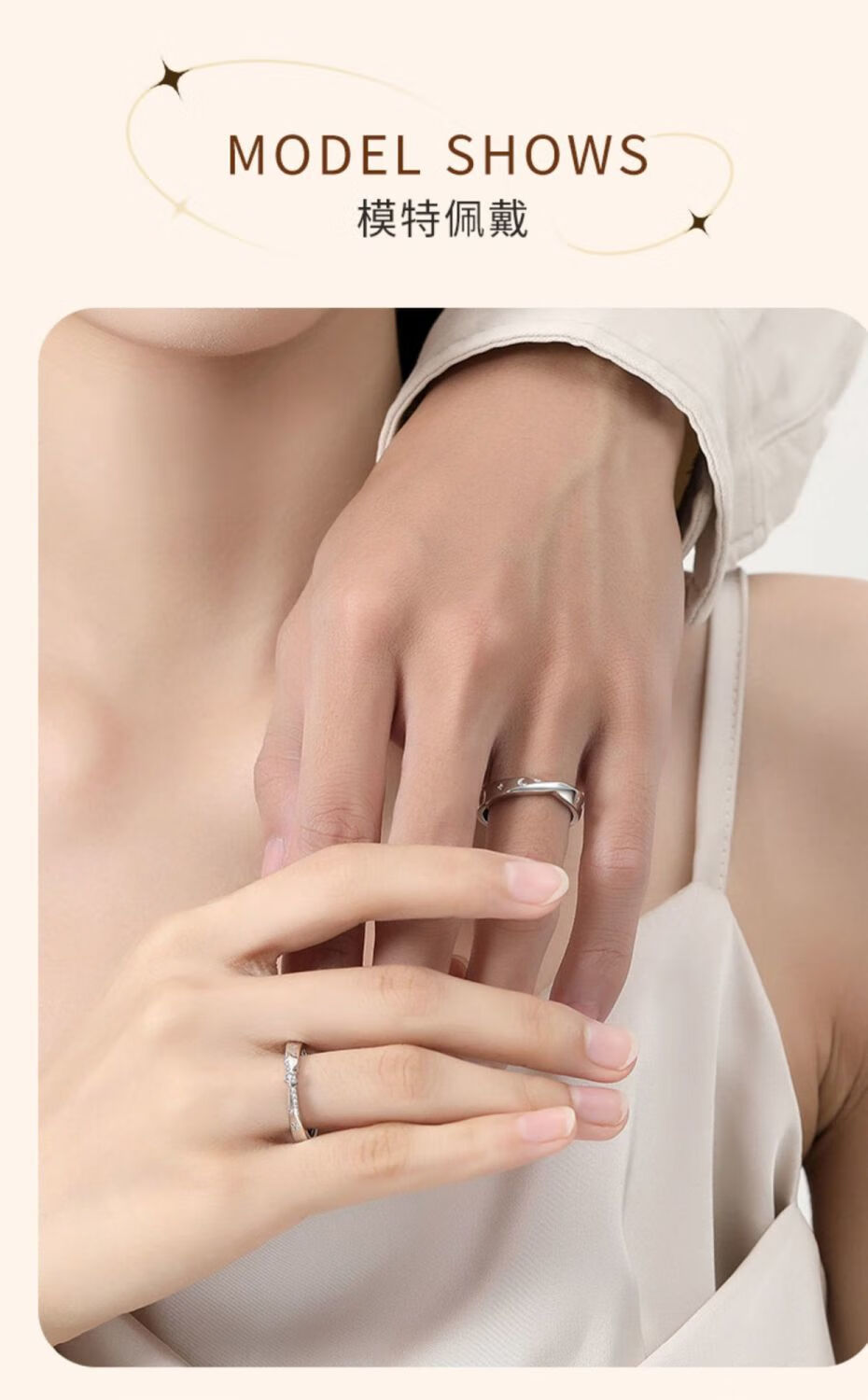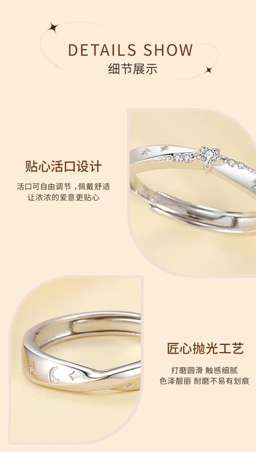 Lao Fengxiang's pure silver shining galaxy couple ring men's ring open ring Valentine's Day birthday gift for girlfriend and lover pure silver shining galaxy couple ring couple style