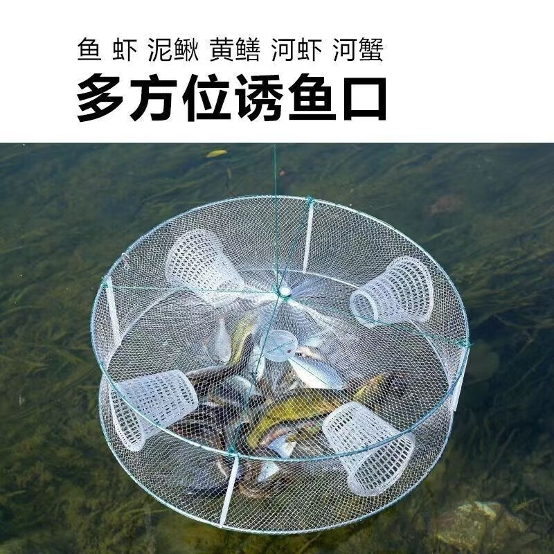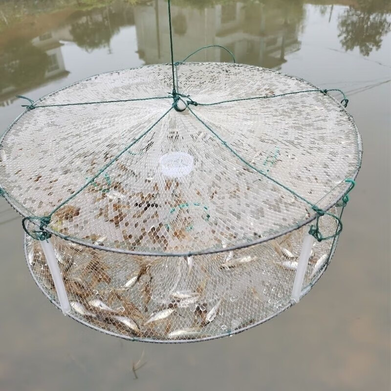 Shushe Shop 4-hole white small fish and shrimp pot specializes in catching small fish and shrimp net fishing gear round fish pot can be sent by post, diameter 33 cm, 4 ropes