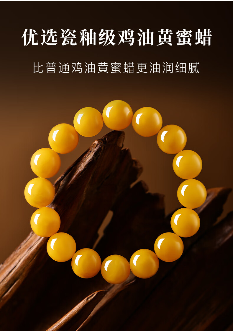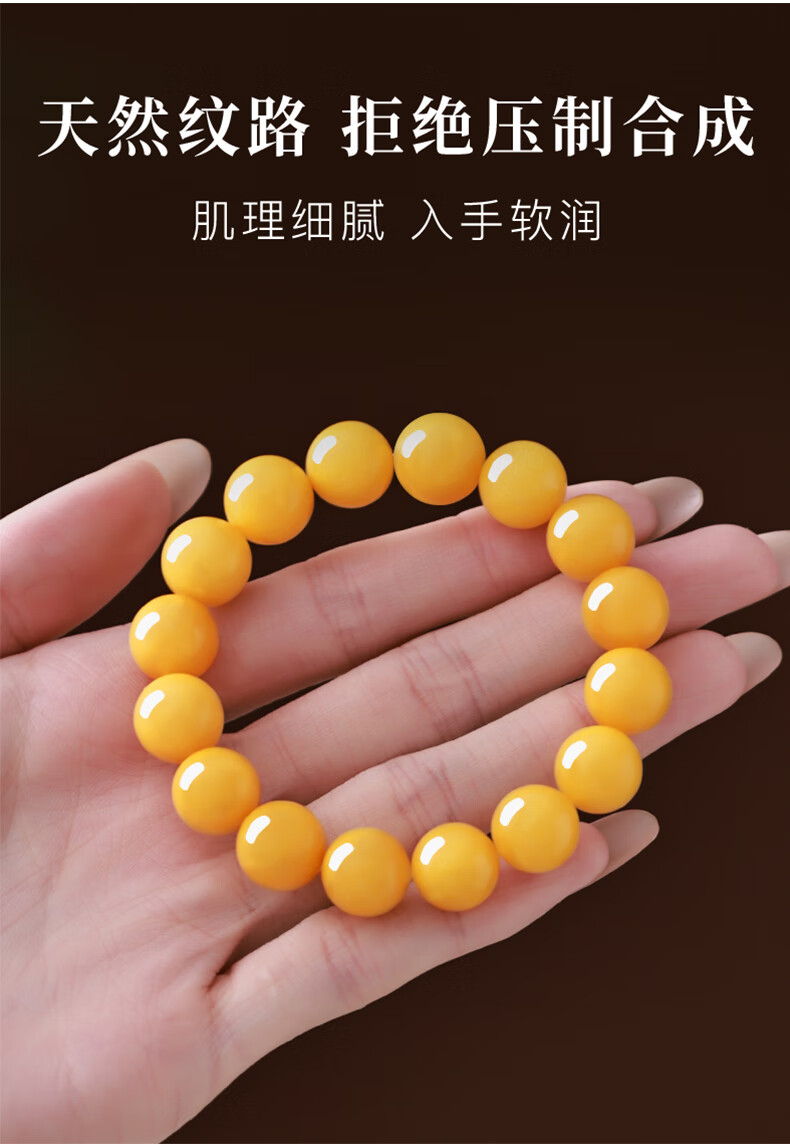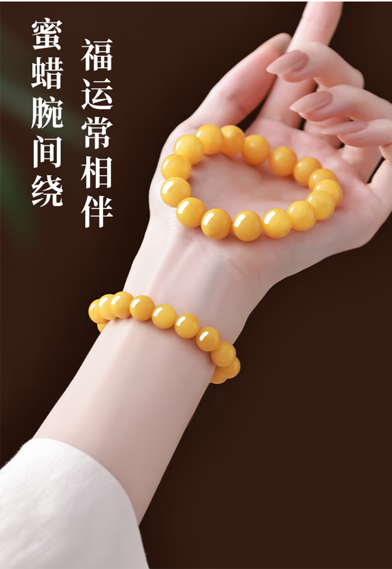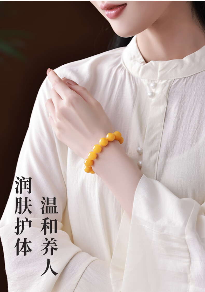 Yavani Natural Beeswax Bracelet Women's Russian Material Chicken Fat Yellow Transfer Single Circle Bracelet Niche Exquisite Mid-Autumn Festival Gift Chicken Fat Yellow Natural Beeswax-6mm