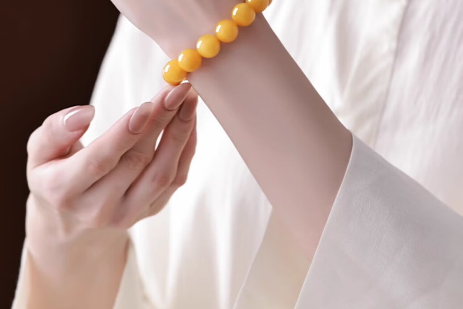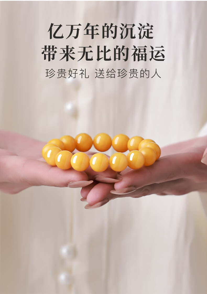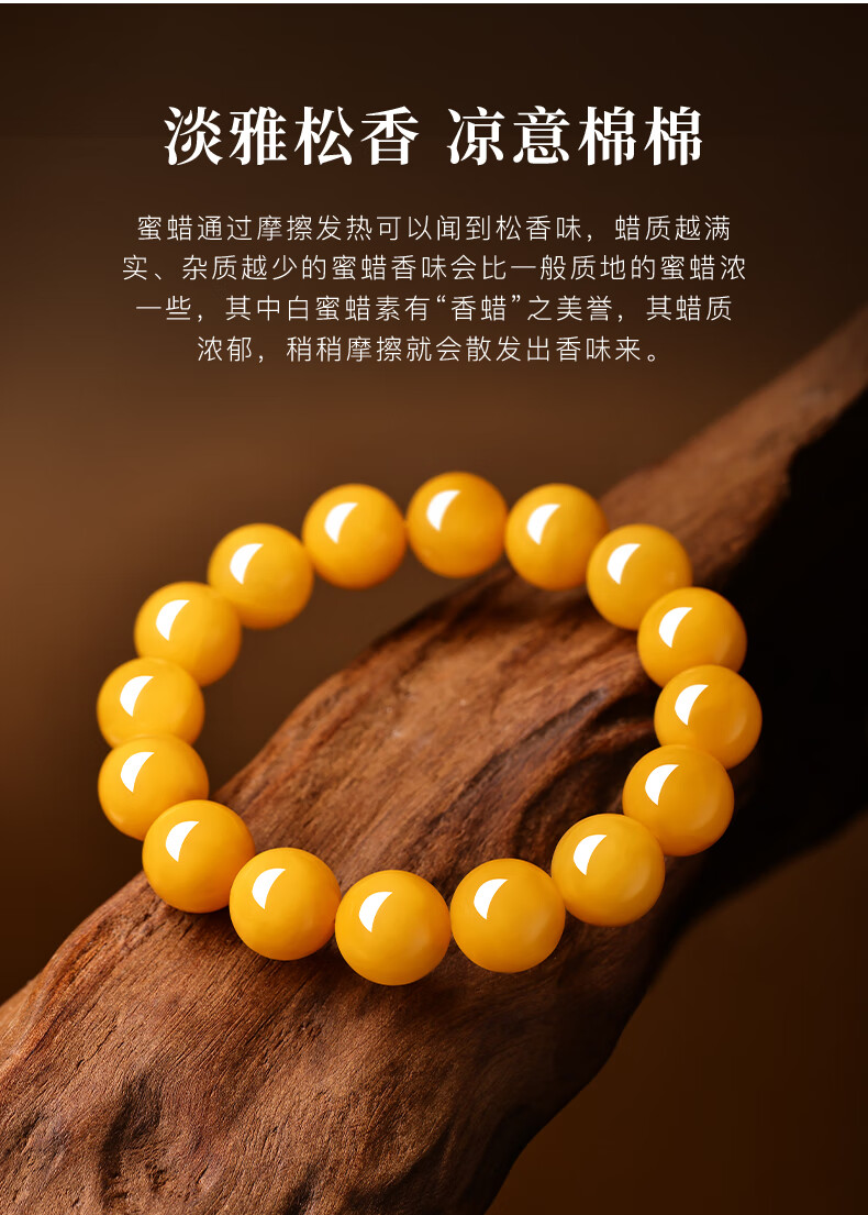 Yavani Natural Beeswax Bracelet Women's Russian Material Chicken Fat Yellow Transfer Single Circle Bracelet Niche Exquisite Mid-Autumn Festival Gift Chicken Fat Yellow Natural Beeswax-6mm