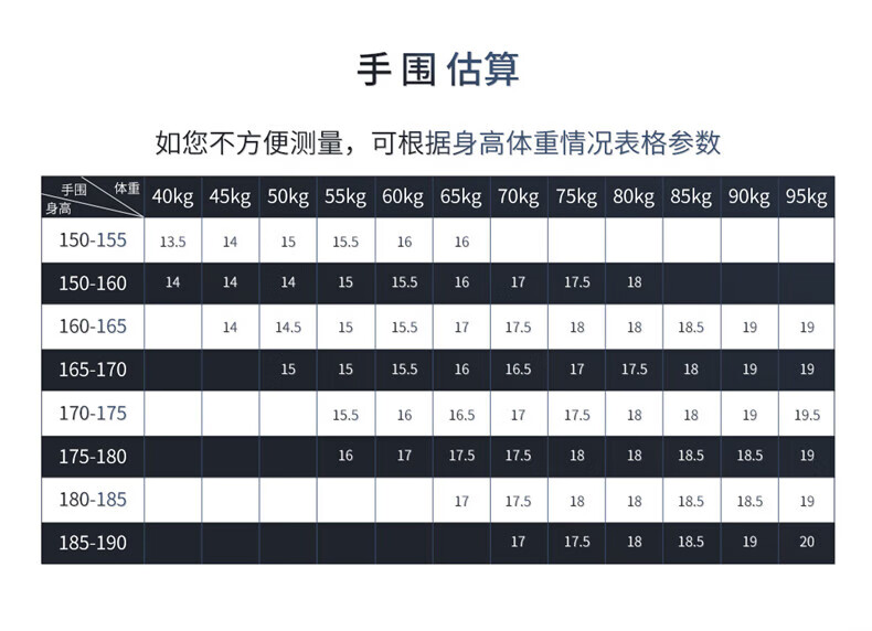 China (cm) 165 / 88-90 170 / 96-98 175 / 108-110 180 / 118-122 185 / 126-130